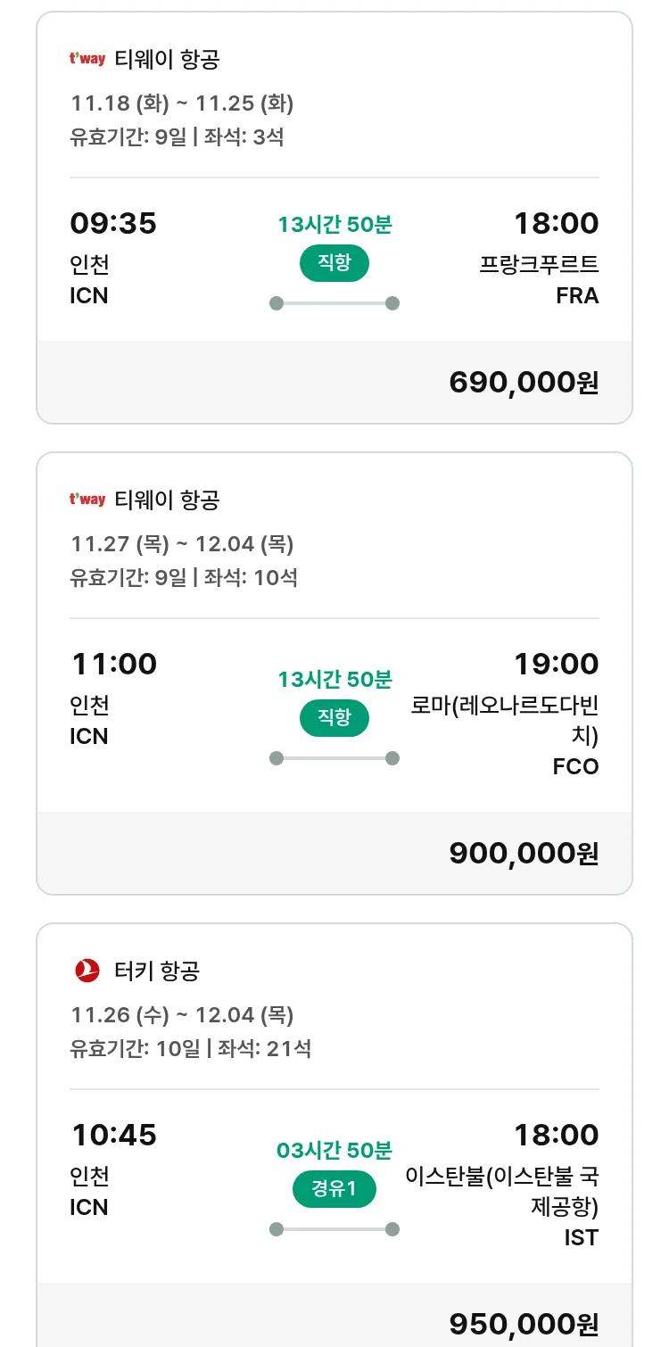 (11월9일(일)) 땡처리 유럽 긴급 패키지