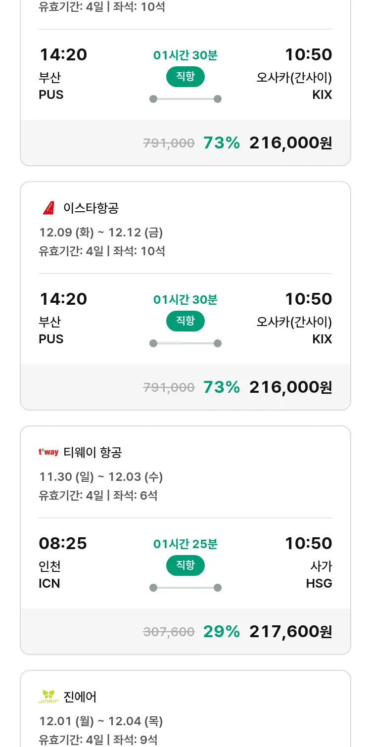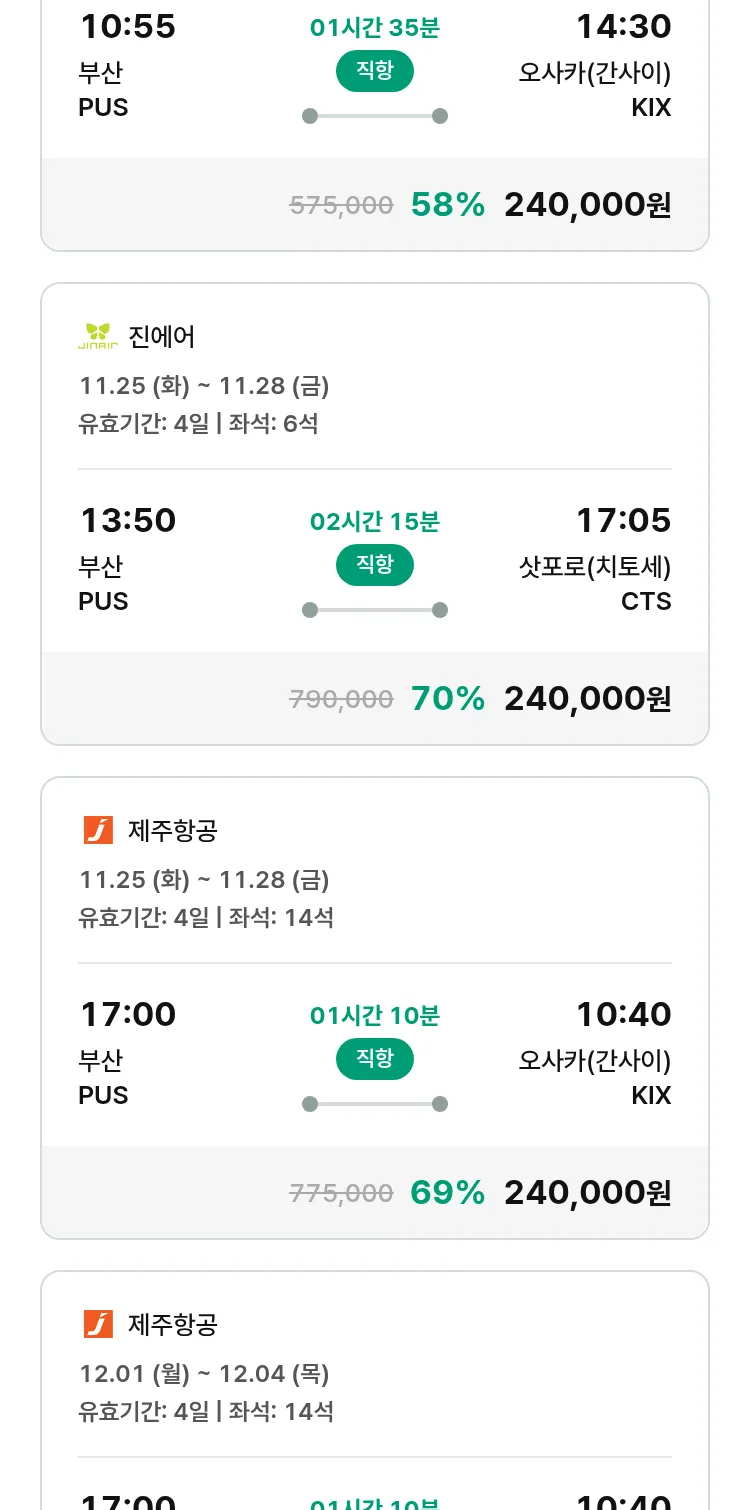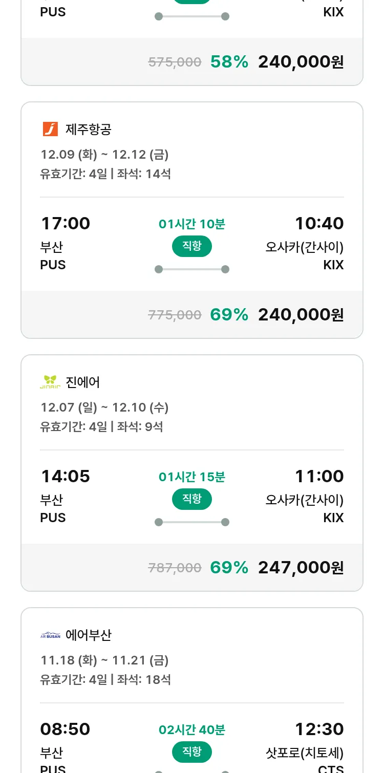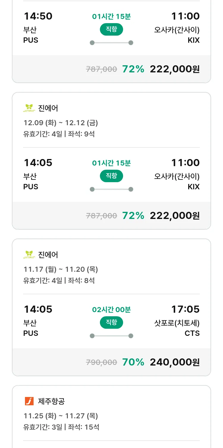 (11월8일(토)) 모두투어 일본 특가 항공권