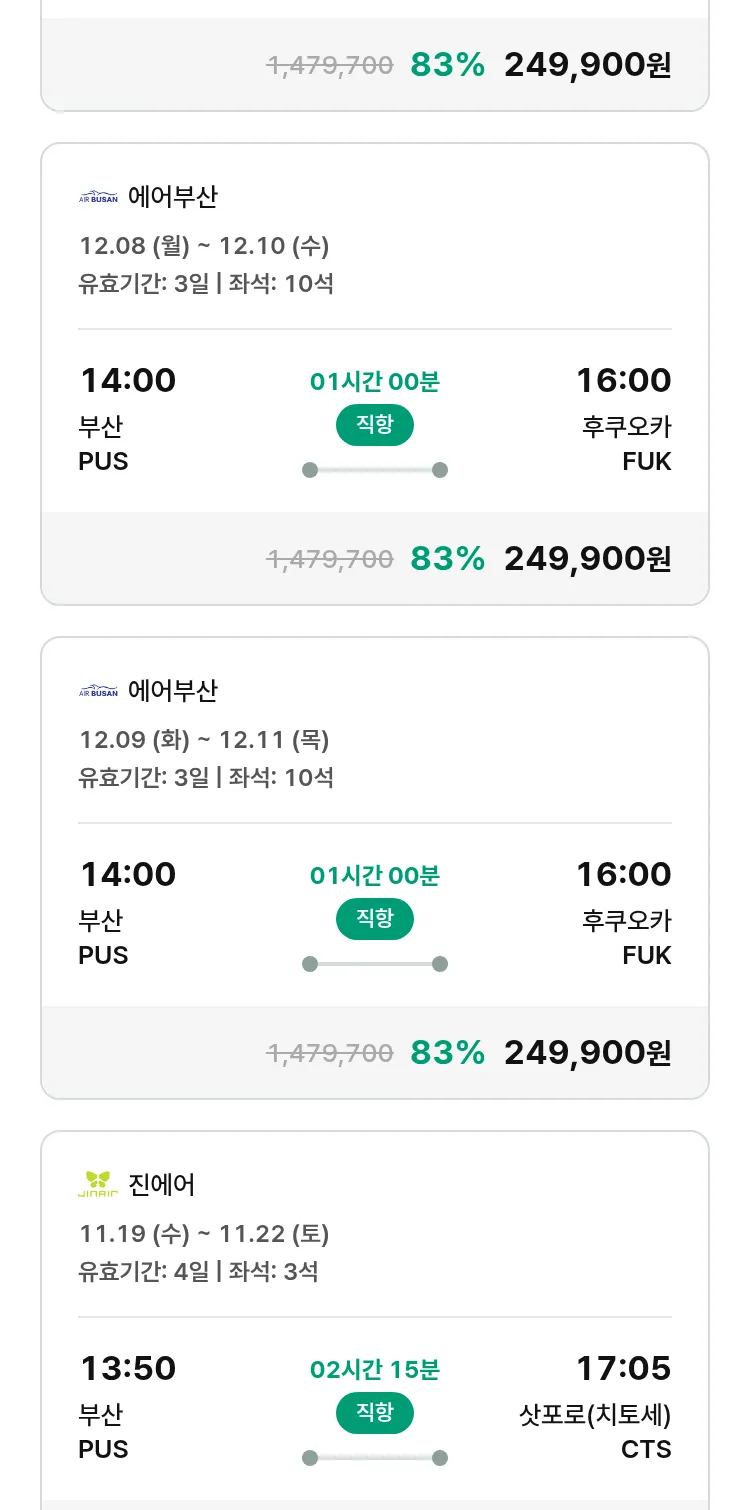 (11월9일(일)) 땡처리 99.9% 확정 패키지