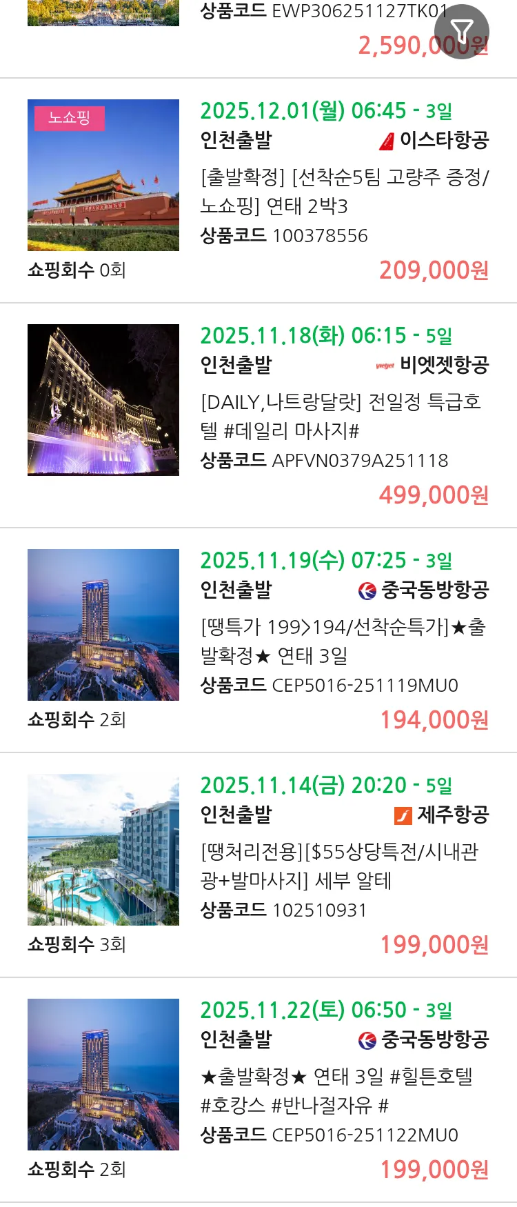 (11월9일(일)) 땡처리 99.9% 확정 패키지