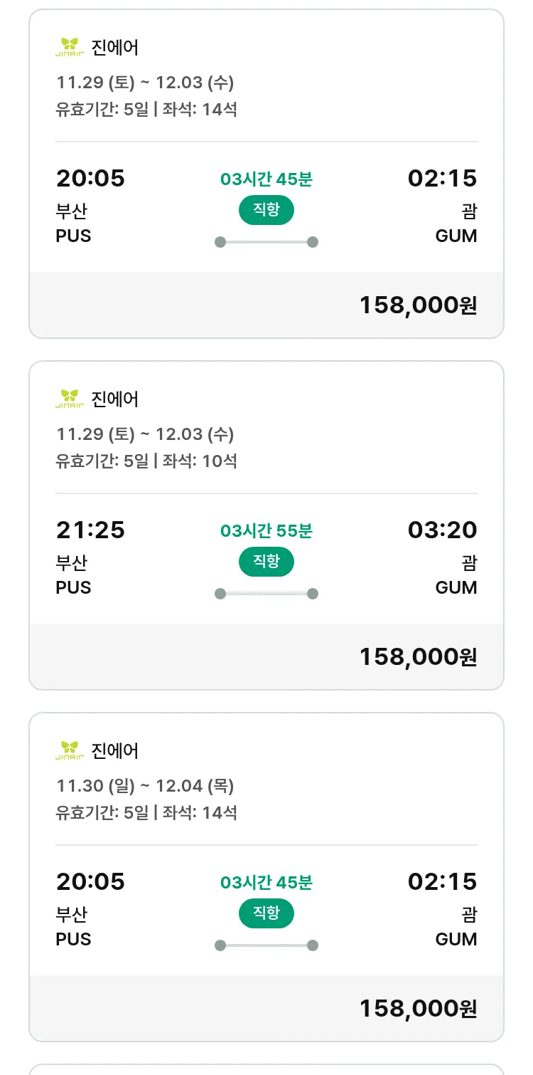 (11월8일(토)) 땡처리 특가 항공권