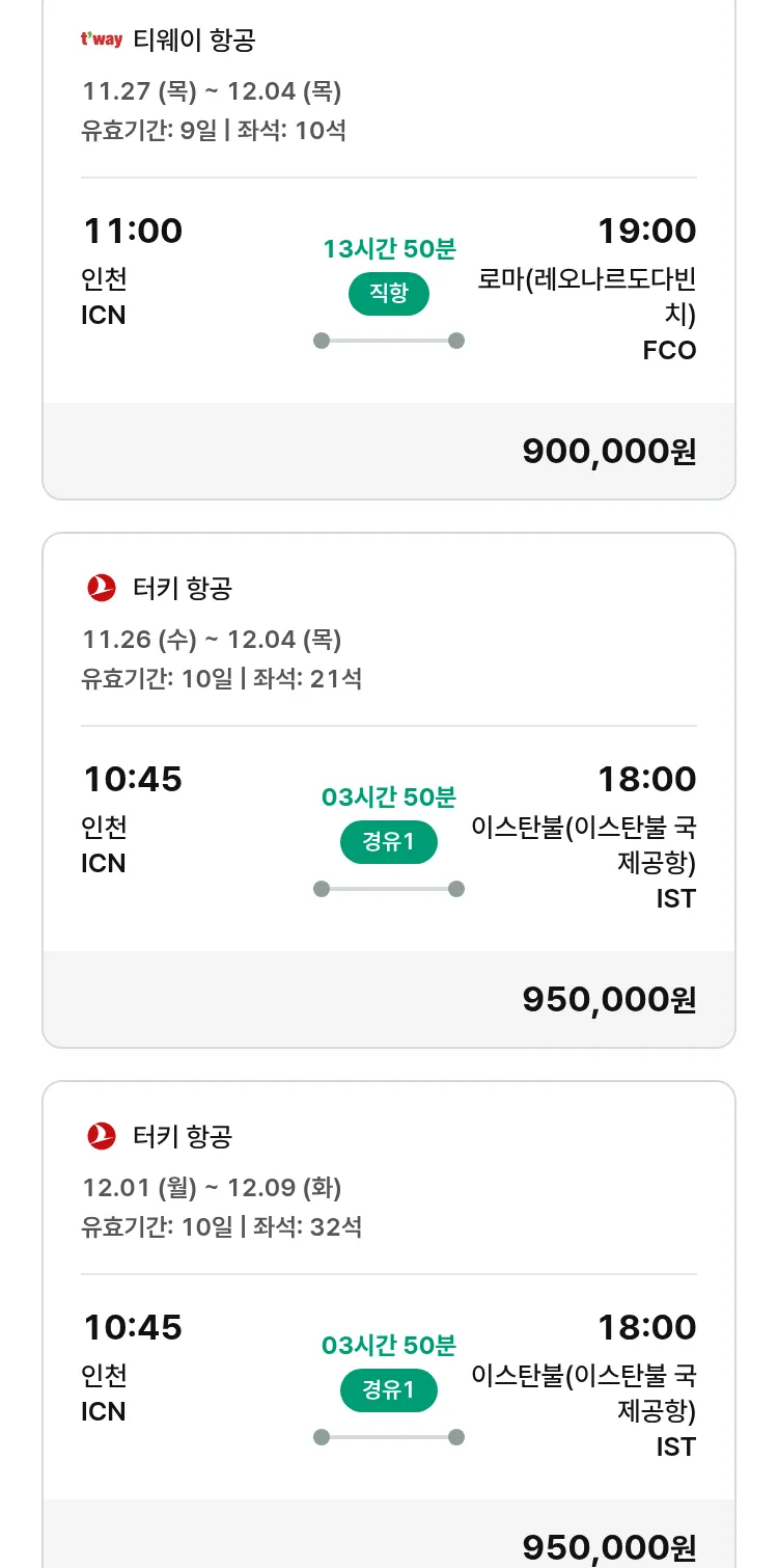(11월9일(일)) 땡처리 유럽 긴급 패키지