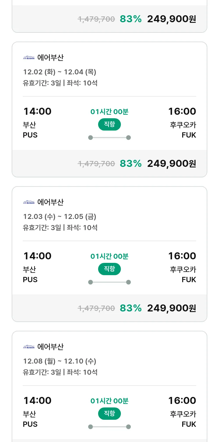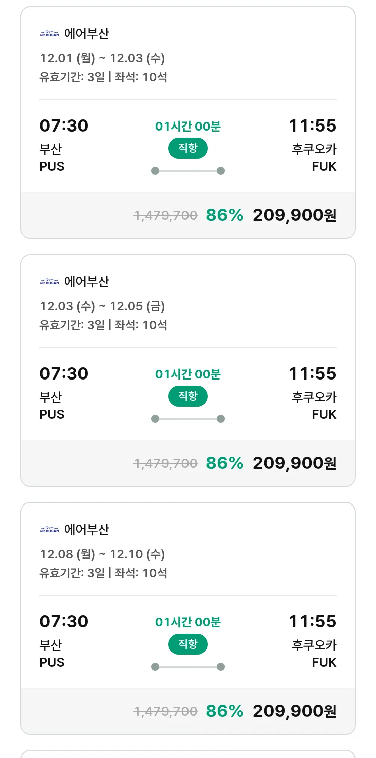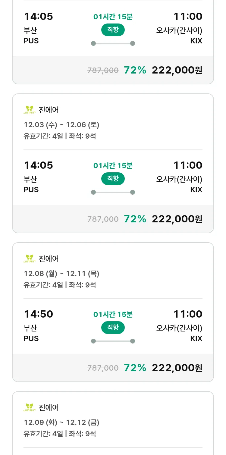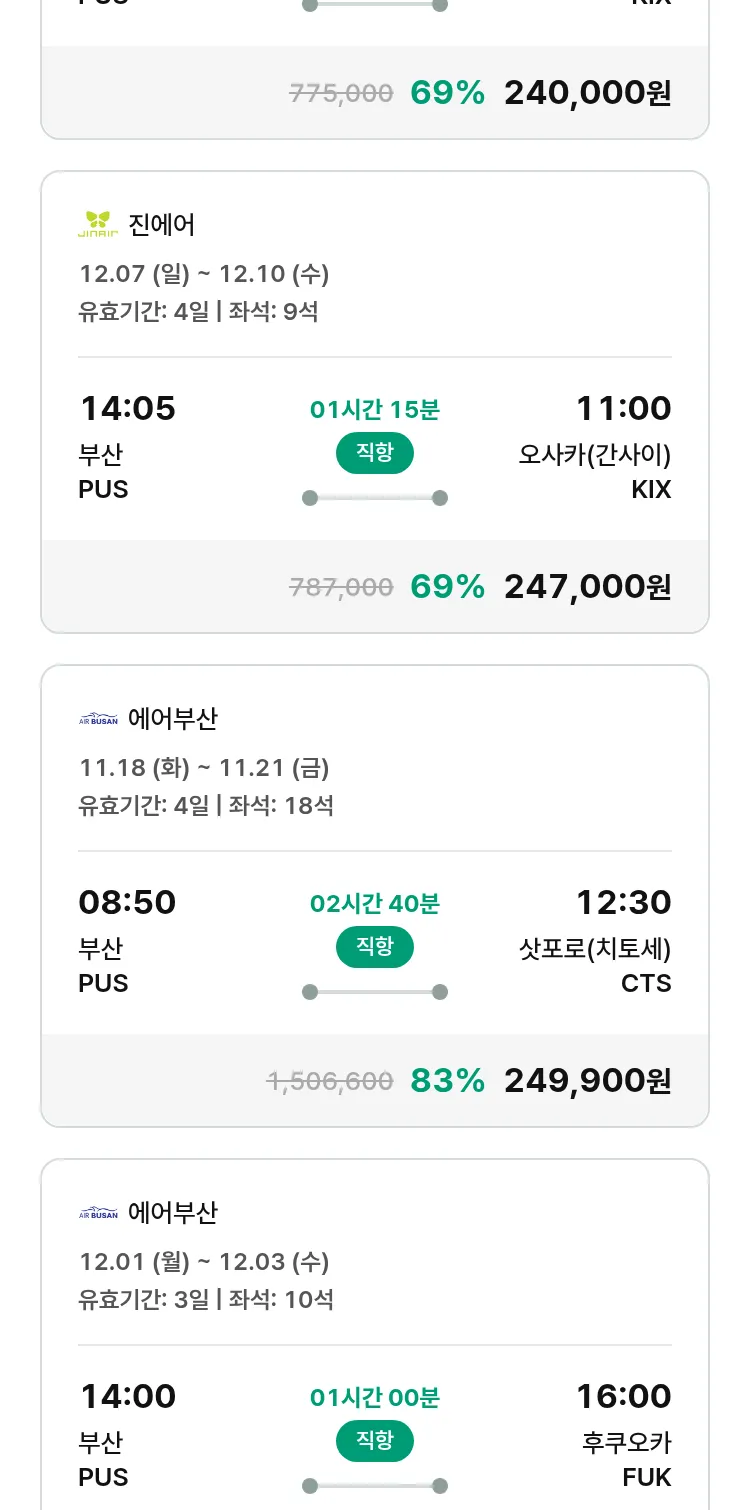 (11월9일(일)) 땡처리 특가 항공권