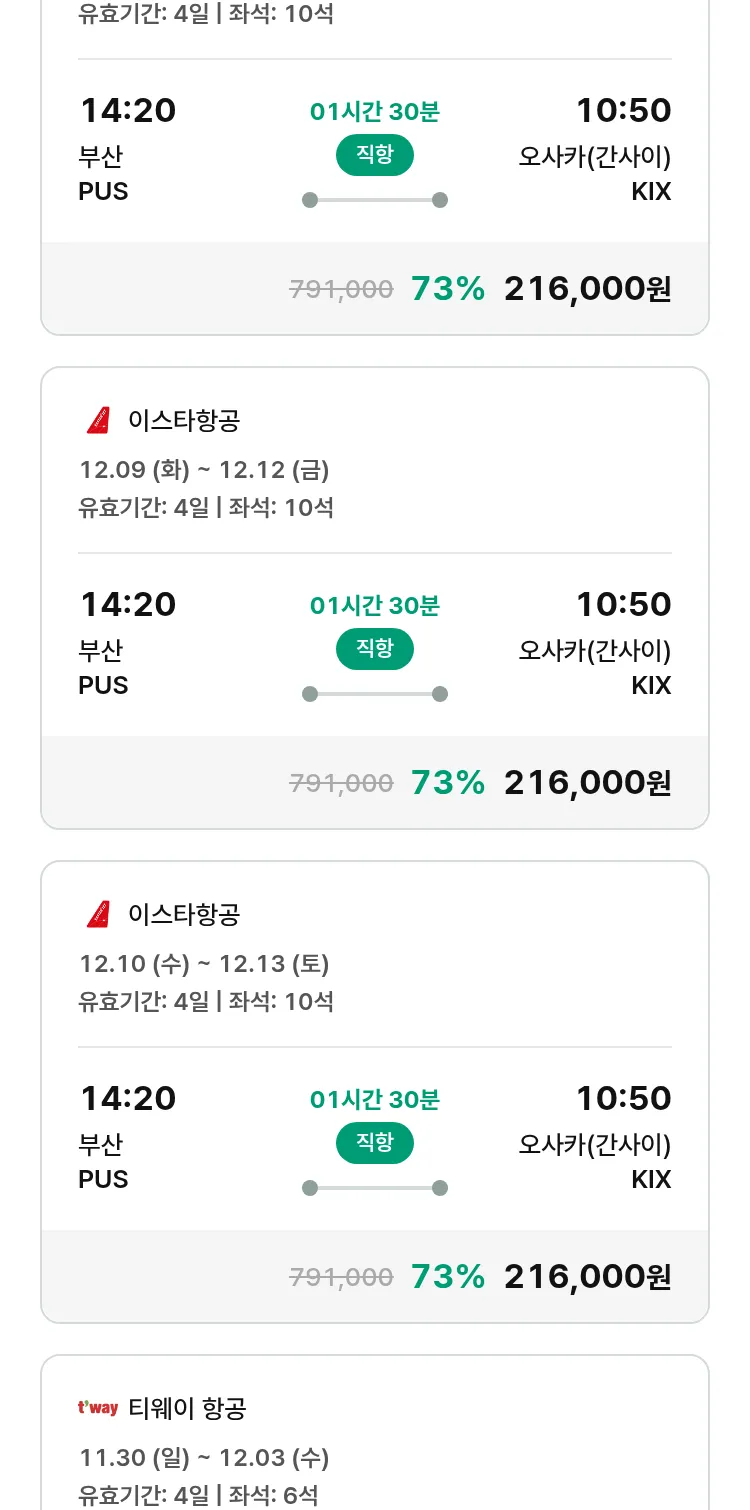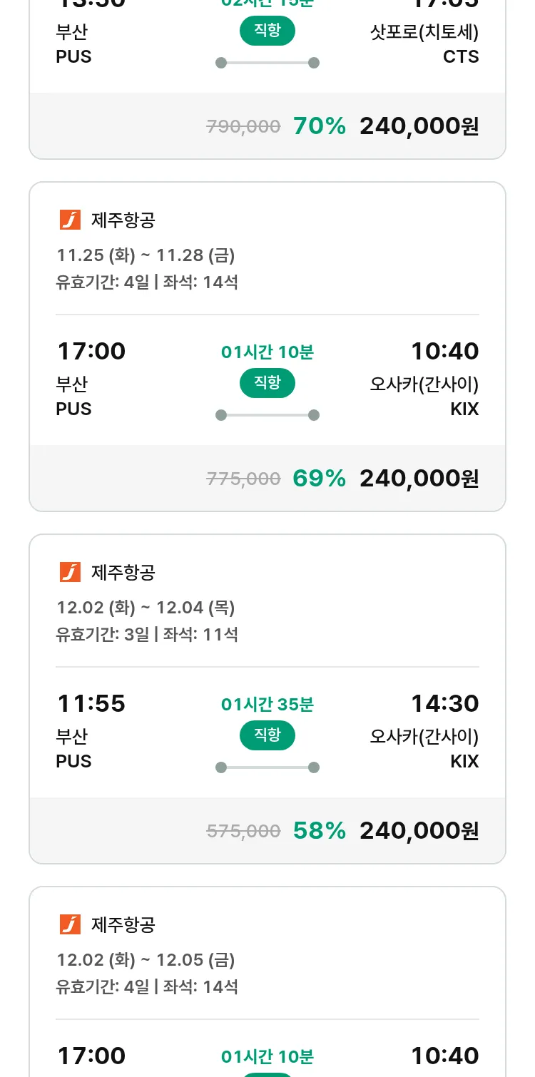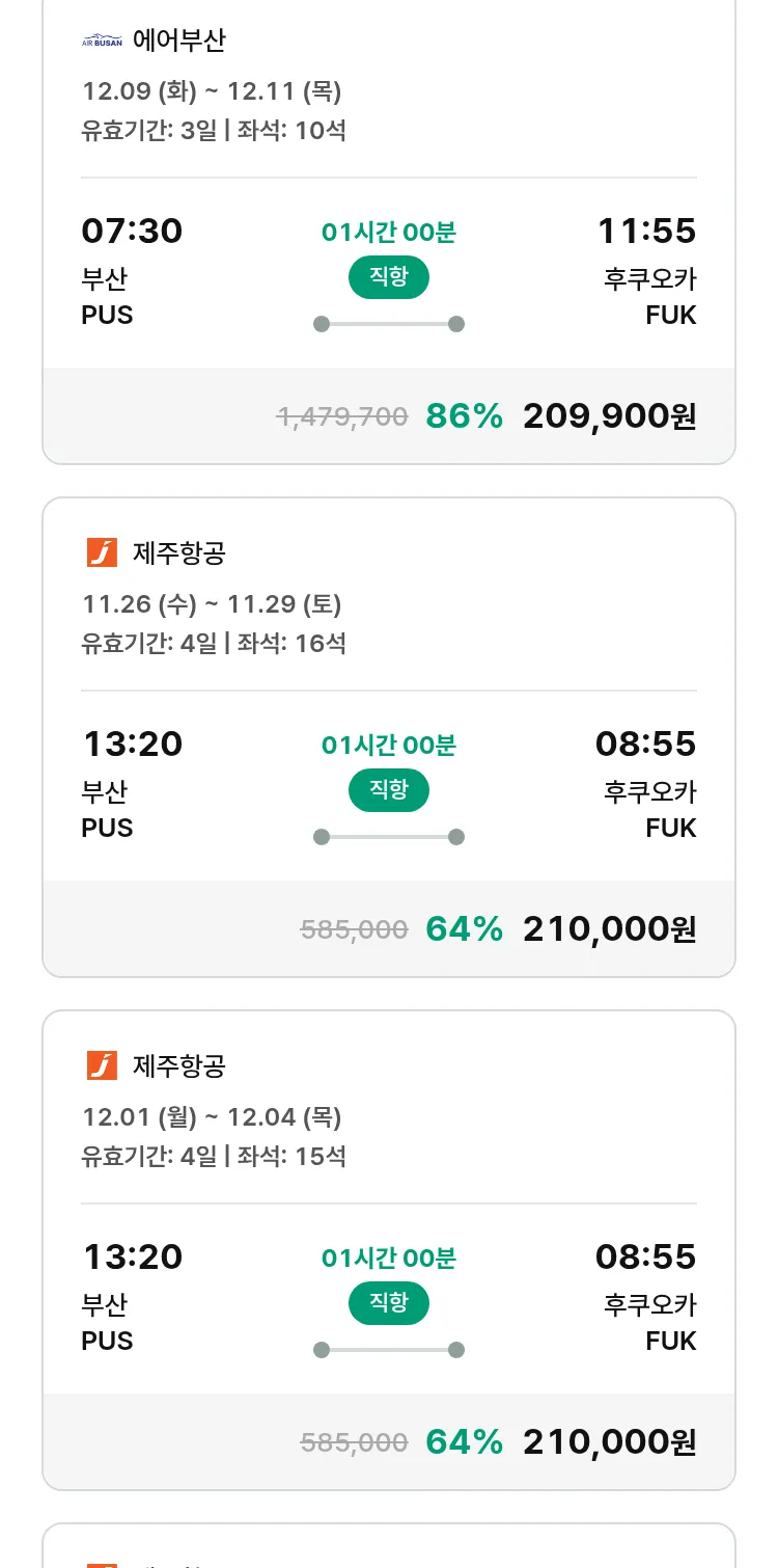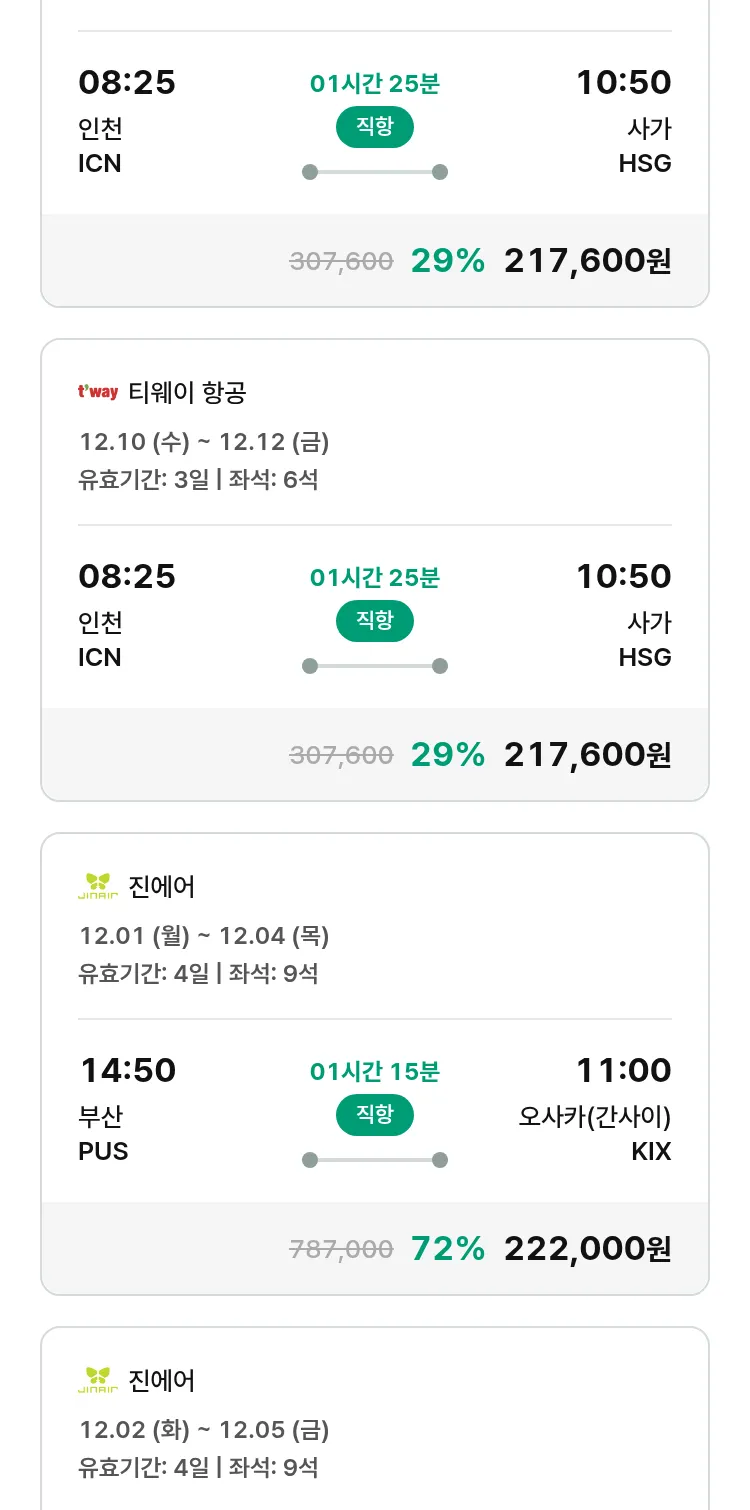 (11월8일(토)) 땡처리 특가 항공권
