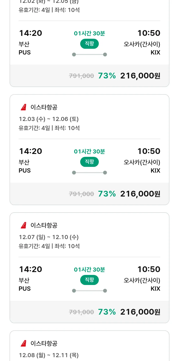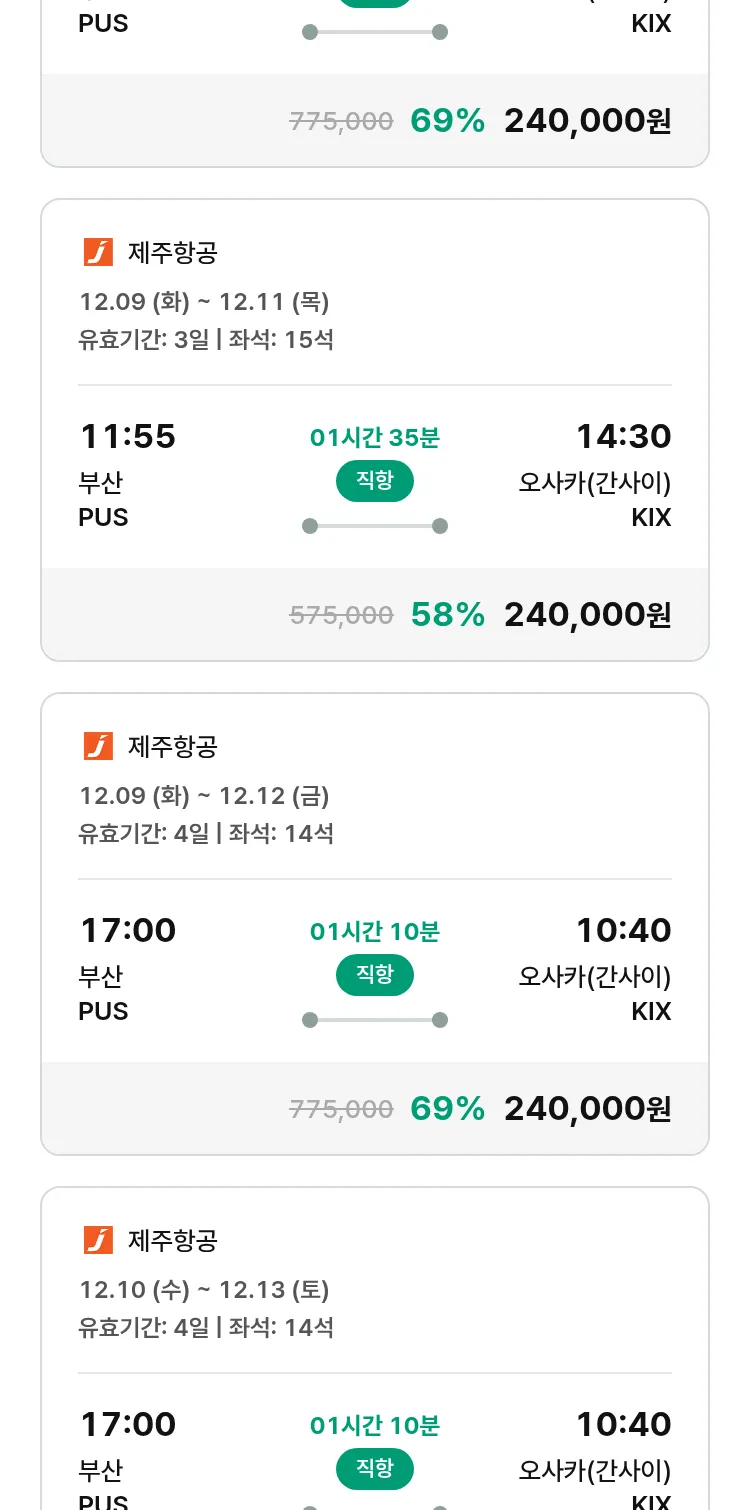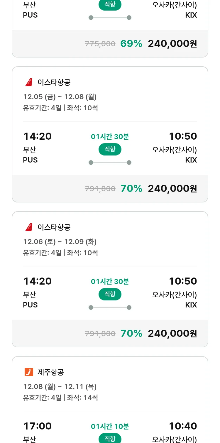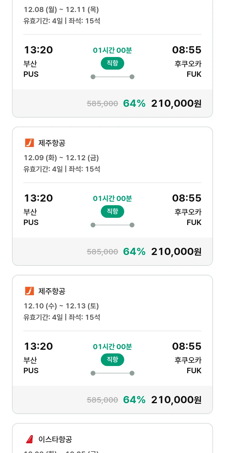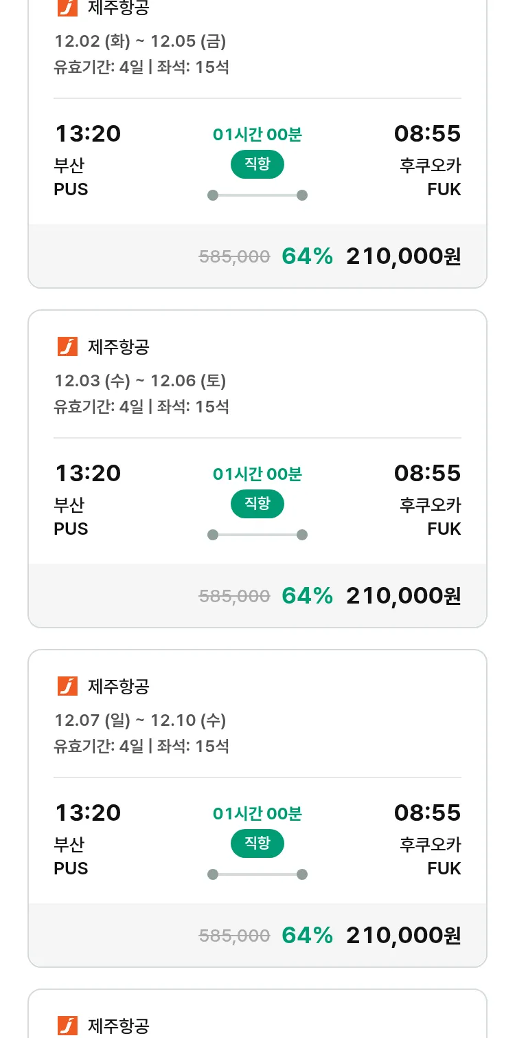(11월8일(토)) 땡처리 특가 항공권