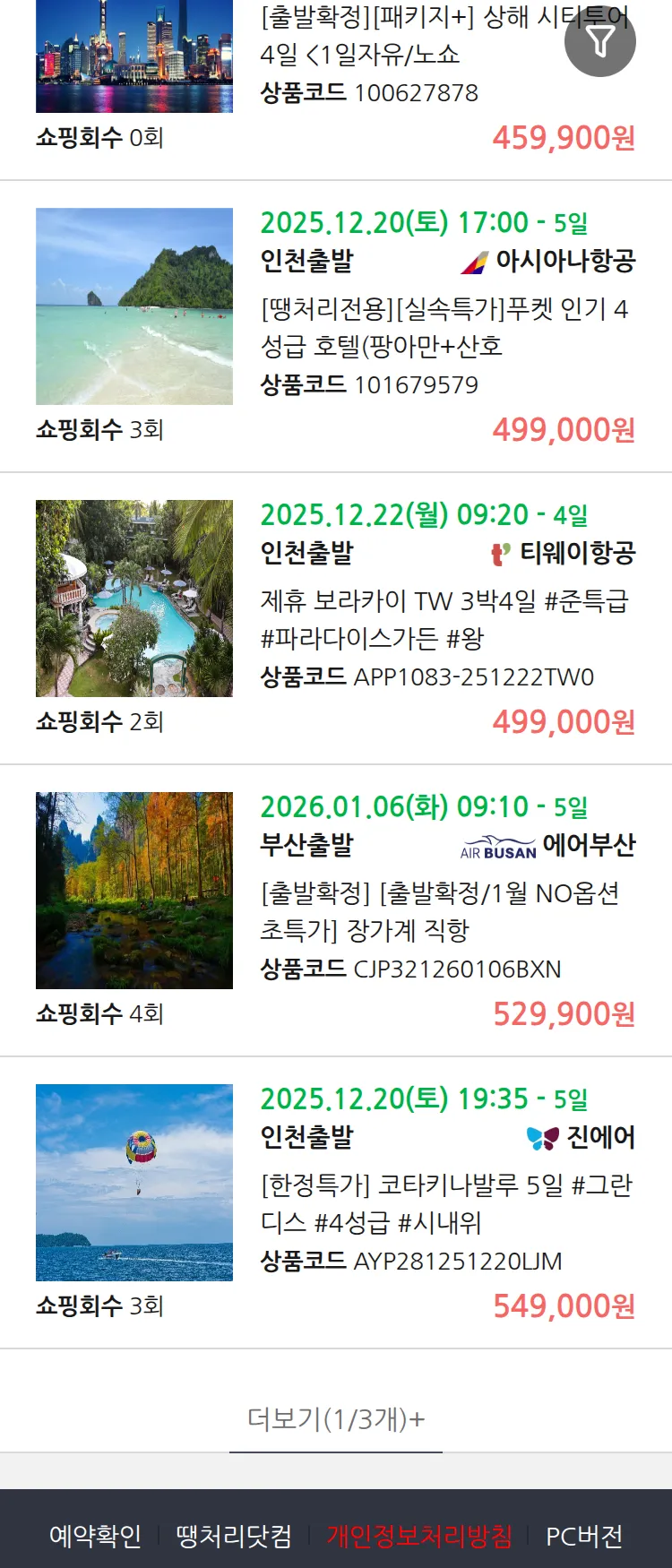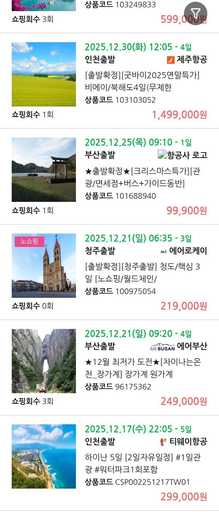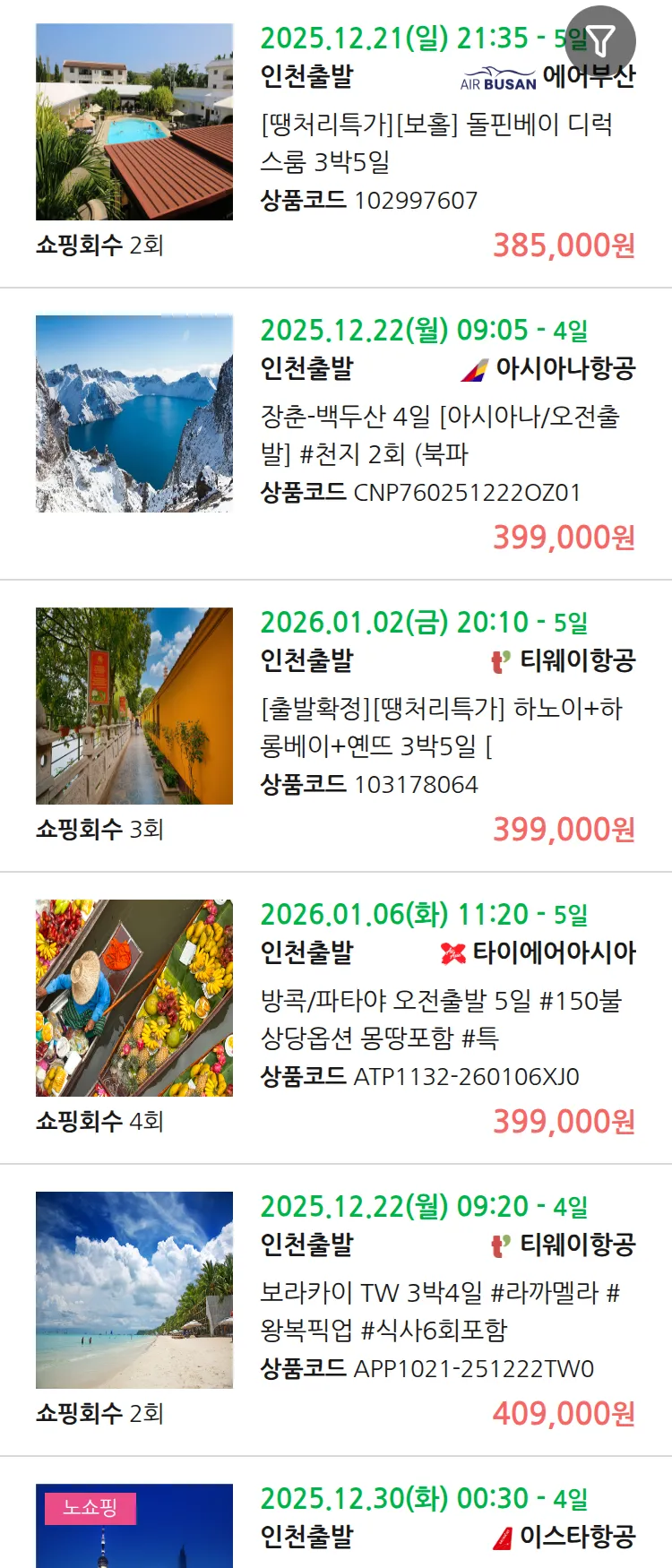(12월5일(금)) 땡처리 연휴 패키지 패키지