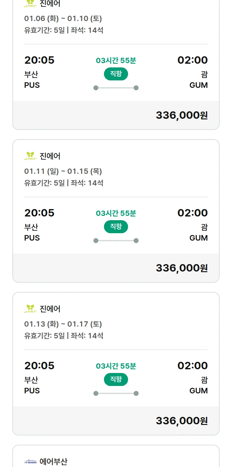 (12월 14일(일)) 땡처리 특가 항공권