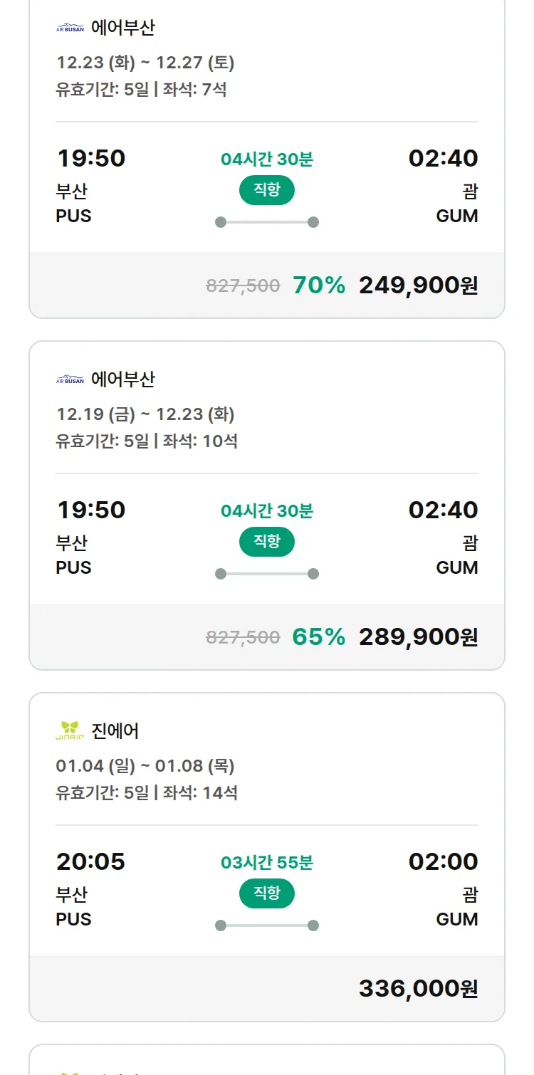(12월 15일(월)) 땡처리 특가 항공권