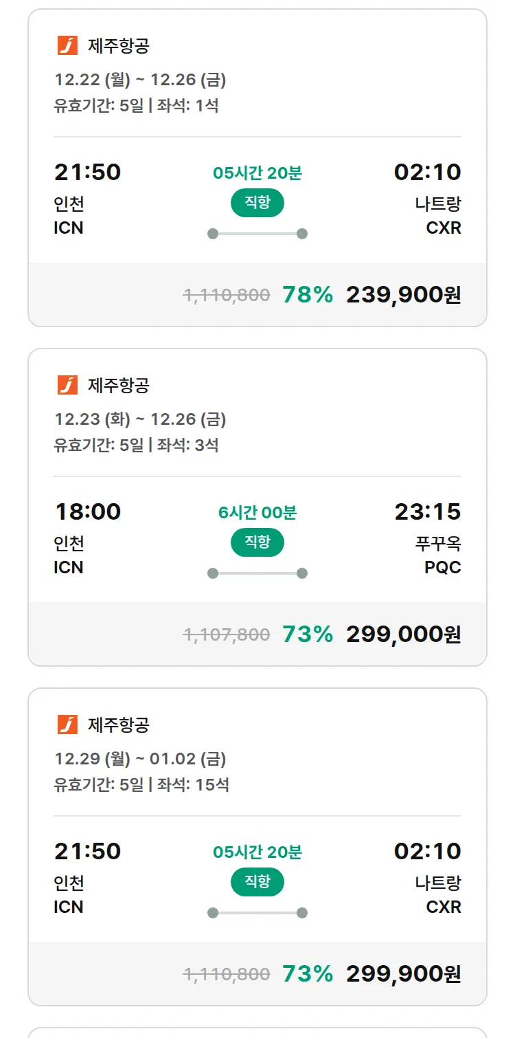 (12월 14일(일)) 땡처리 99.9% 확정 패키지