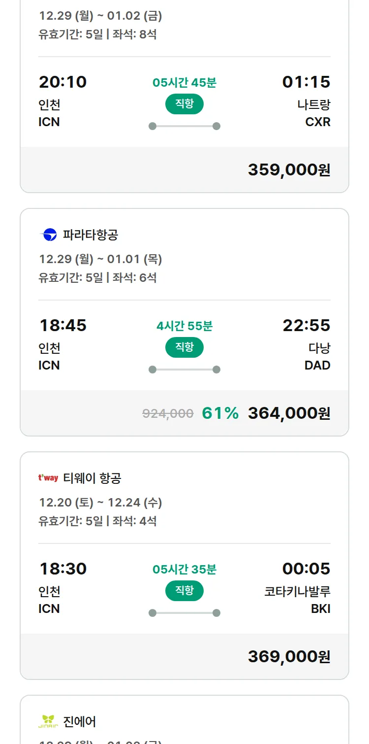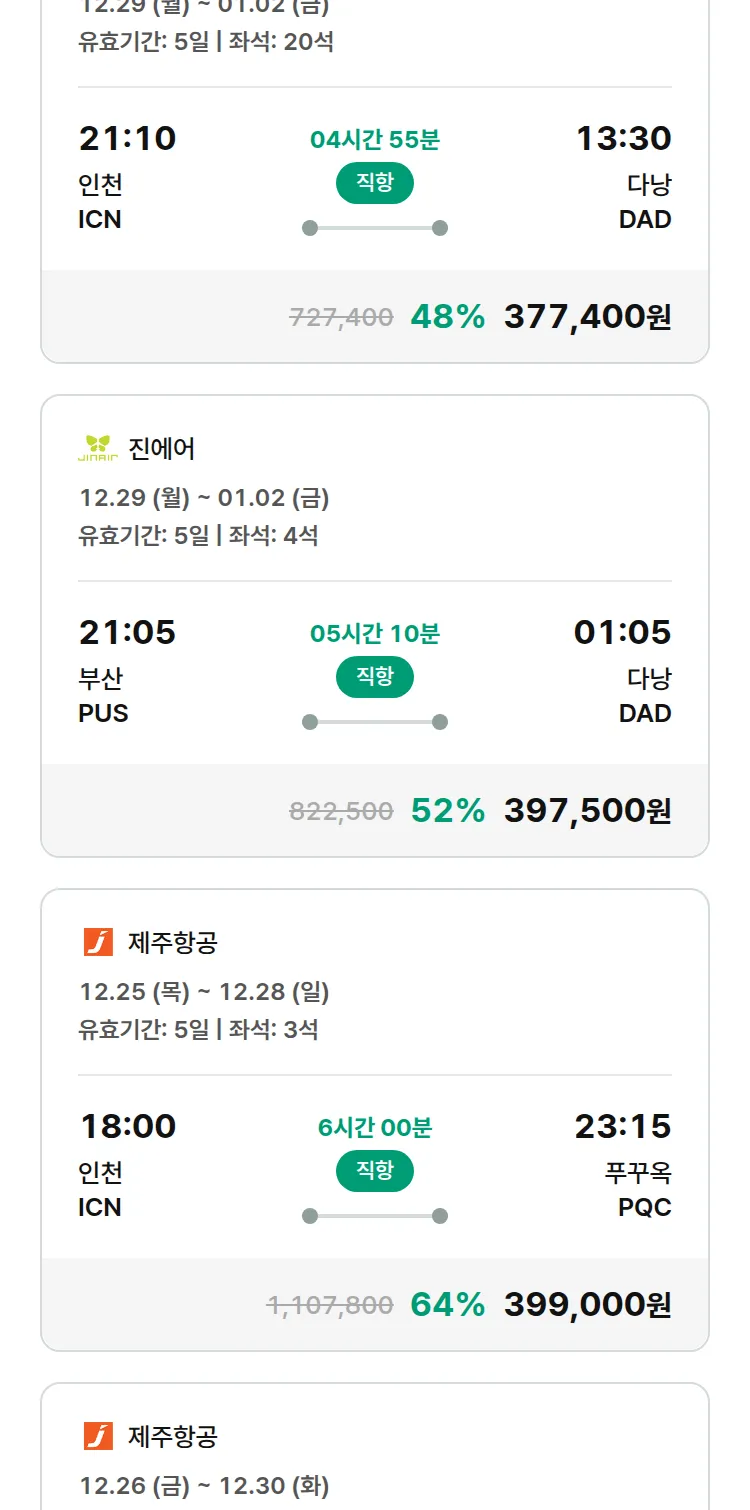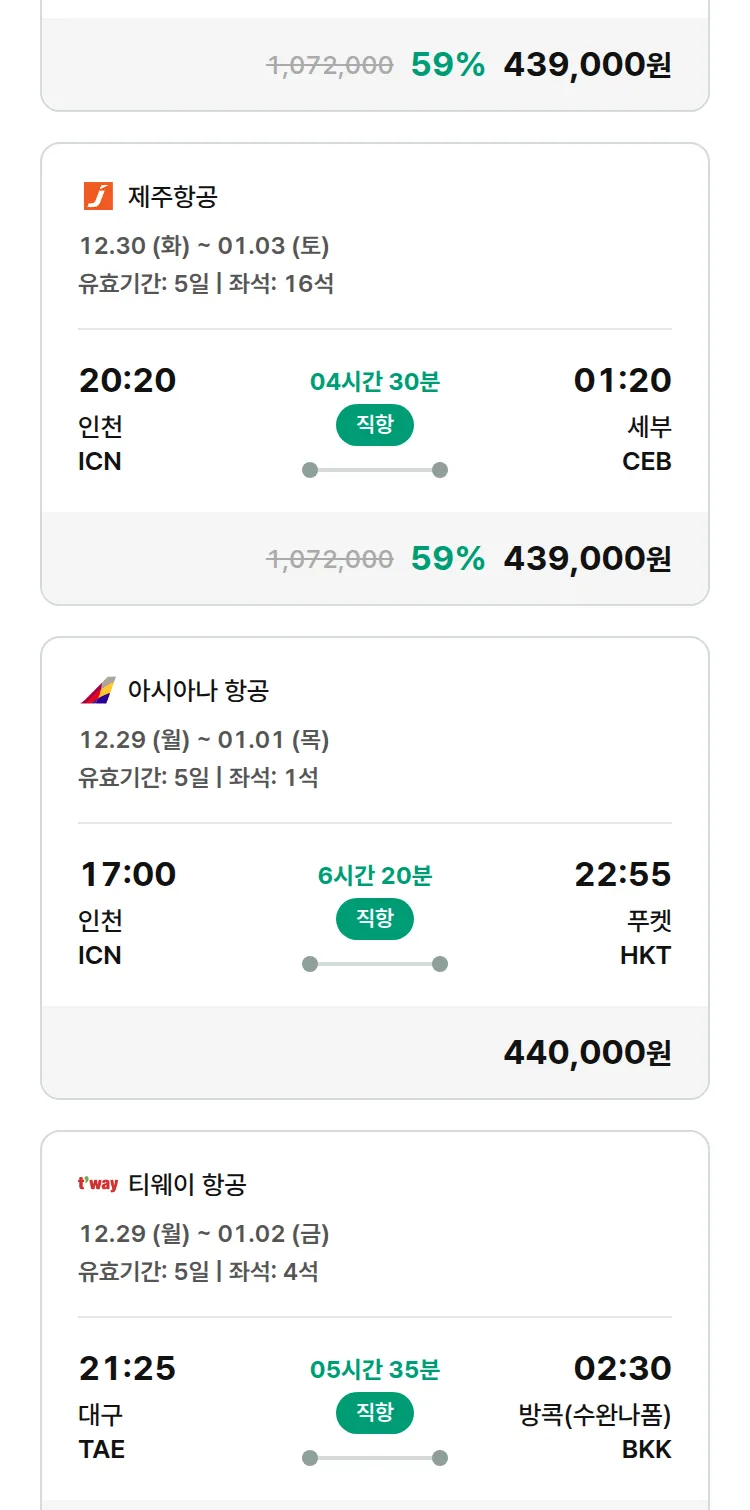 (12월 15일(월)) 모두투어 동남아 특가 항공권