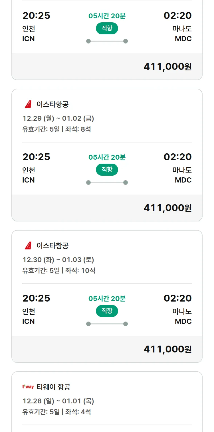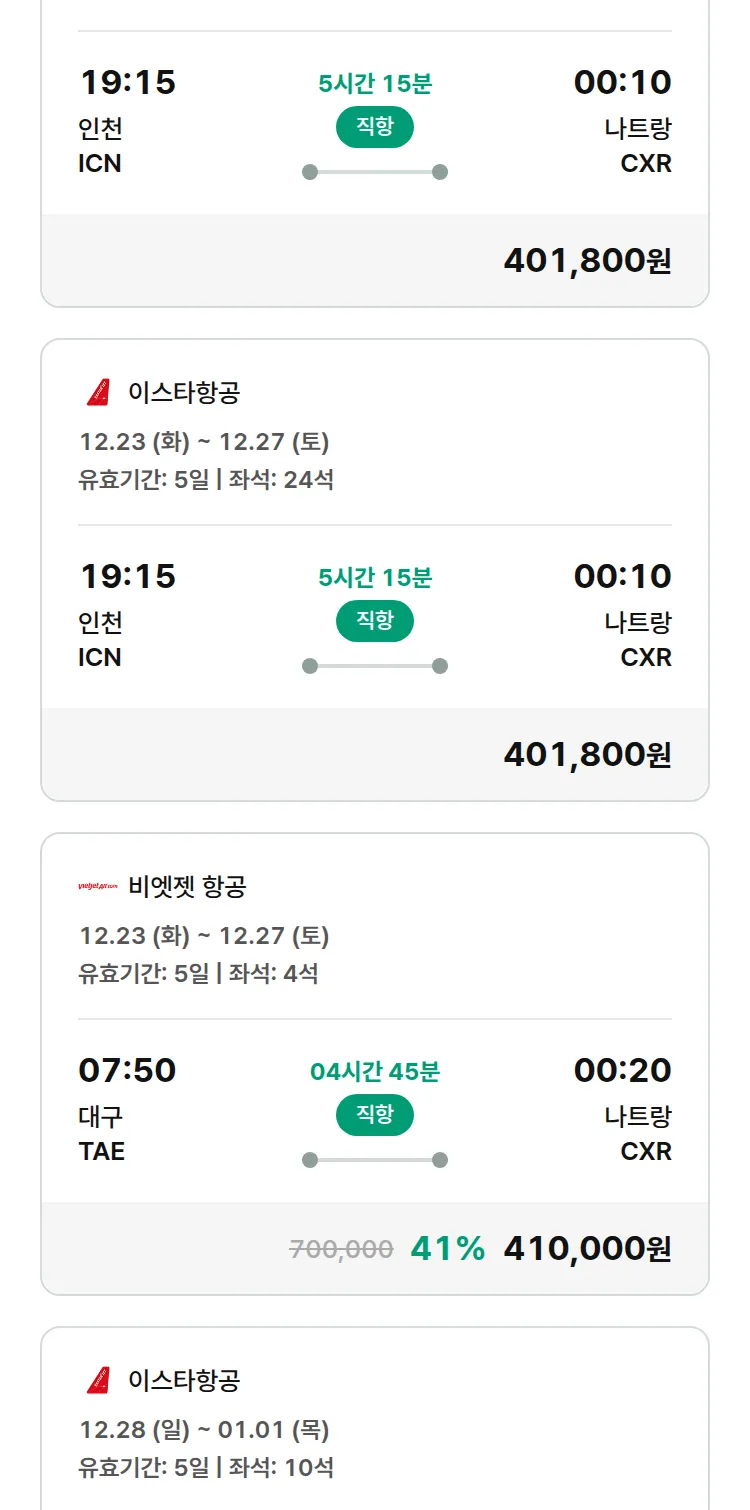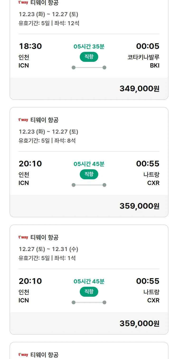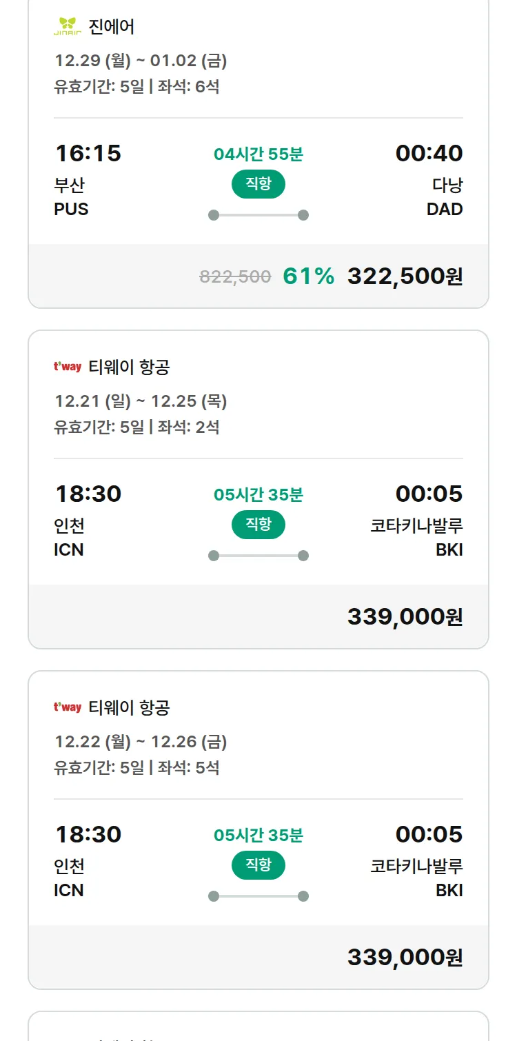 (12월 15일(월)) 모두투어 동남아 특가 항공권