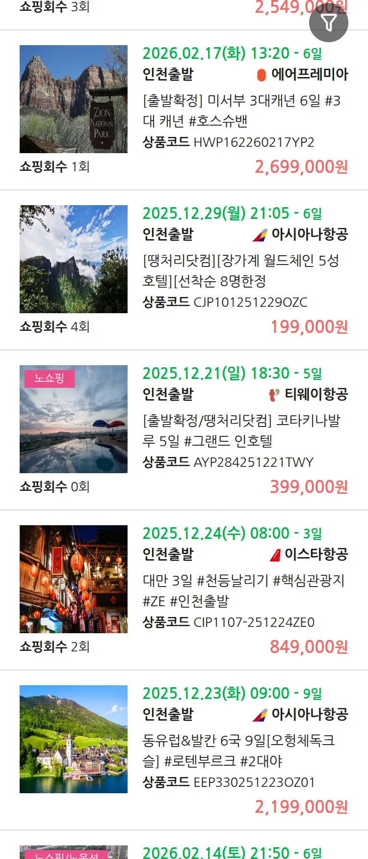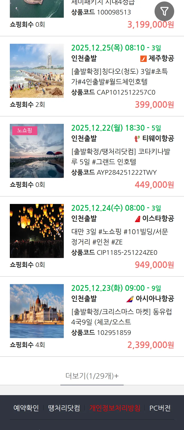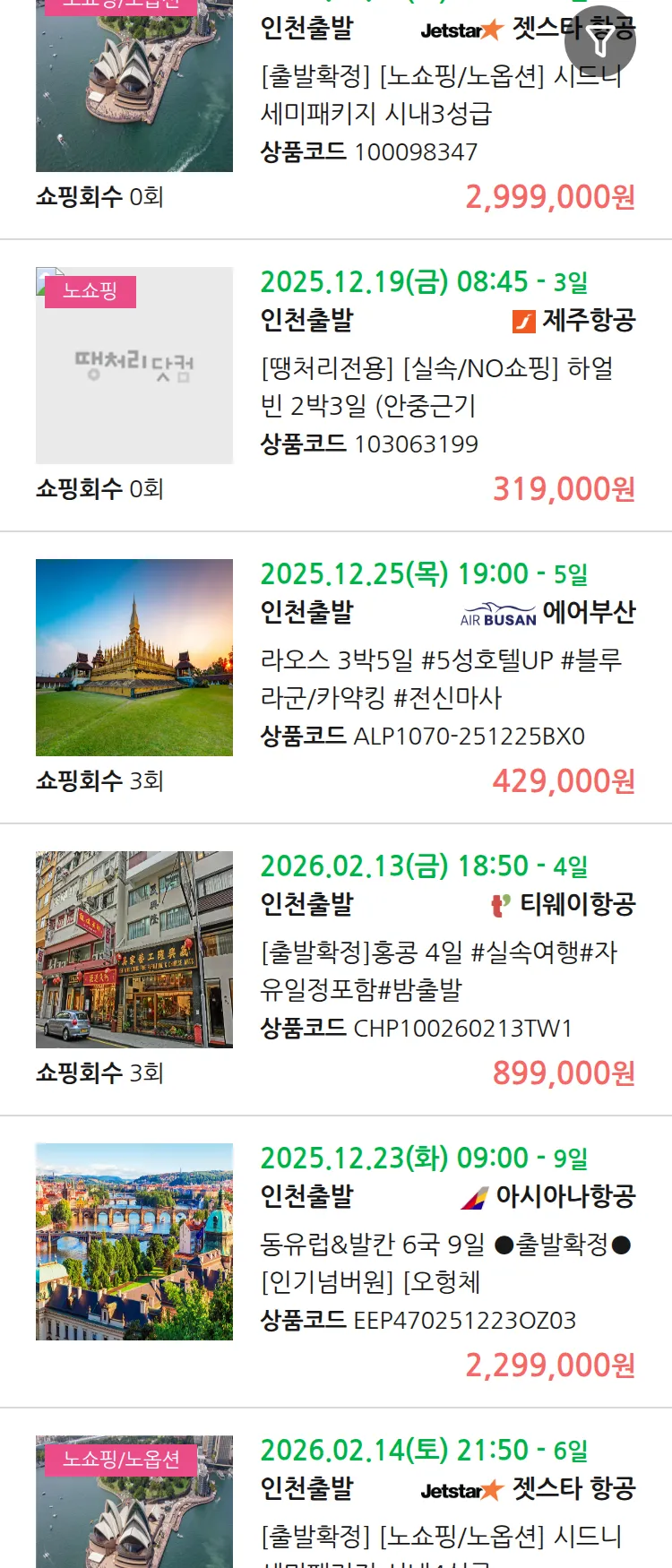 (12월 16일(화)) 땡처리 99.9% 확정 패키지