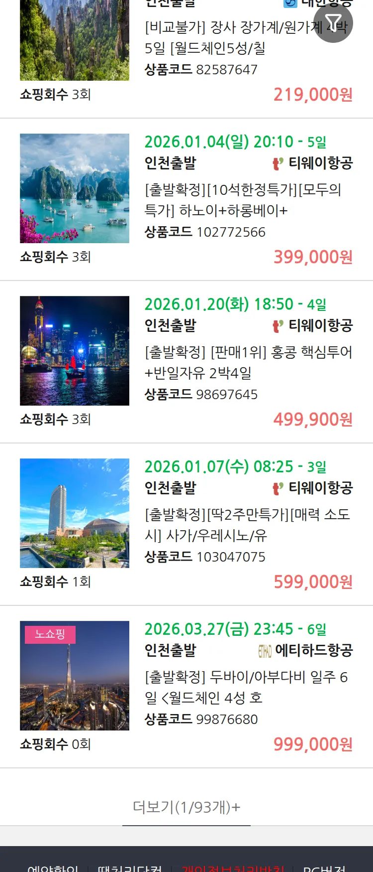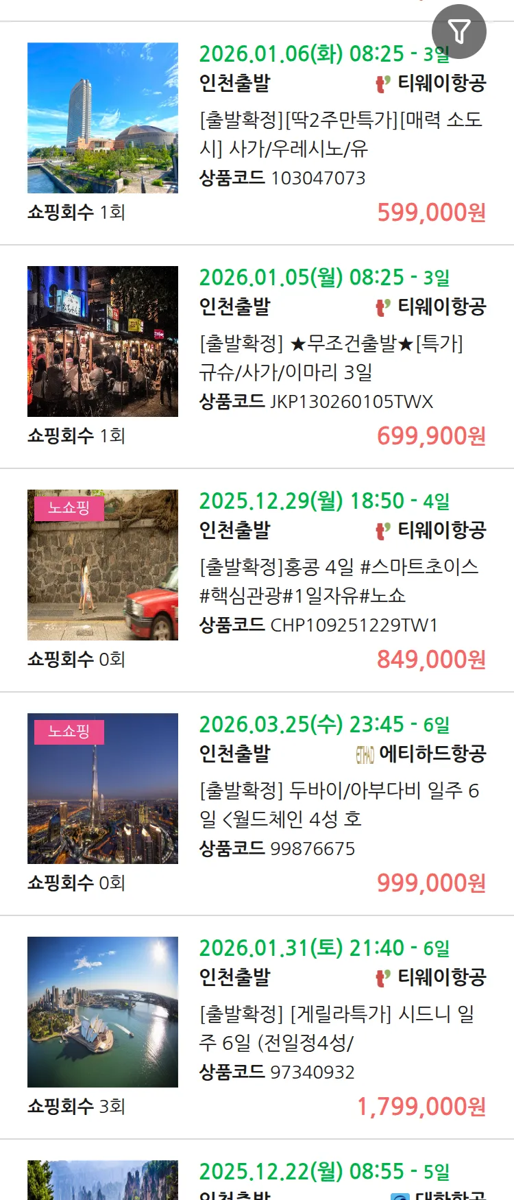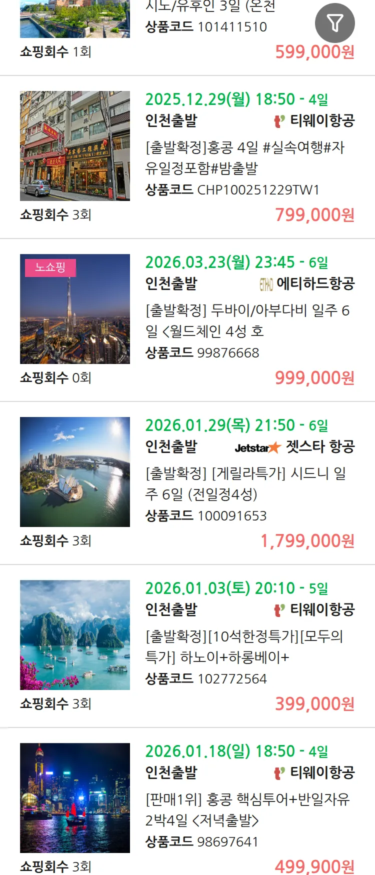 (12월 16일(화)) 땡처리 99.9% 확정 패키지