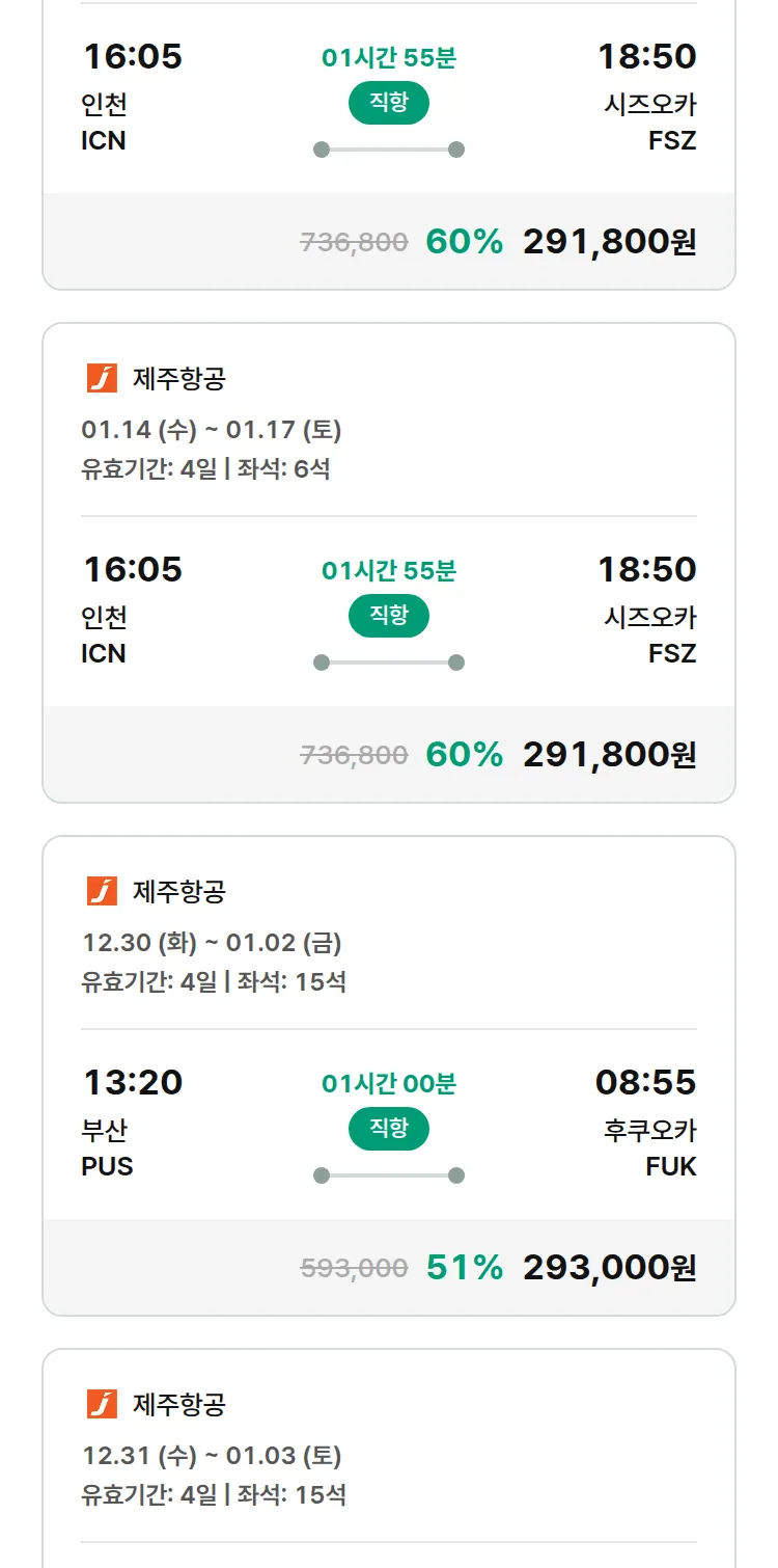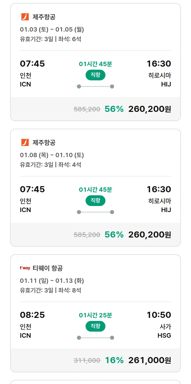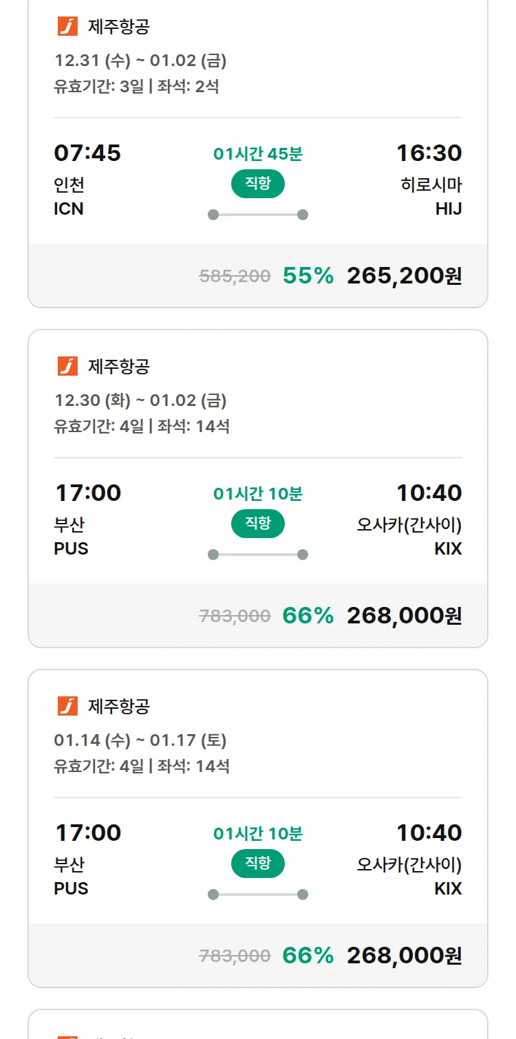 (12월 16일(화)) 모두투어 일본 특가 항공권