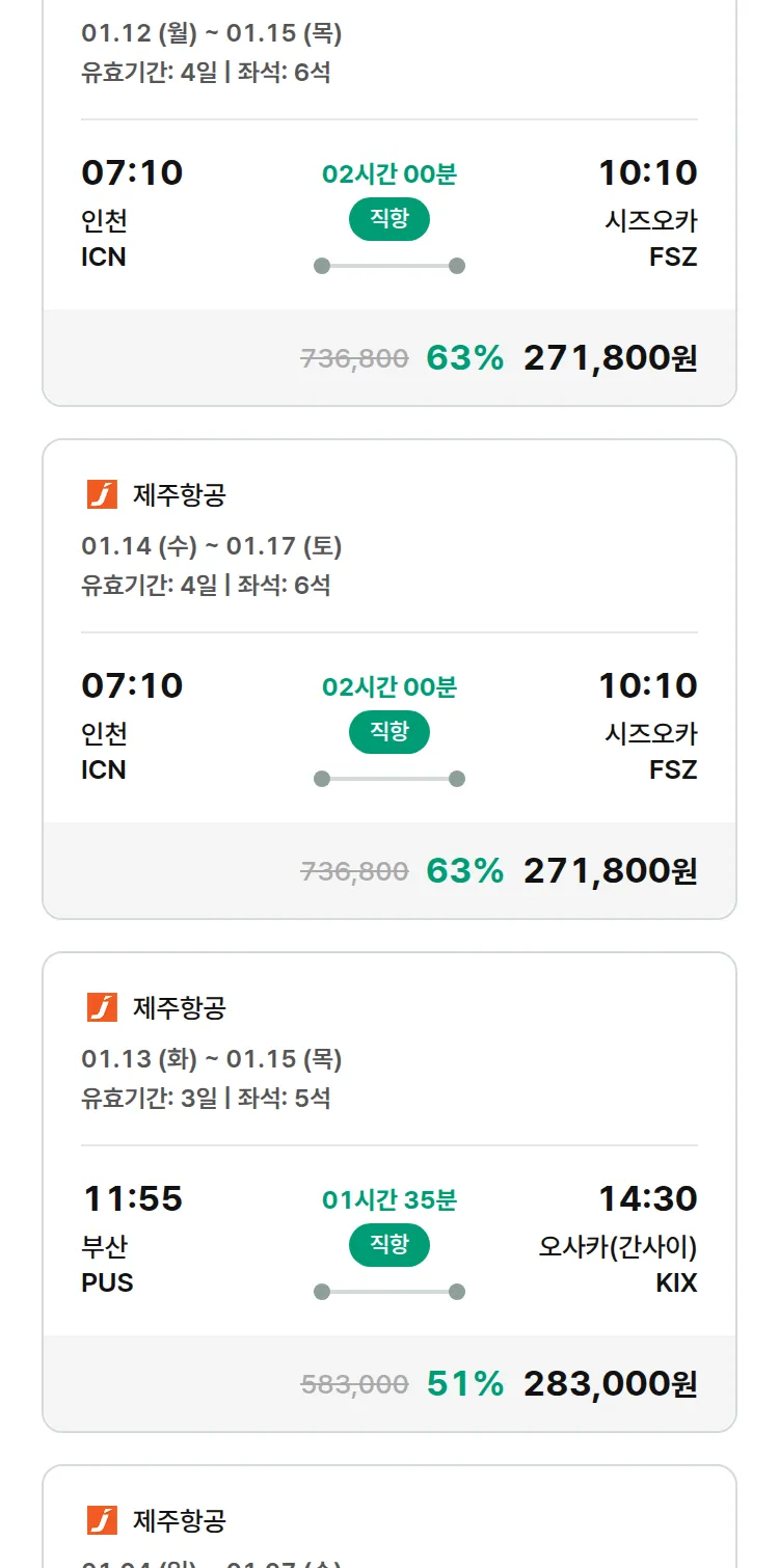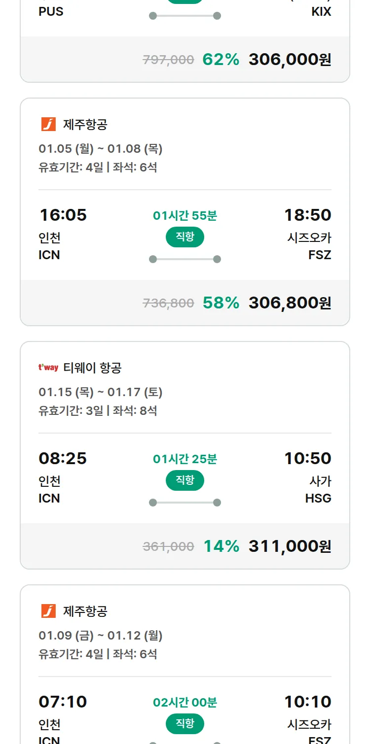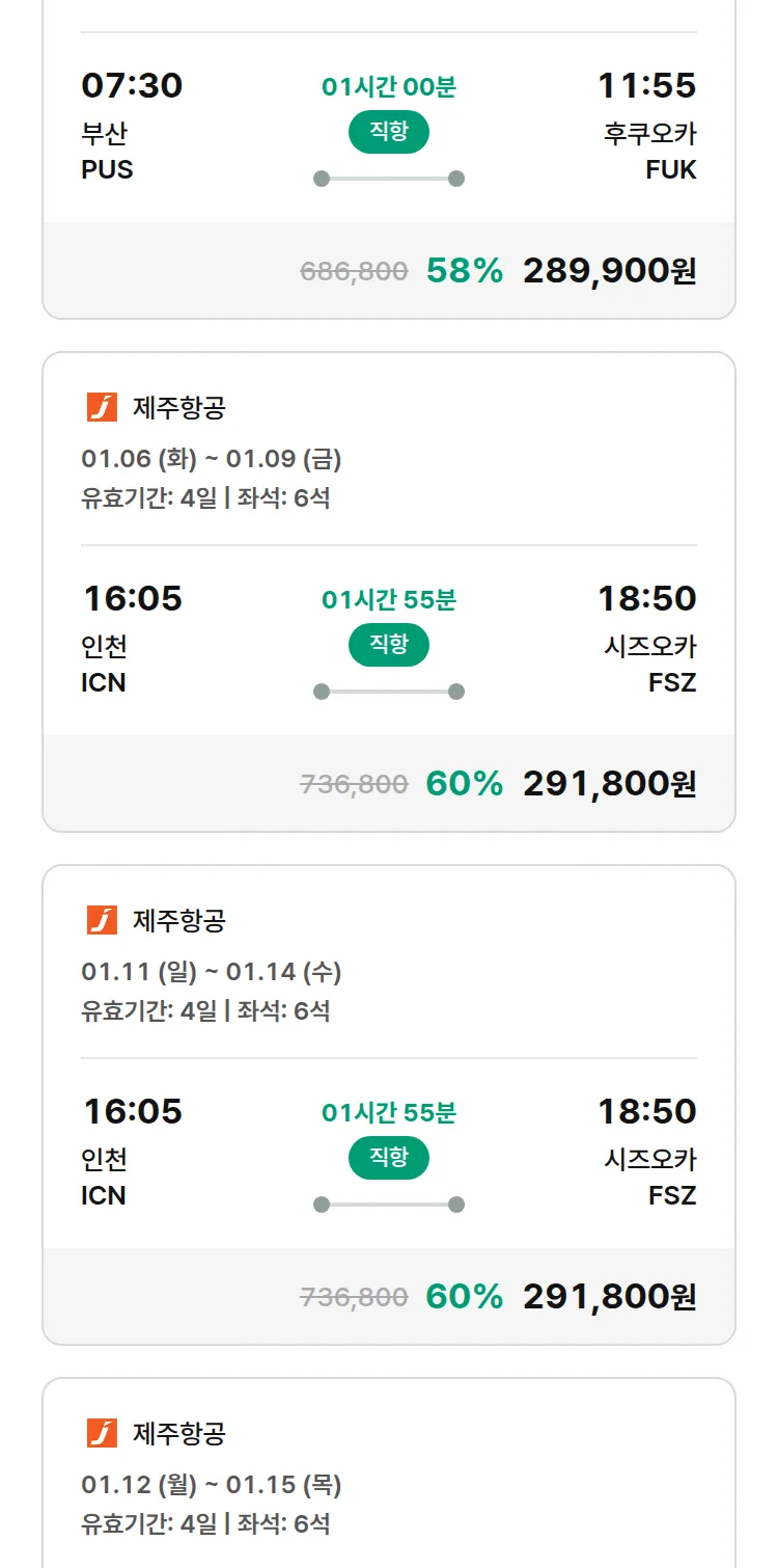 (12월 16일(화)) 모두투어 일본 특가 항공권