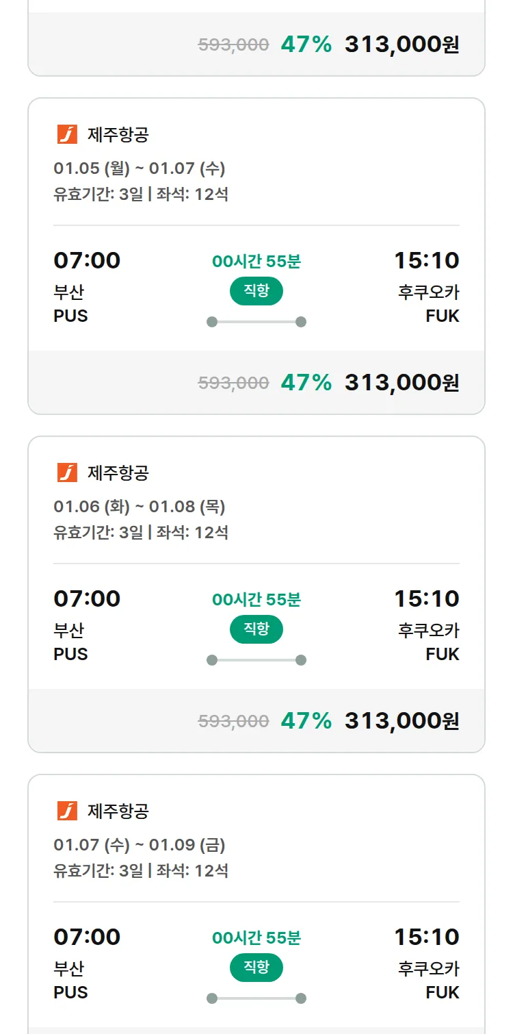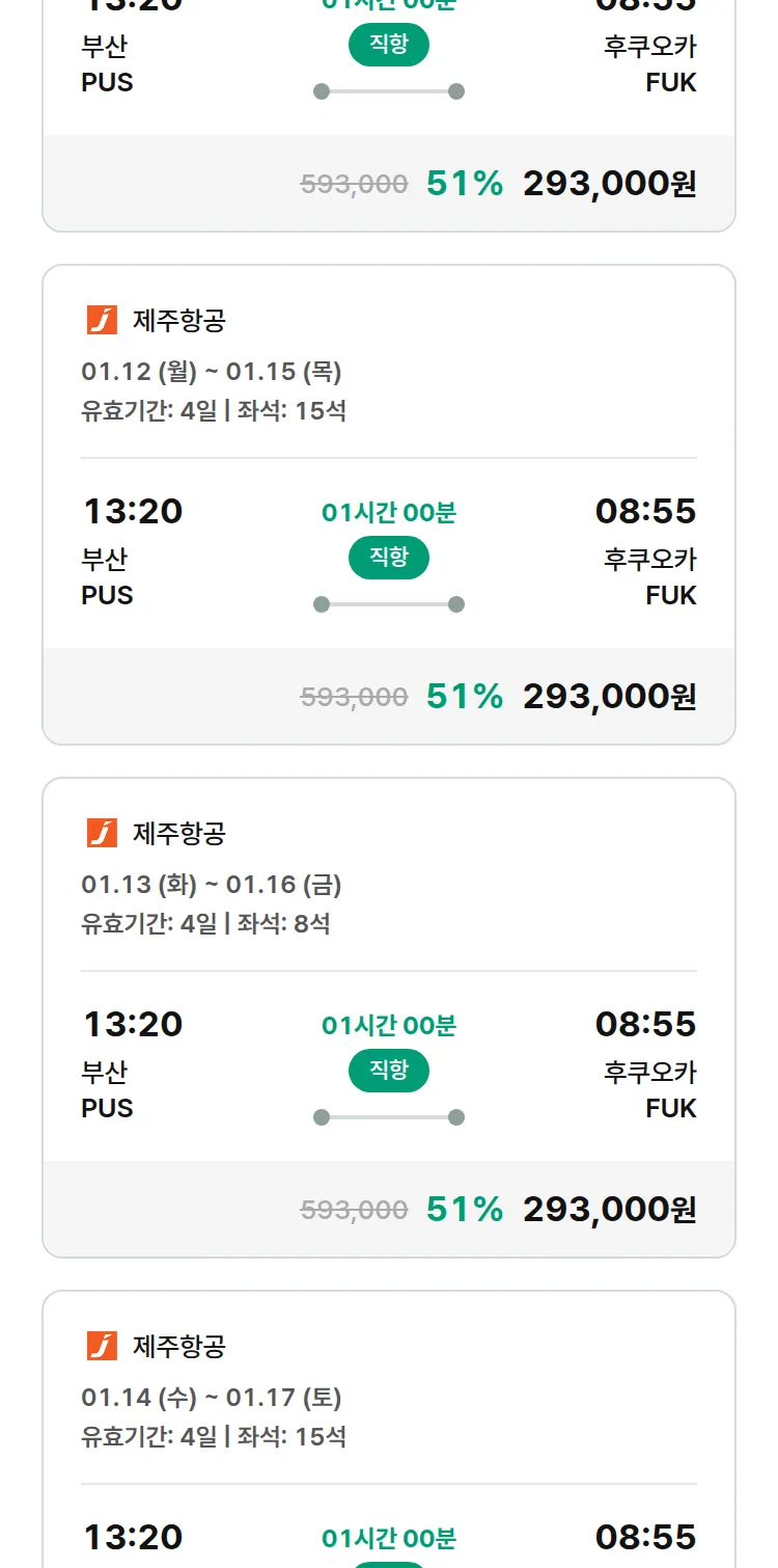 (12월 15일(월)) 모두투어 일본 특가 항공권