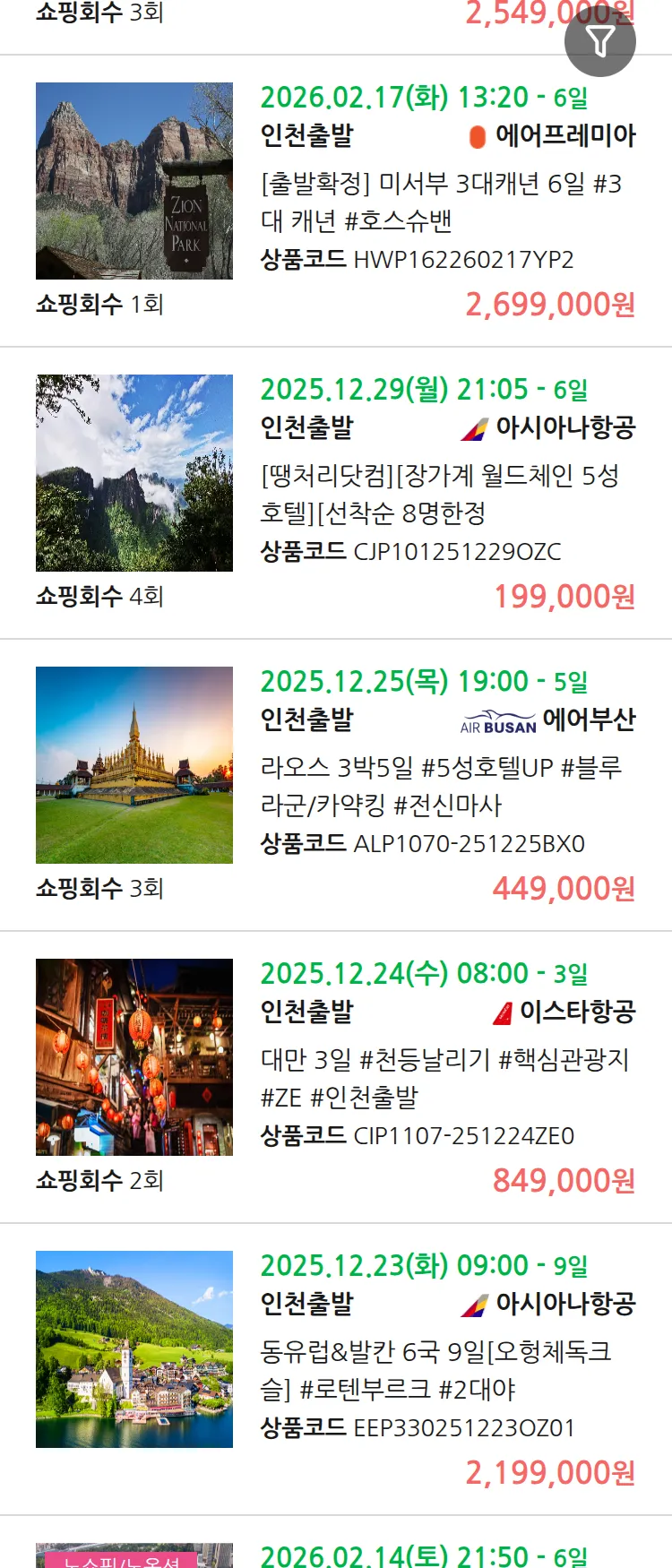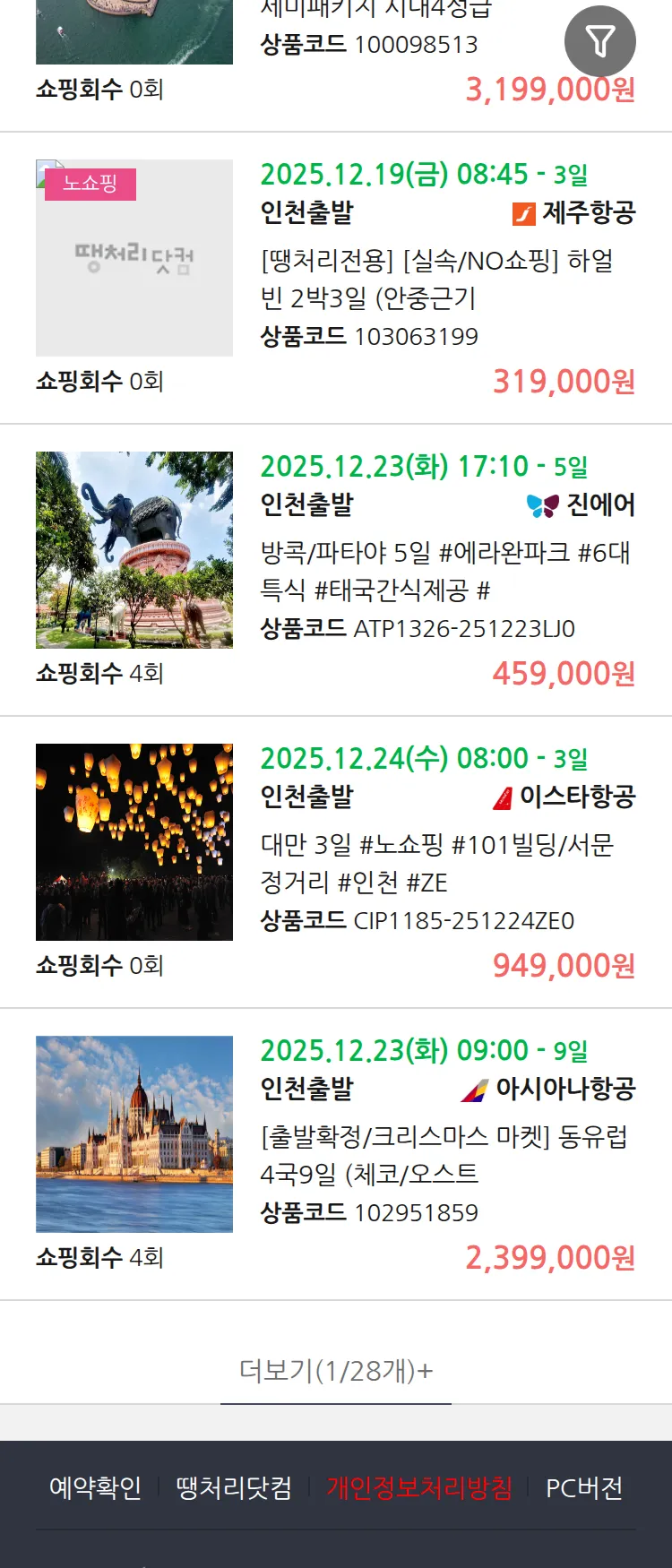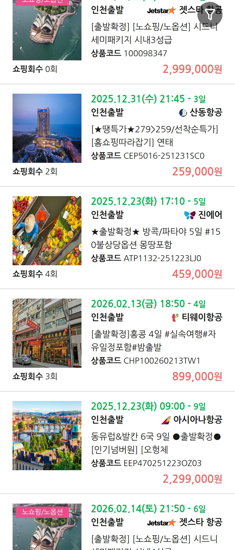 (12월 18일(목)) 땡처리 99.9% 확정 패키지
