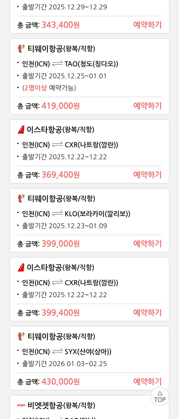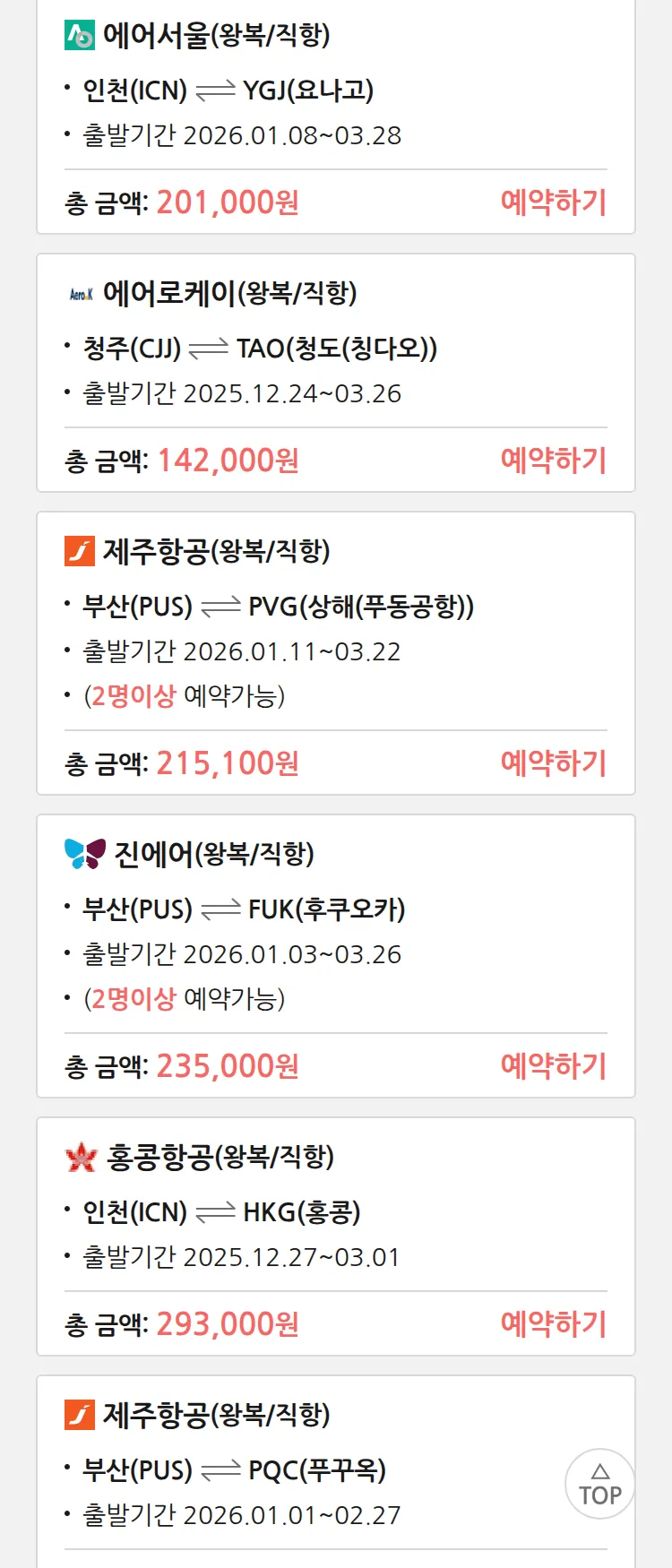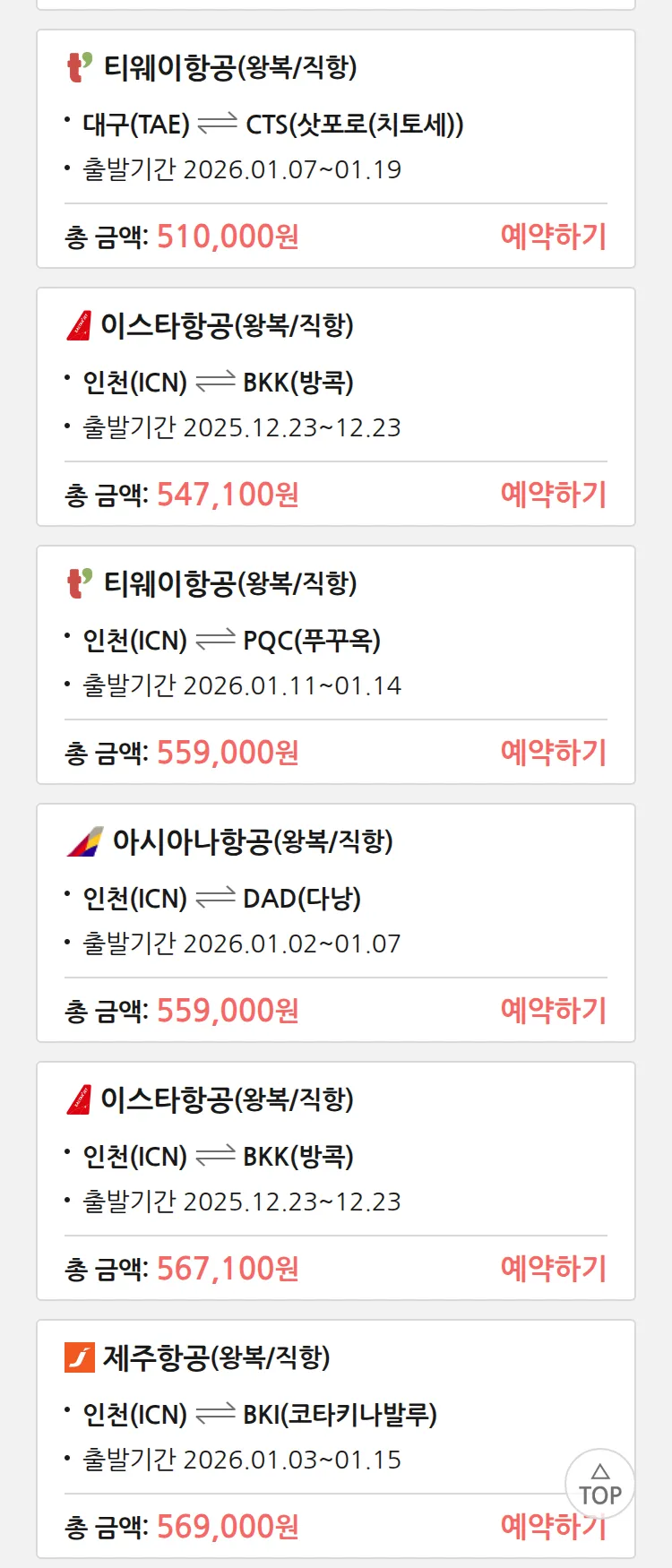(12월 16일(화)) 땡처리 99.9% 확정 패키지
