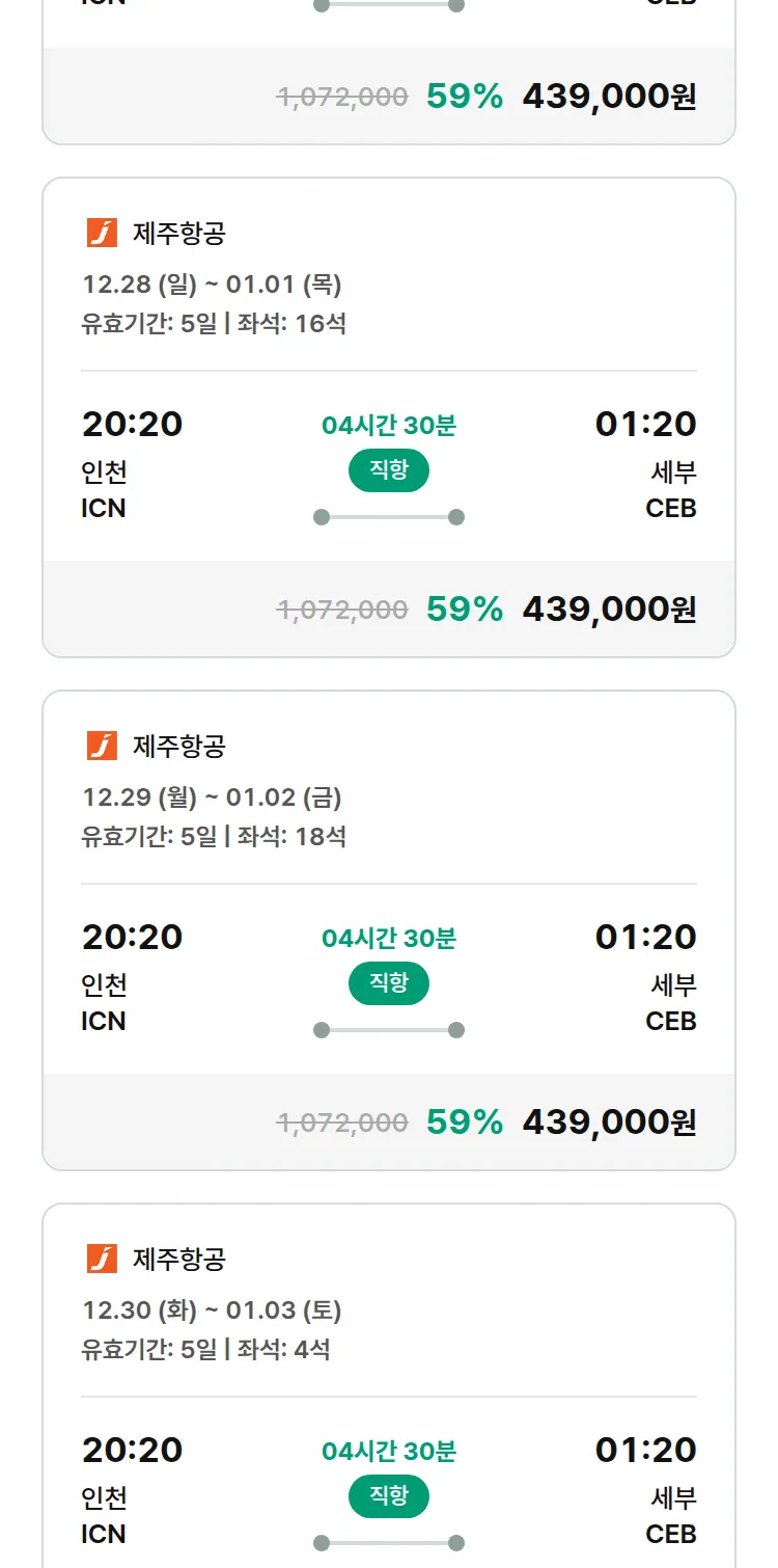 (12월 16일(화)) 땡처리 99.9% 확정 패키지