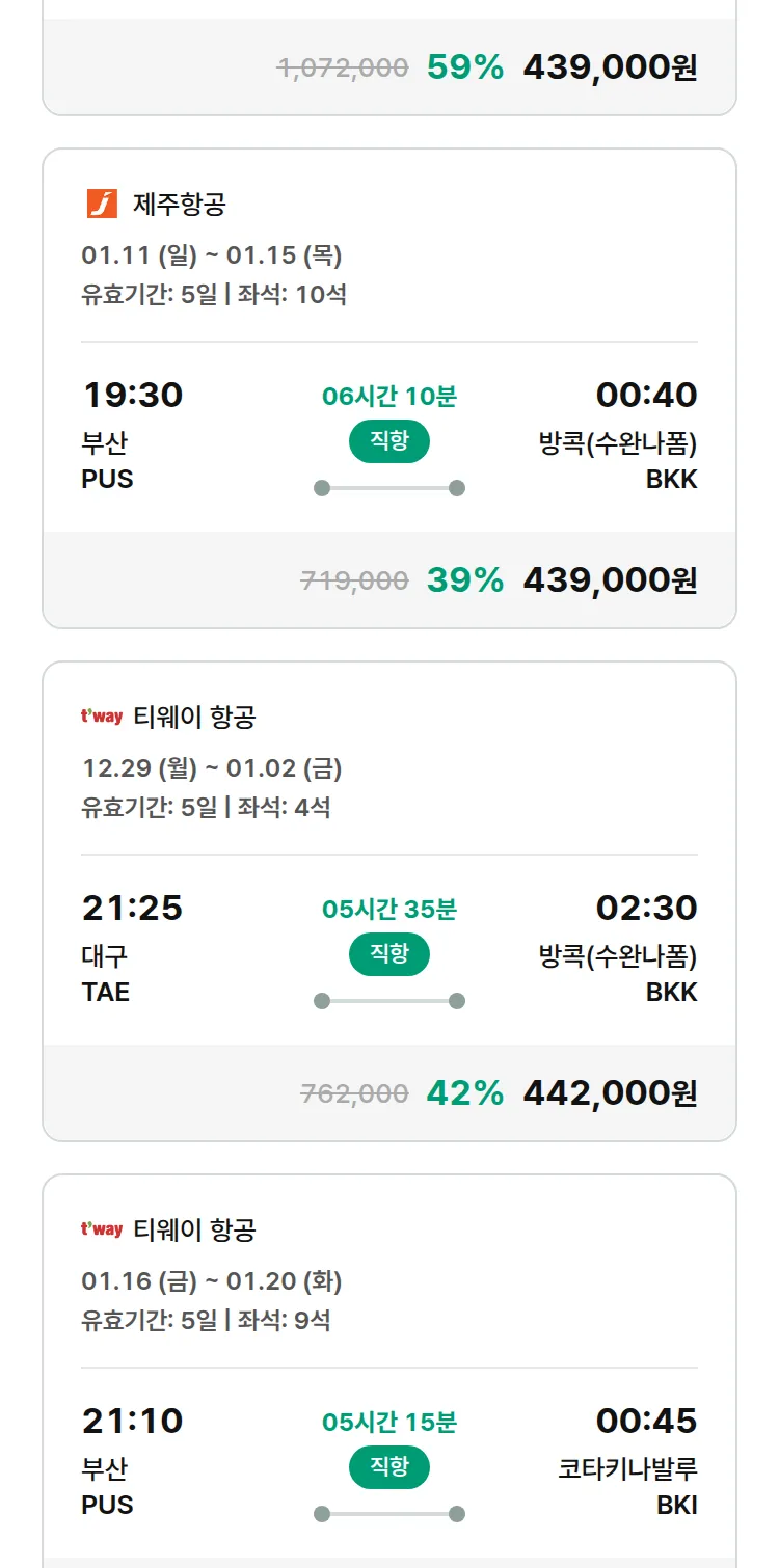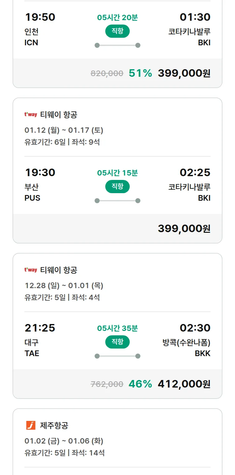 (12월 16일(화)) 모두투어 동남아 특가 항공권