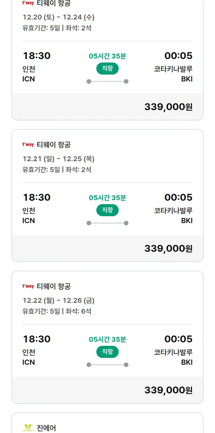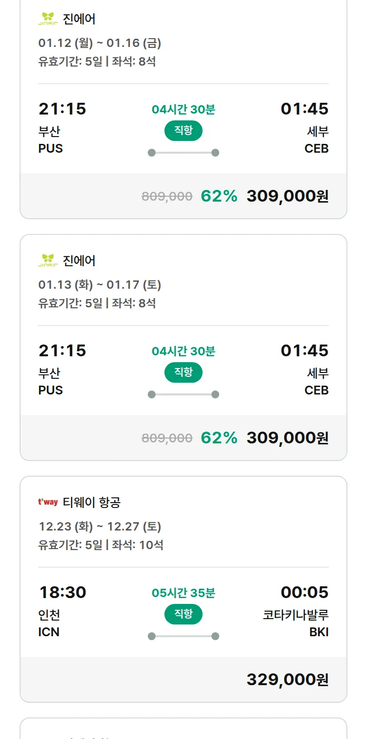 (12월 15일(월)) 땡처리 99.9% 확정 패키지