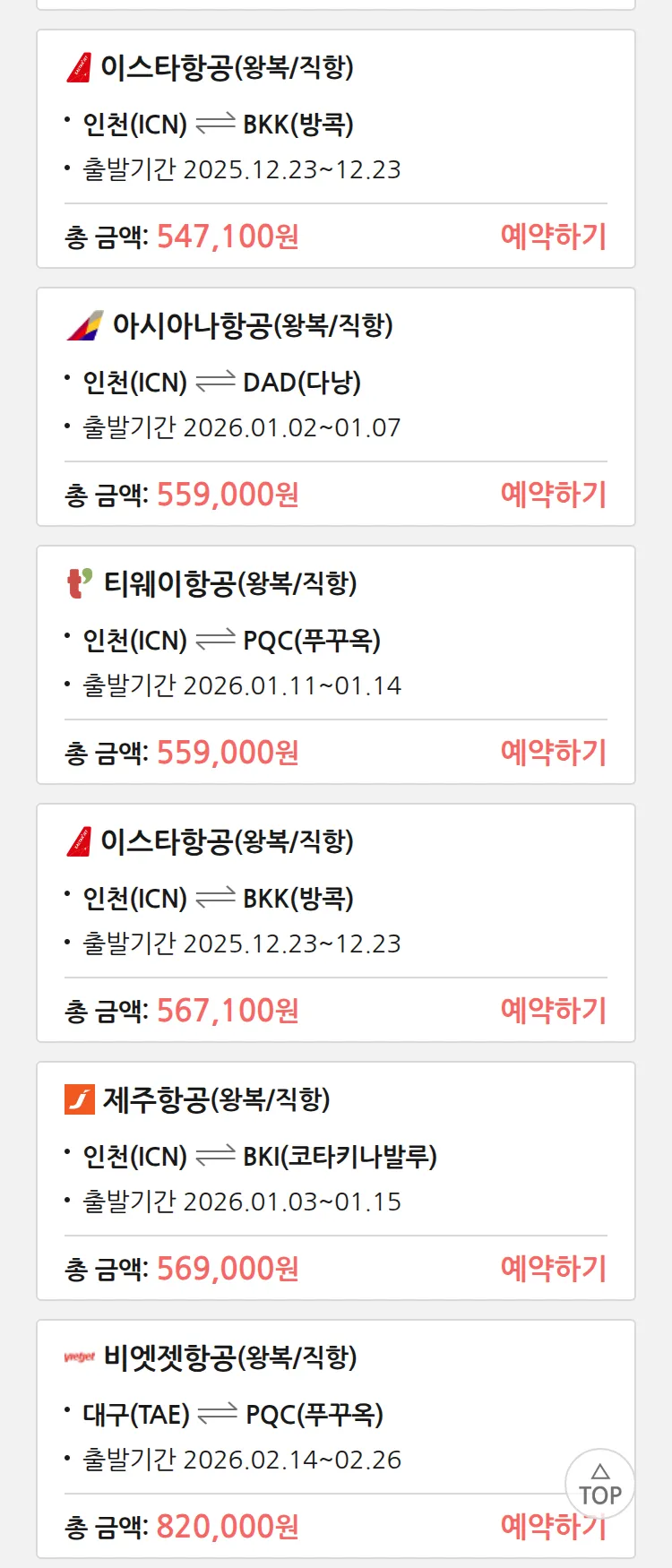 (12월 18일(목)) 모두투어 동남아 특가 항공권