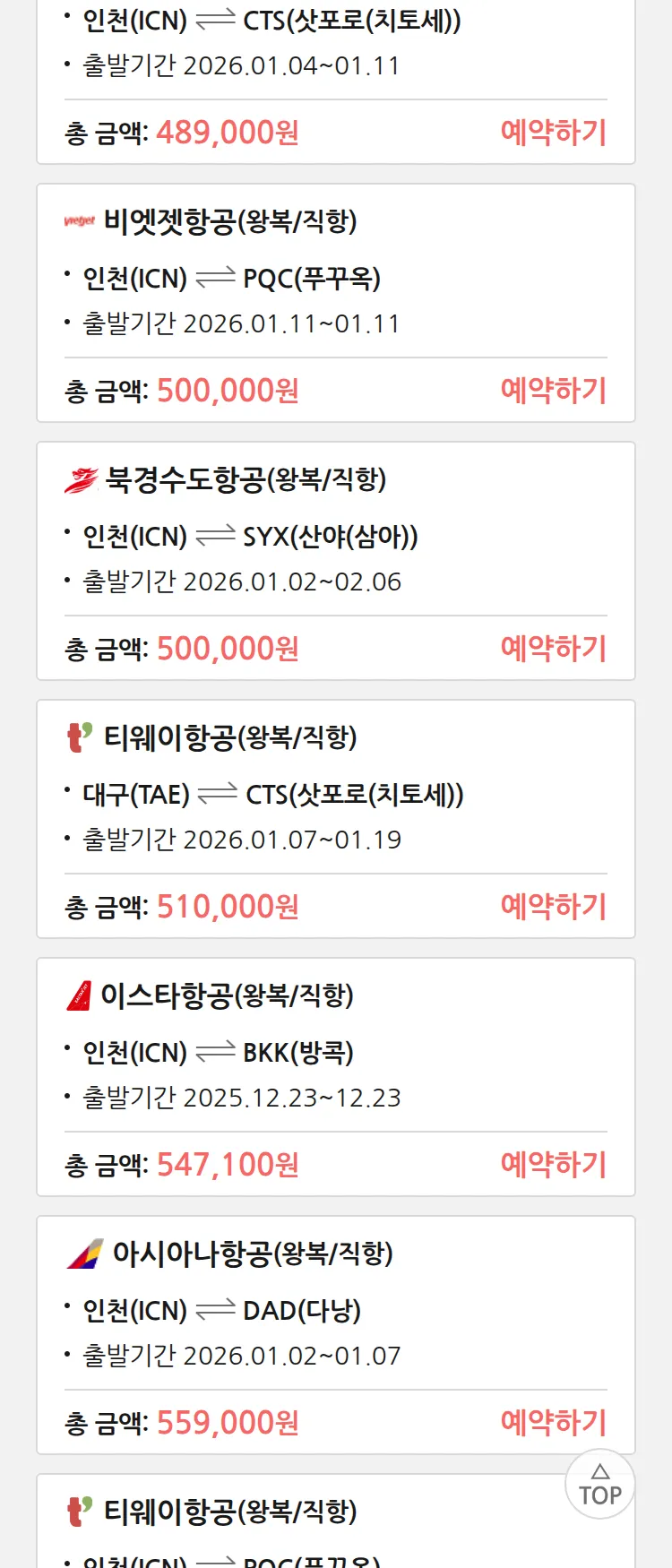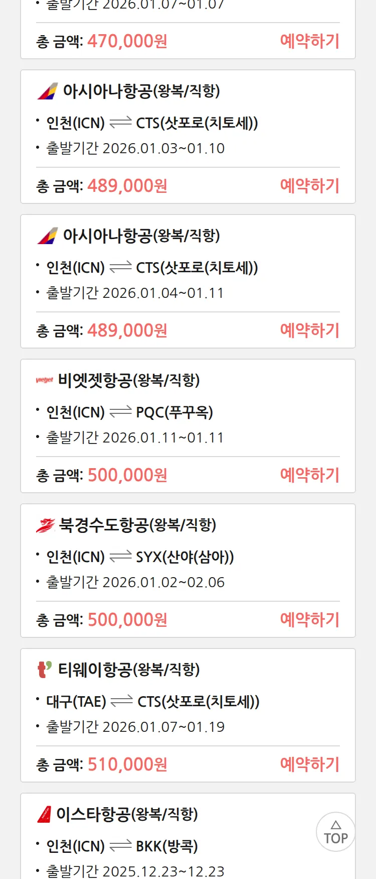 (12월 18일(목)) 땡처리 99.9% 확정 패키지