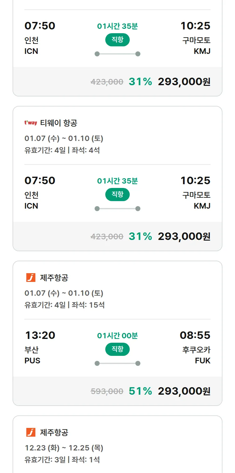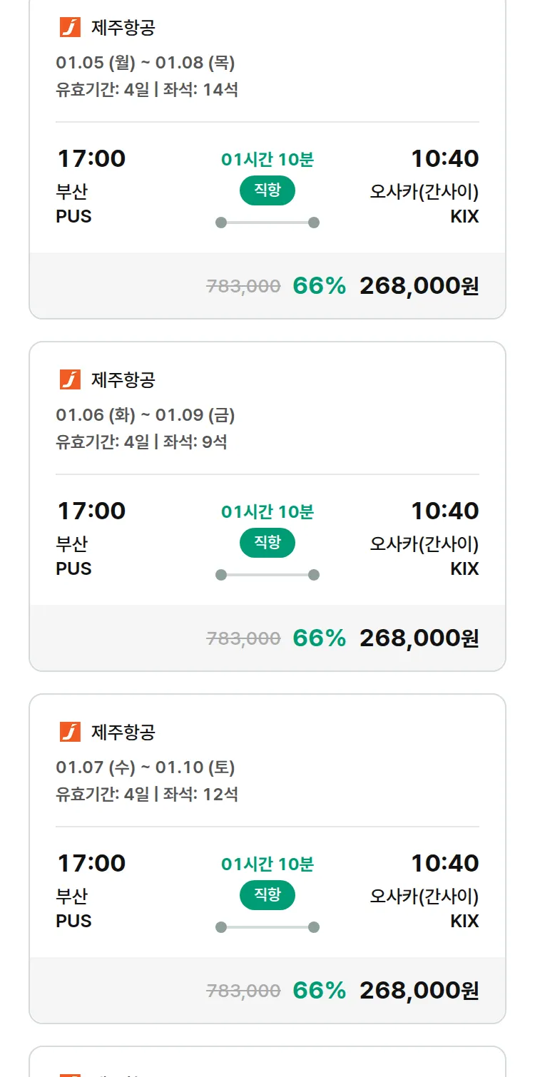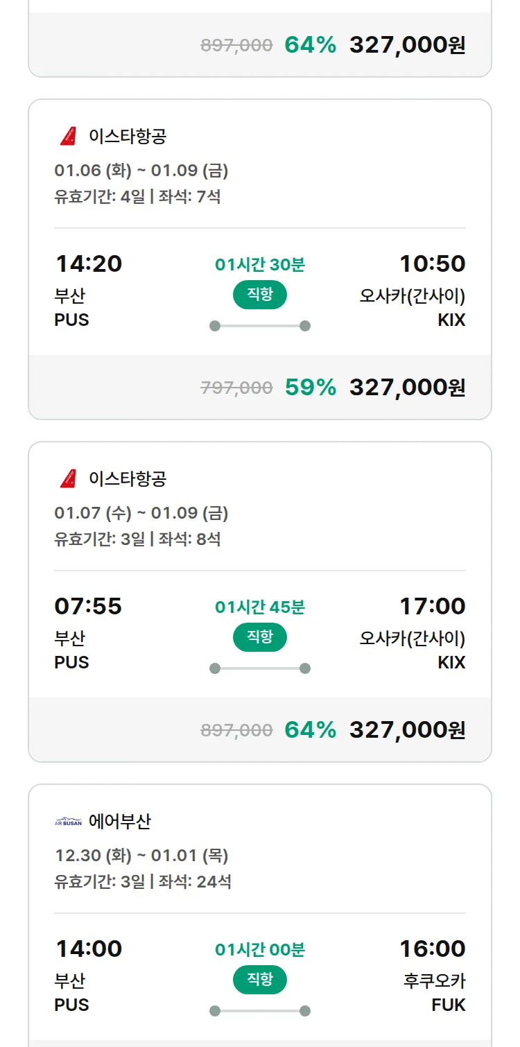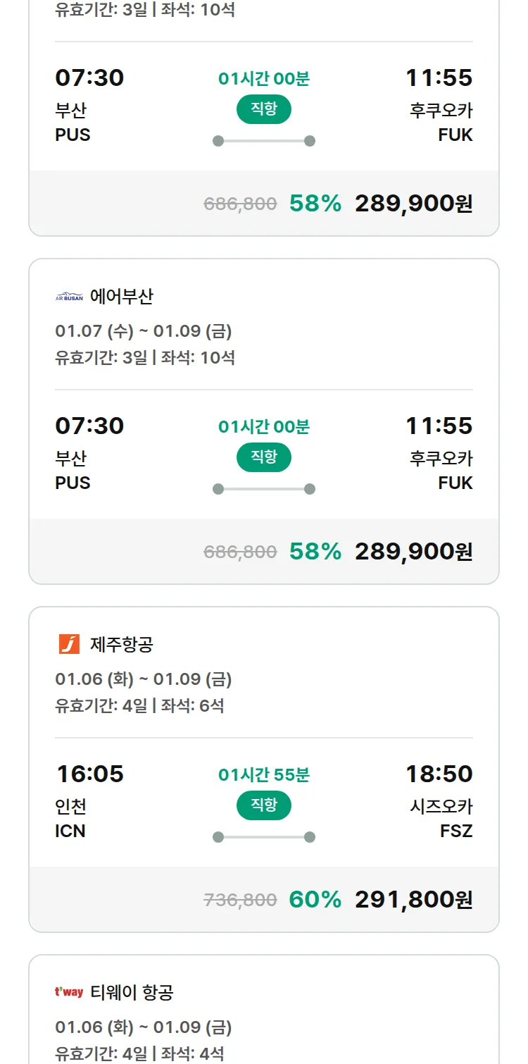 (12월 17일(수)) 모두투어 일본 특가 항공권