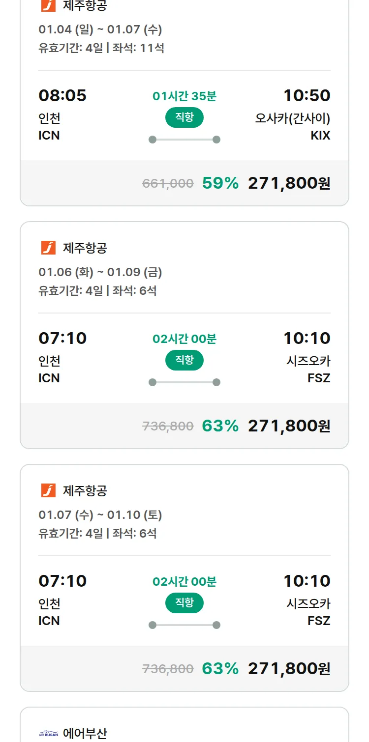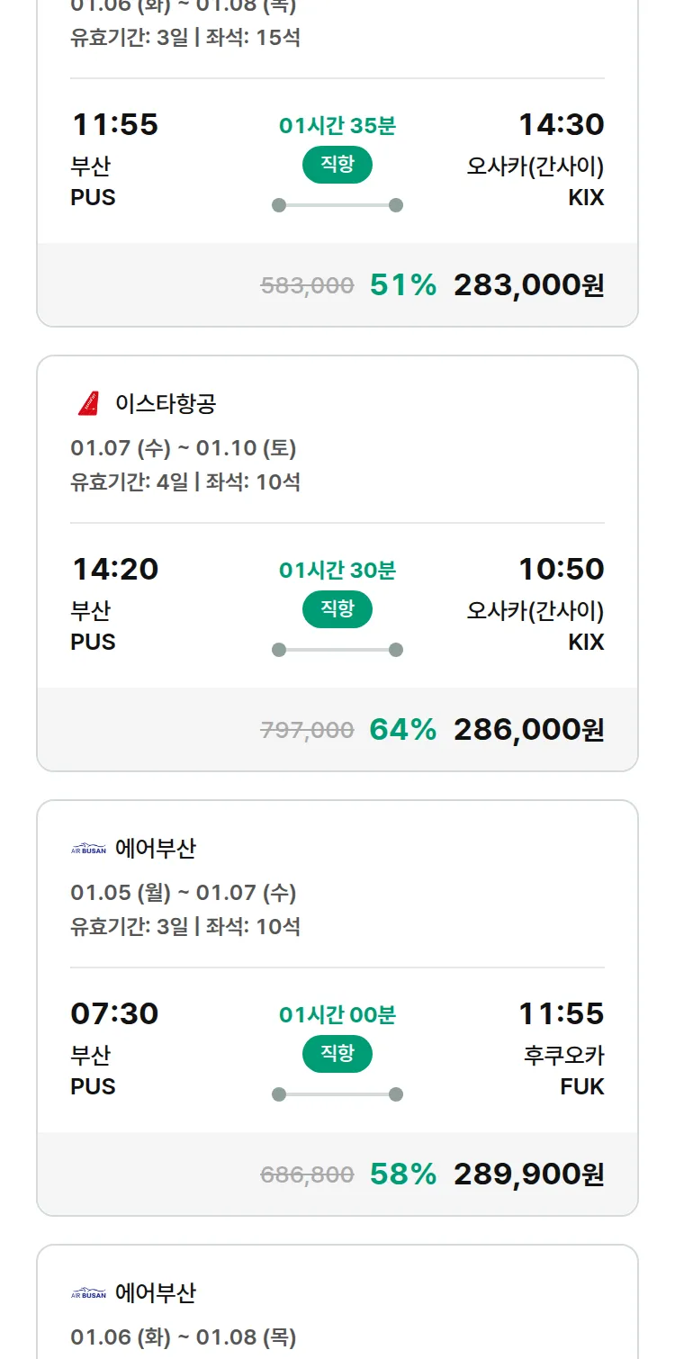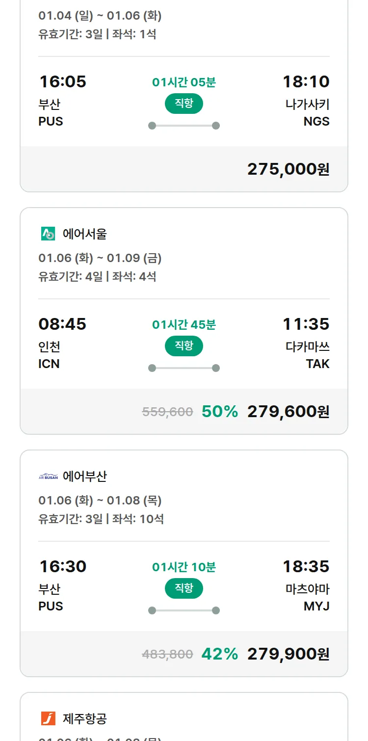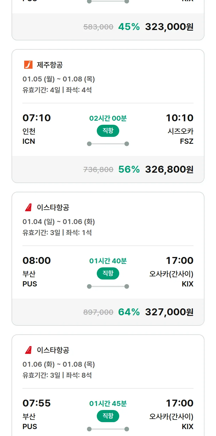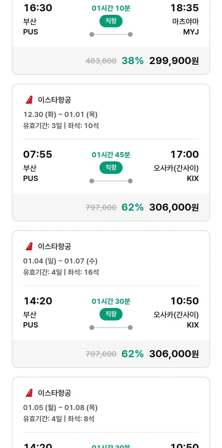 (12월 17일(수)) 모두투어 일본 특가 항공권