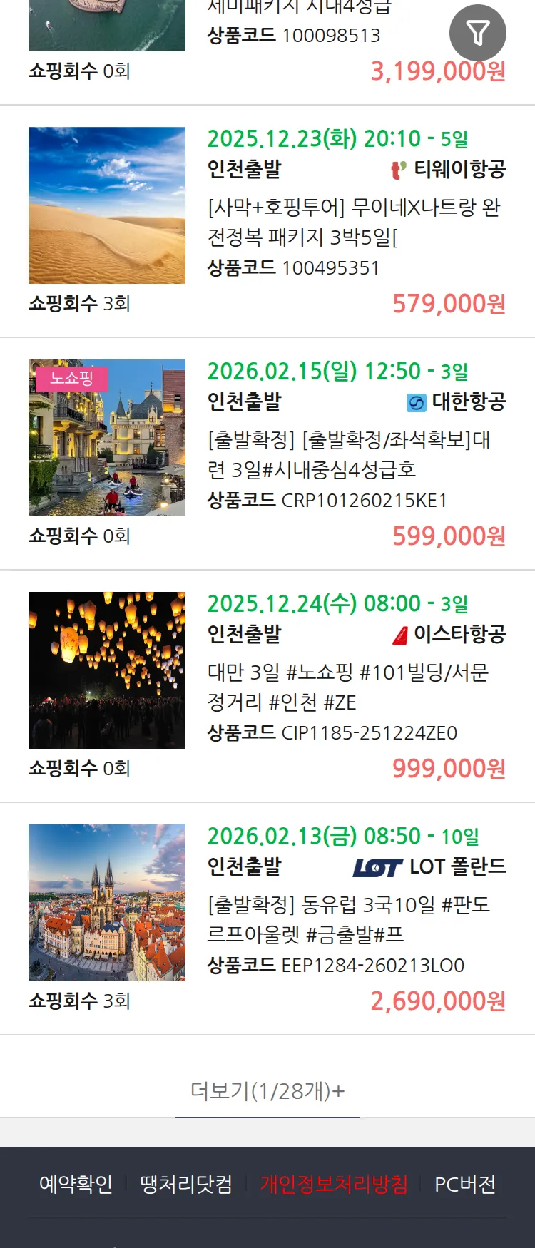 (12월 19일(금)) 땡처리 99.9% 확정 패키지