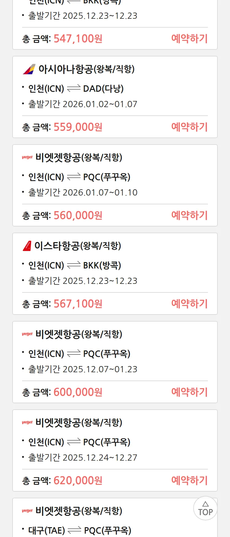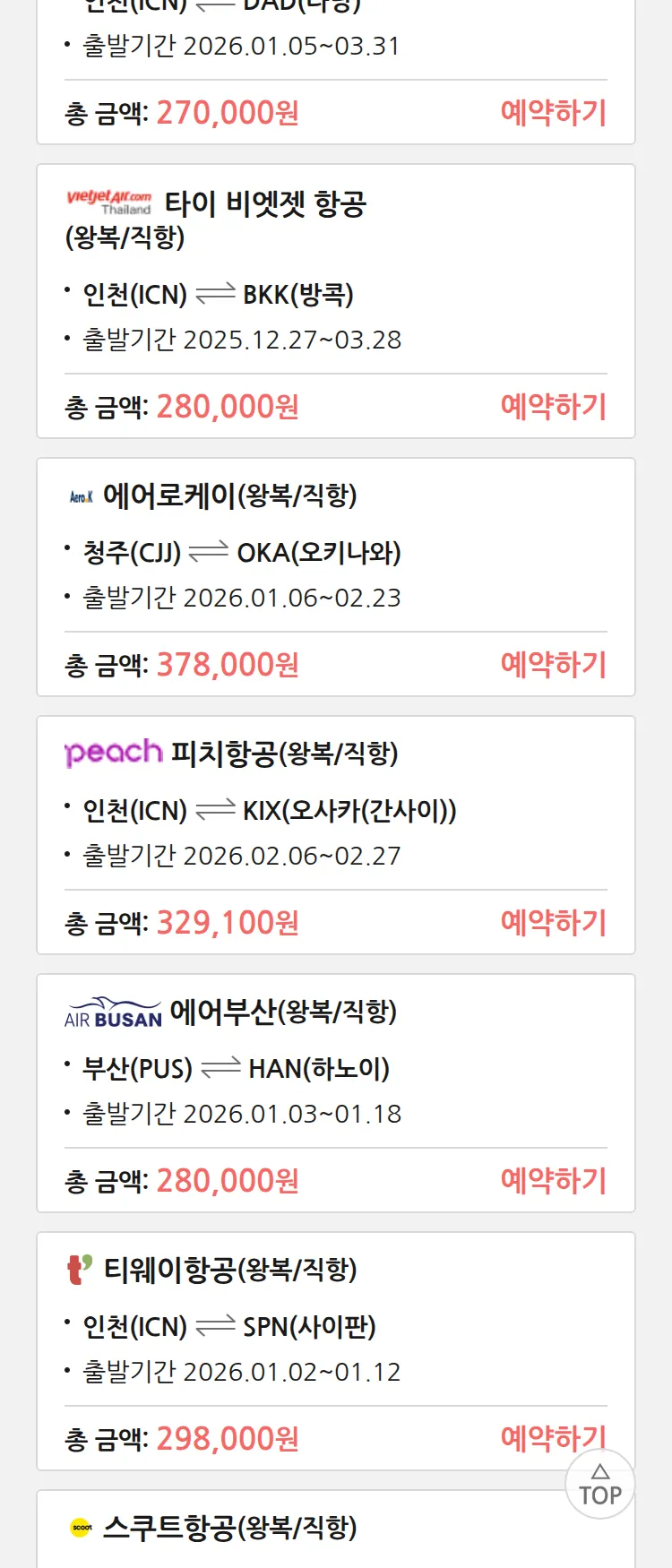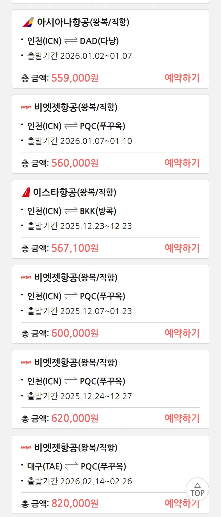 (12월 19일(금)) 모두투어 동남아 특가 항공권