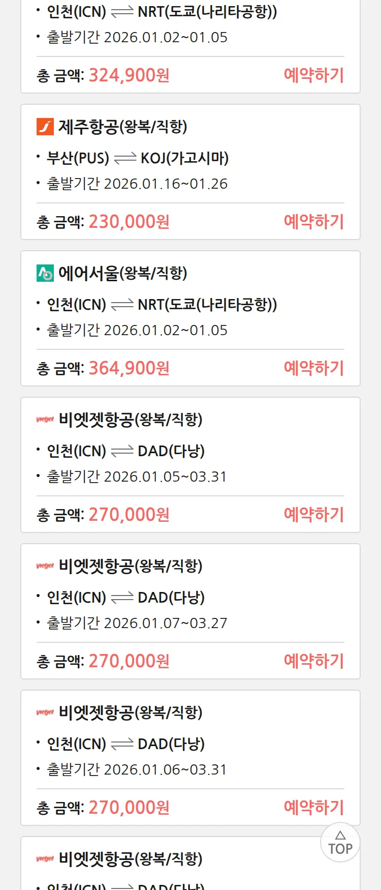 (12월 18일(목)) 땡처리 연휴 패키지 패키지
