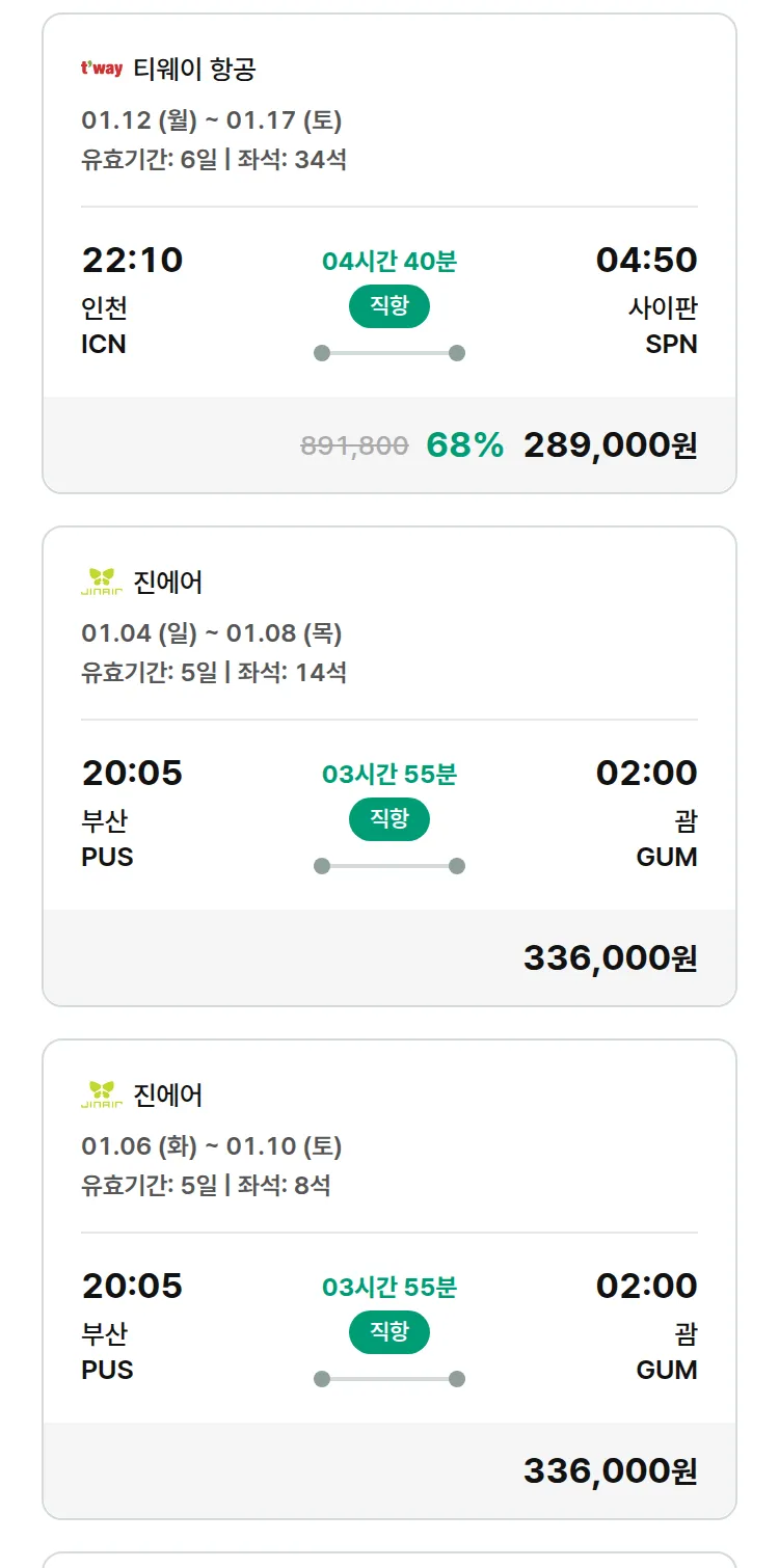 (12월 19일(금)) 모두투어 남태평양 특가 항공권