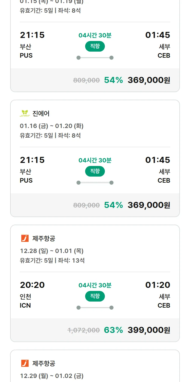 (12월 17일(수)) 땡처리 99.9% 확정 패키지