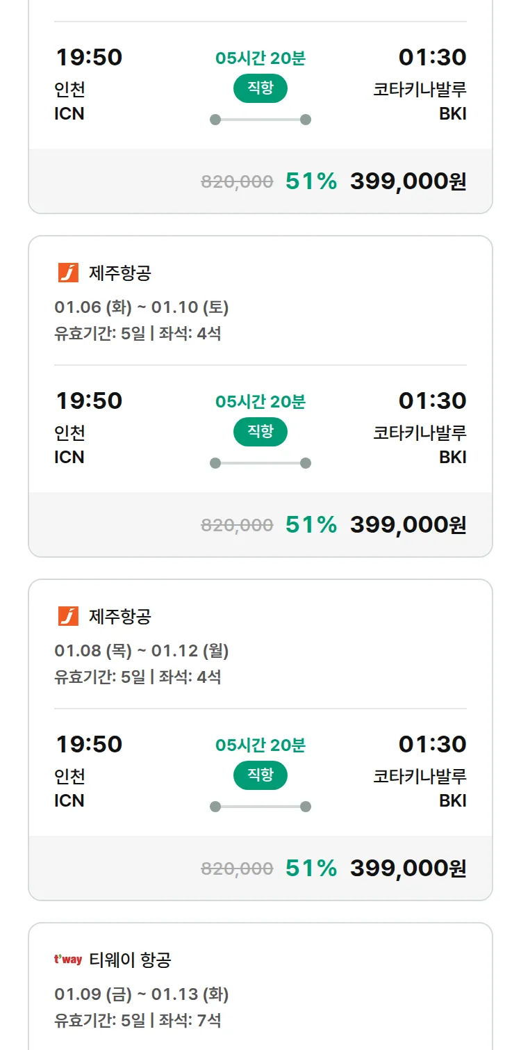 (12월 18일(목)) 모두투어 동남아 특가 항공권