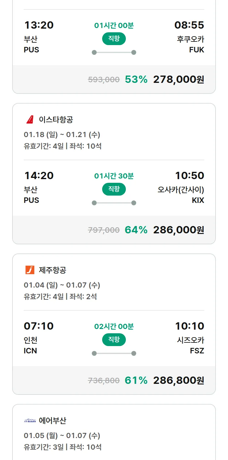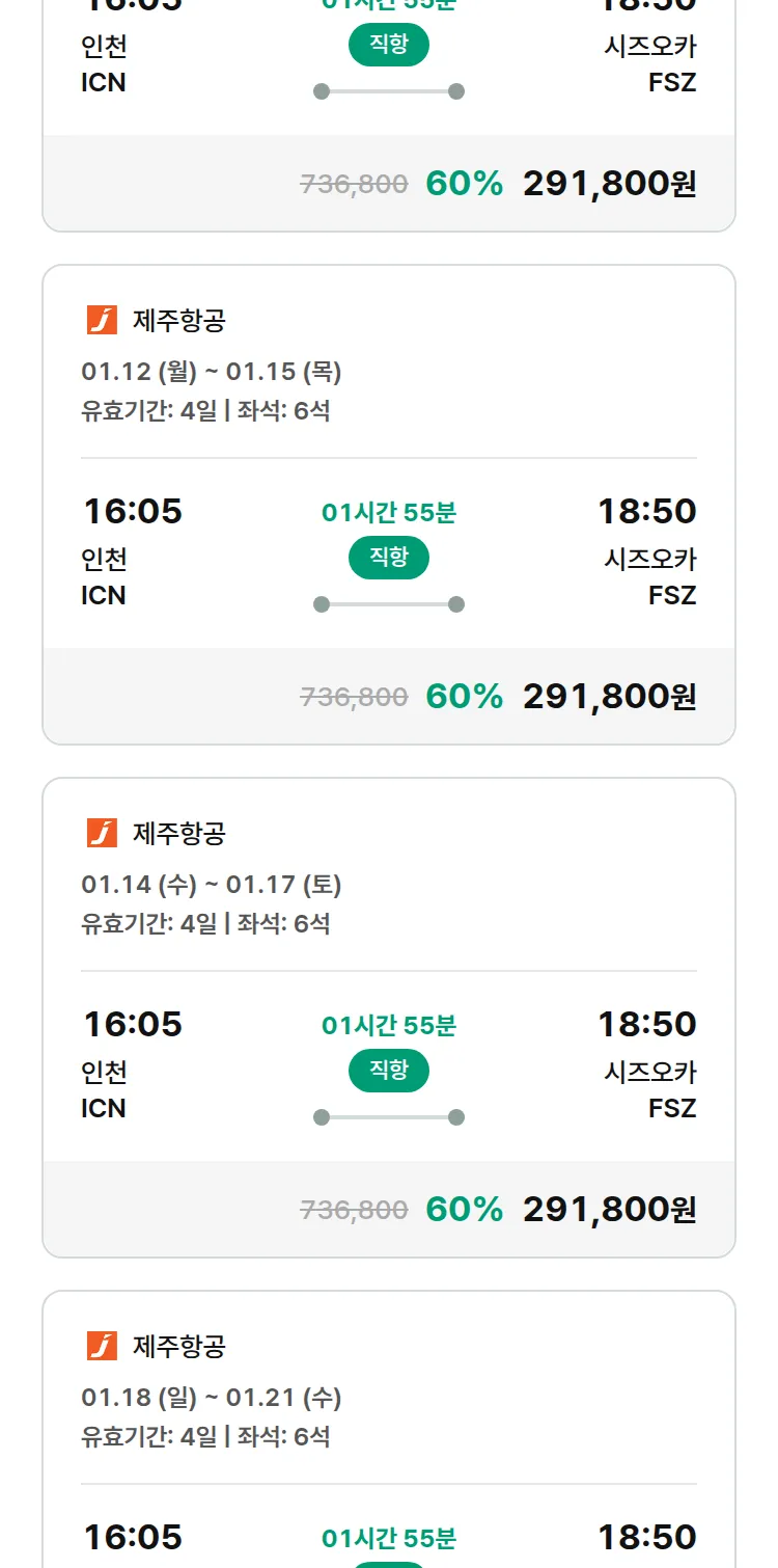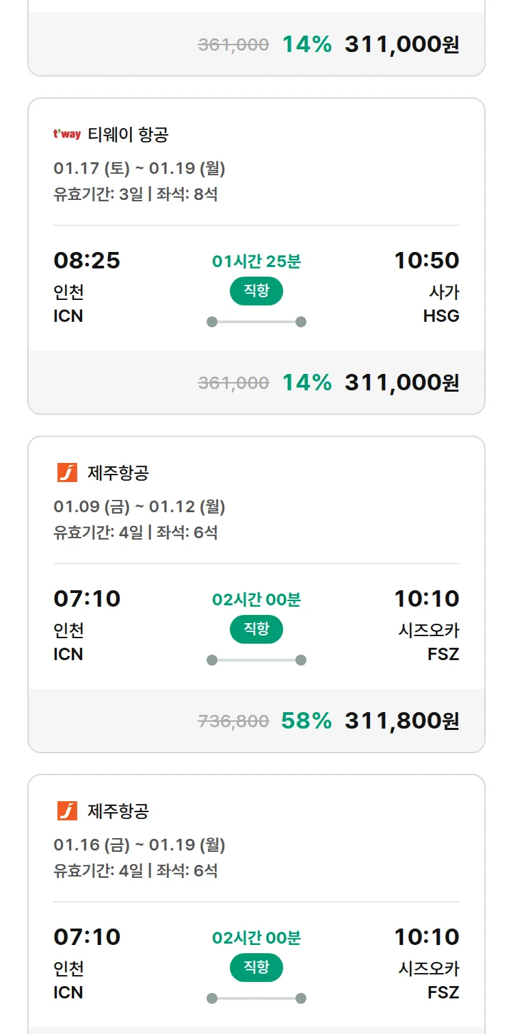 (12월 18일(목)) 모두투어 일본 특가 항공권