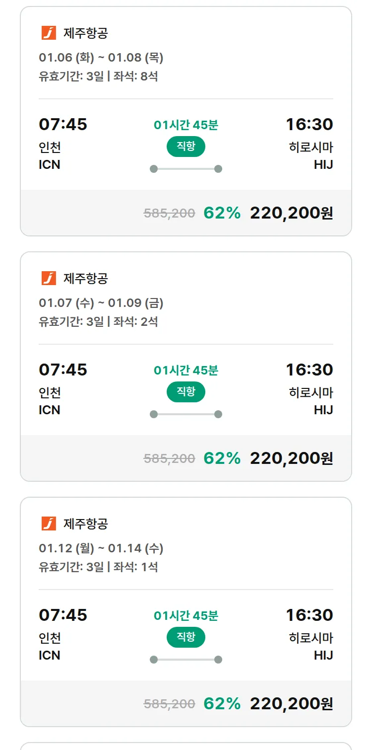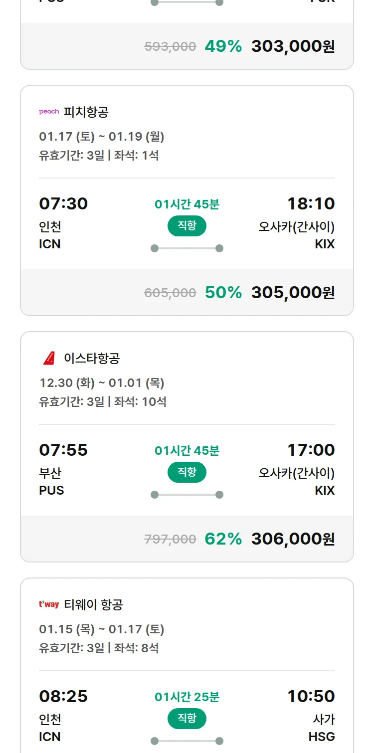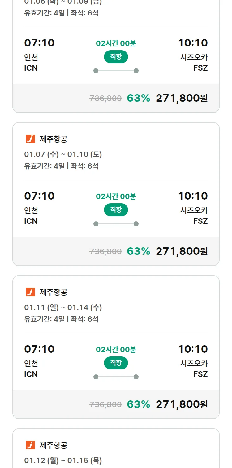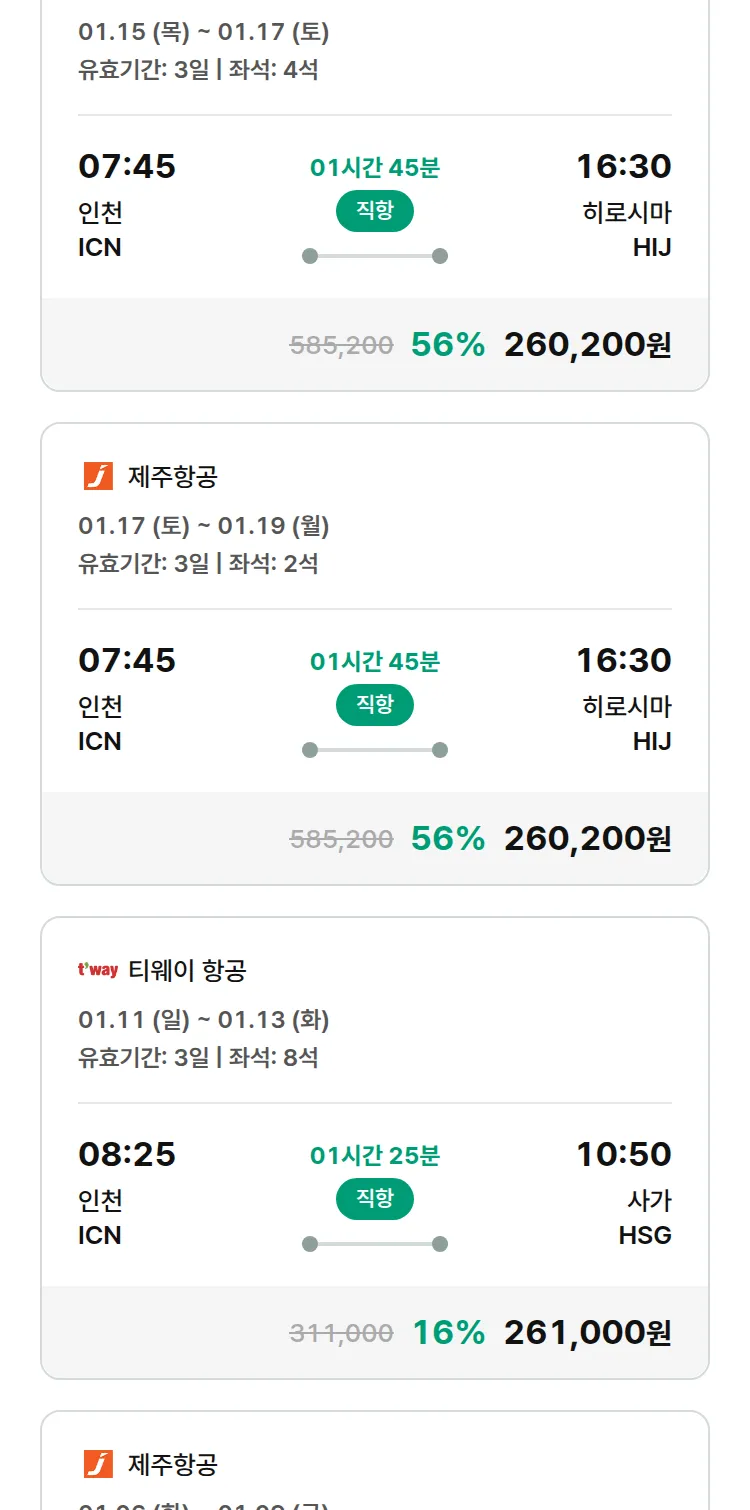 (12월 18일(목)) 모두투어 일본 특가 항공권