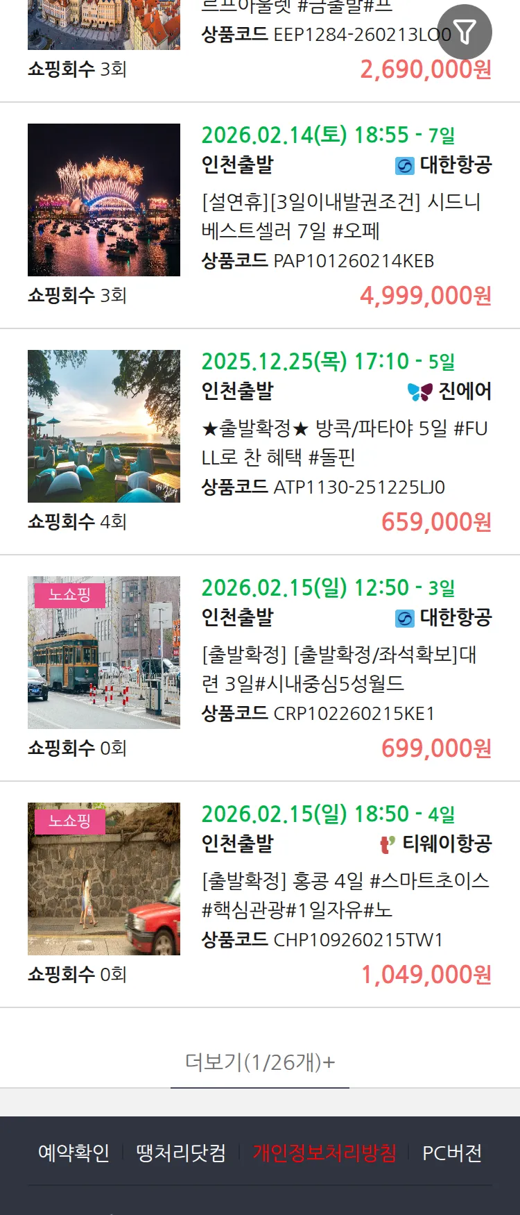 (12월 21일(일)) 땡처리 99.9% 확정 패키지