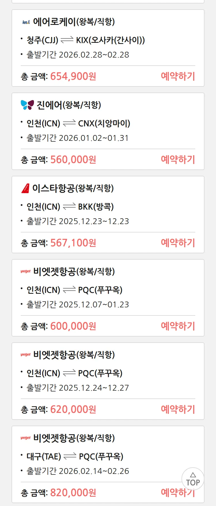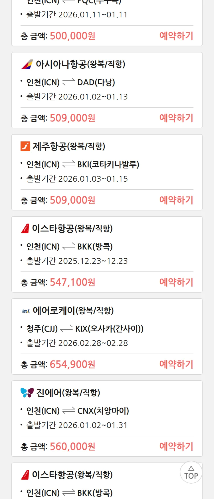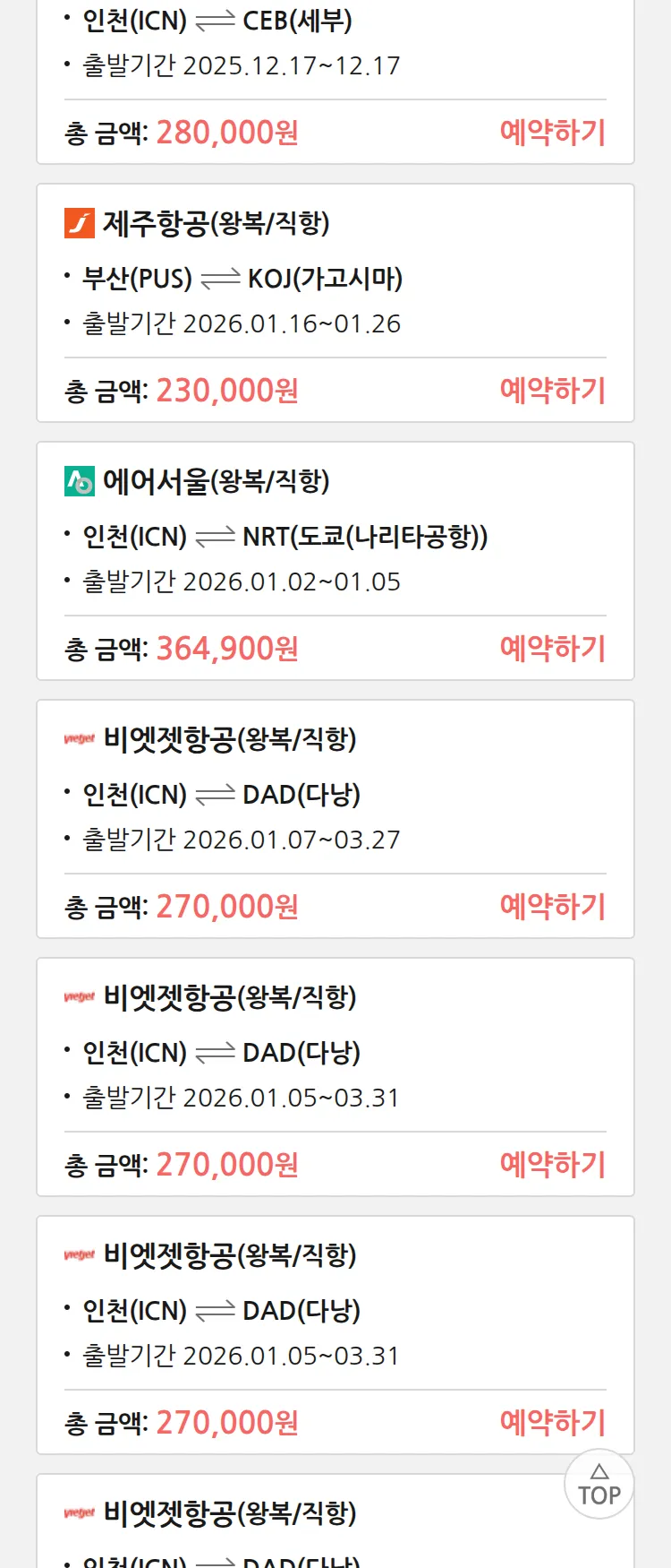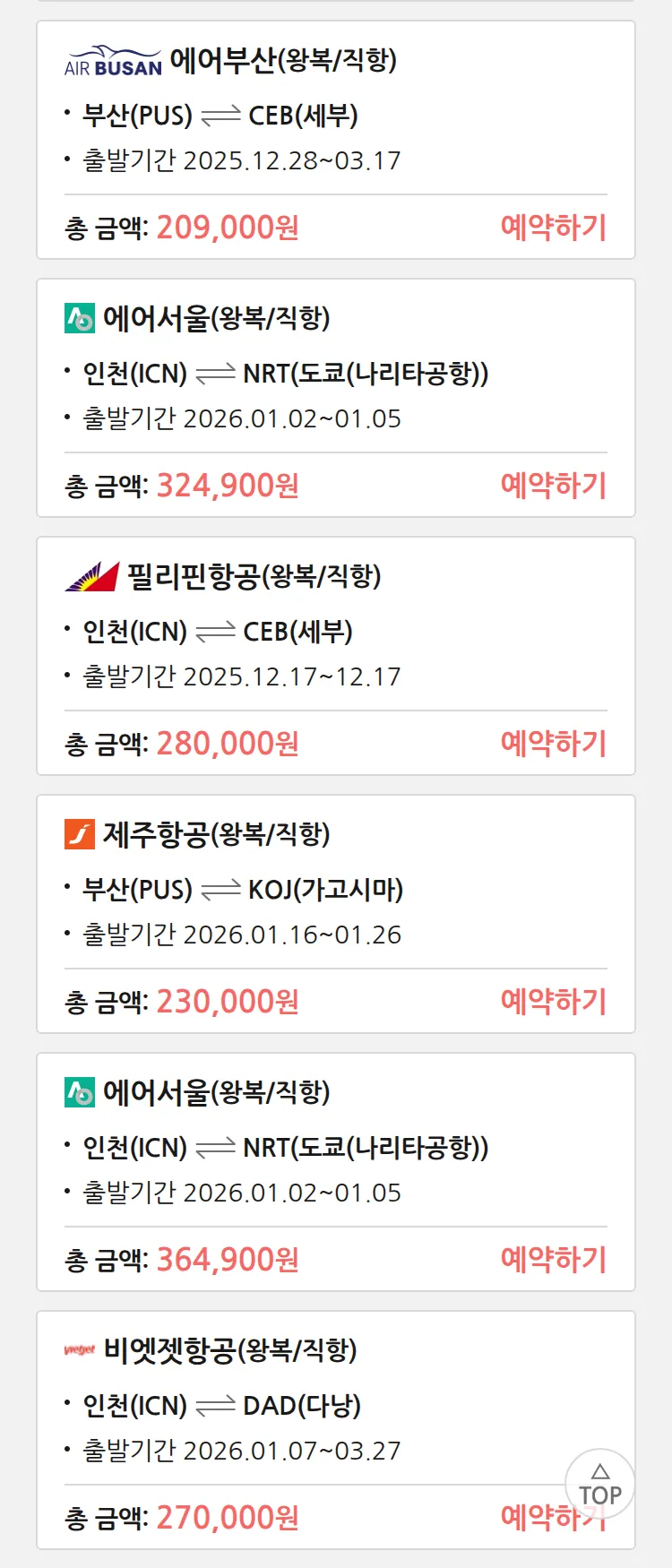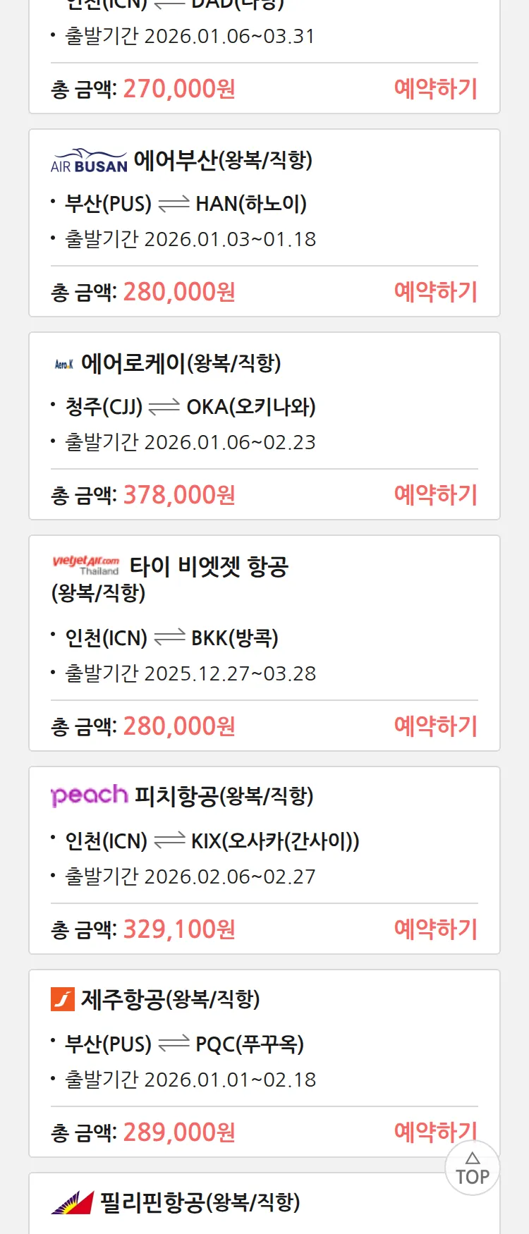 (12월 19일(금)) 모두투어 동남아 특가 항공권