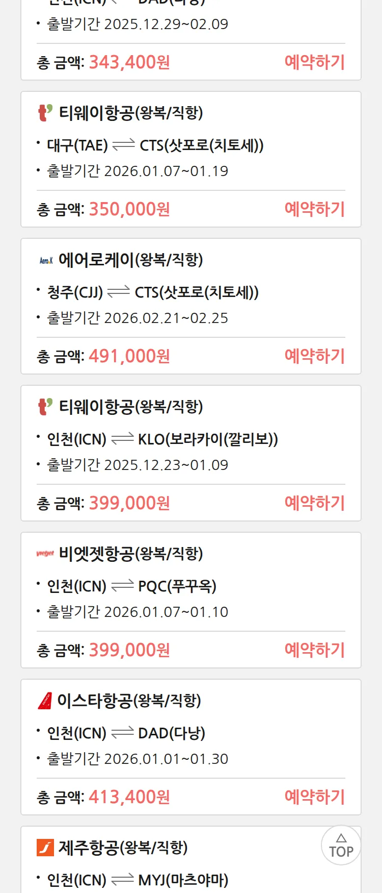 (12월 19일(금)) 땡처리 99.9% 확정 패키지