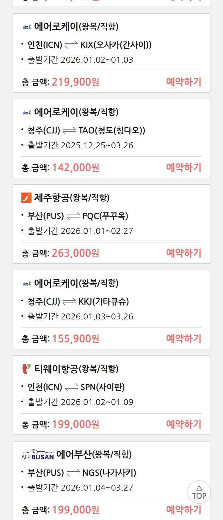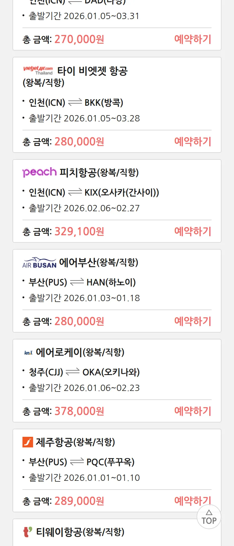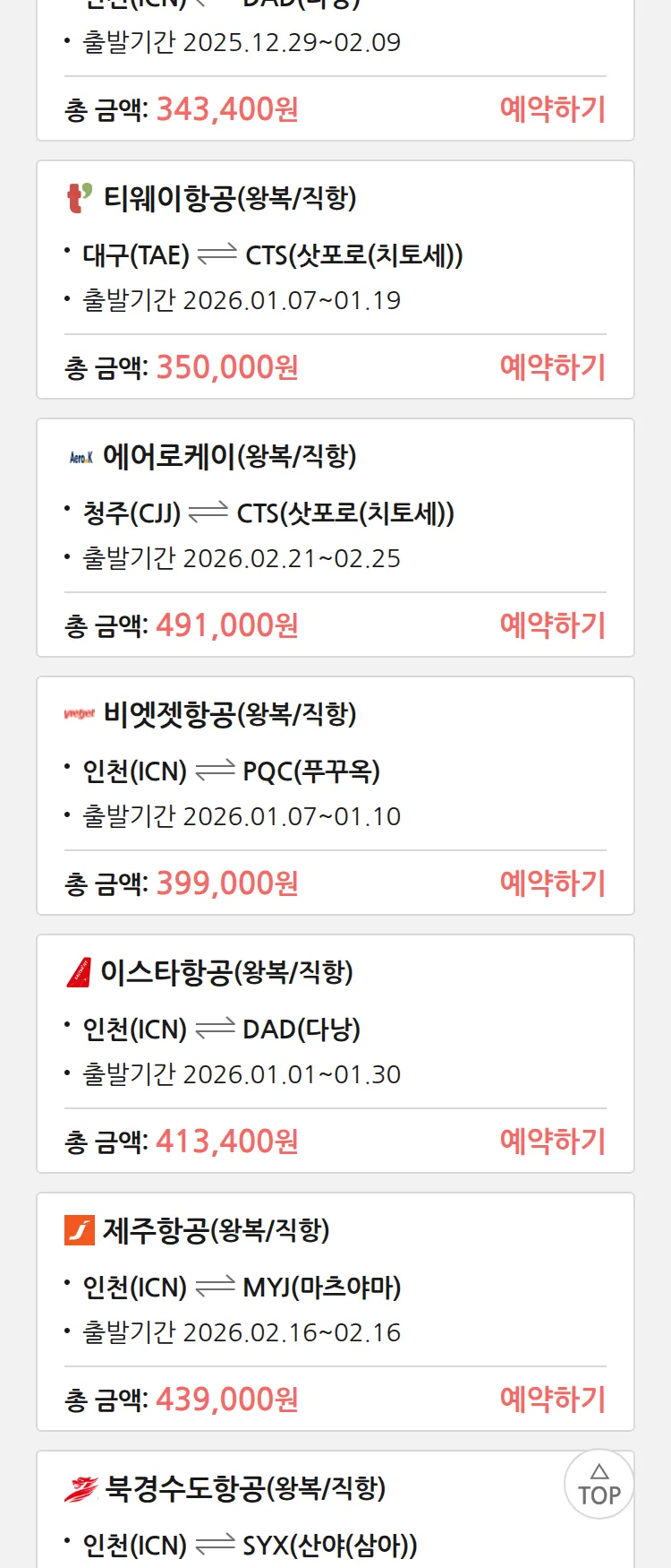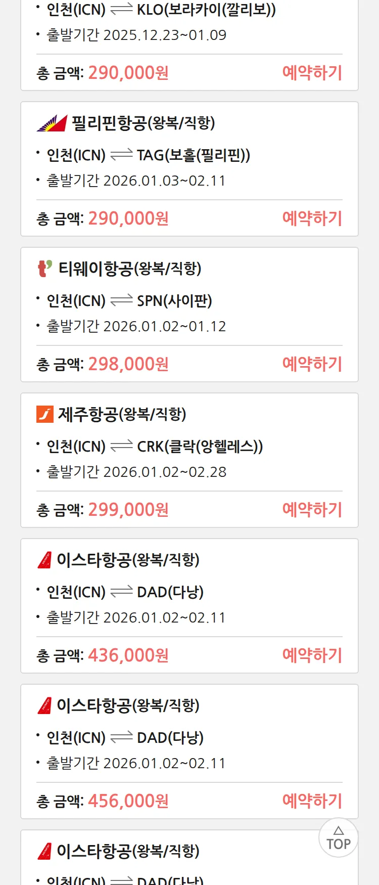 (12월 18일(목)) 땡처리 특가 항공권