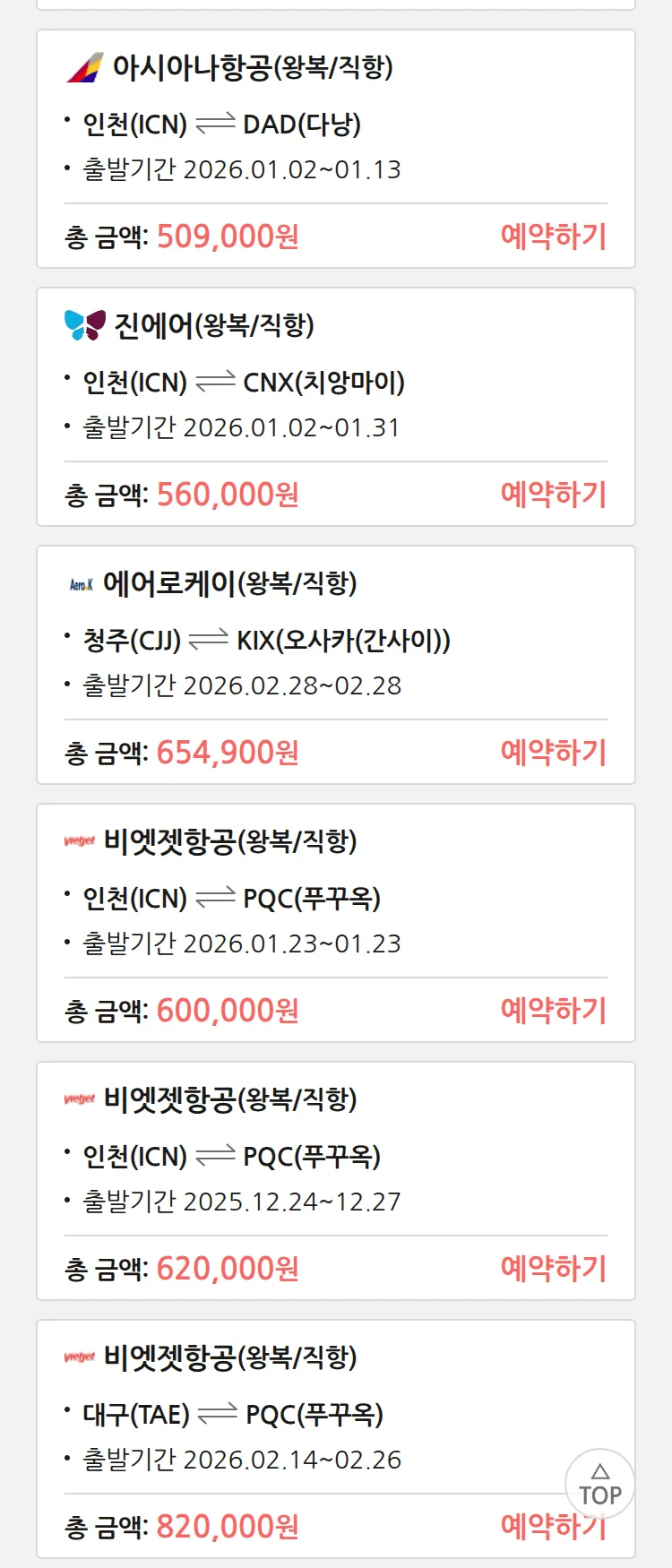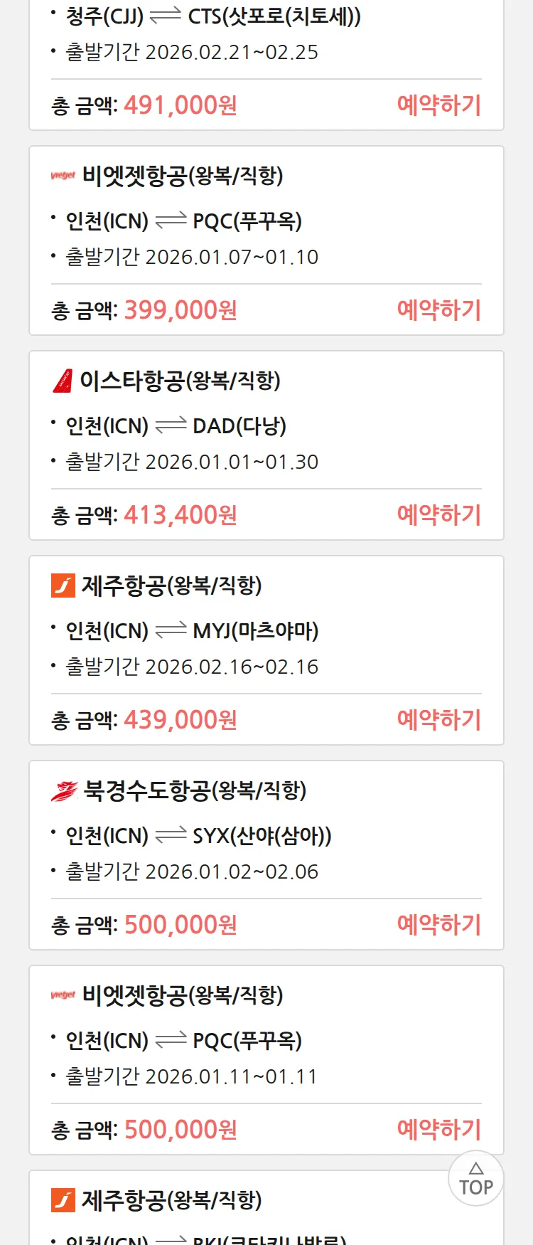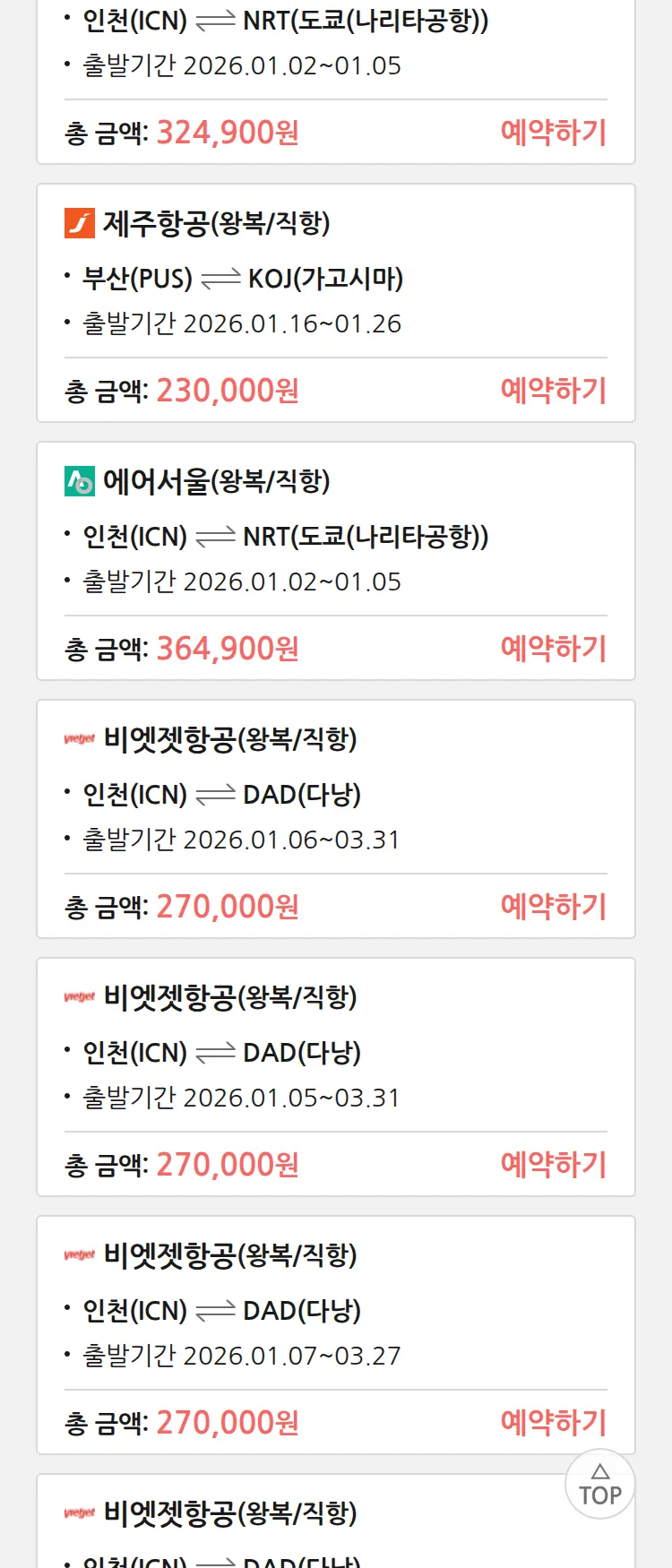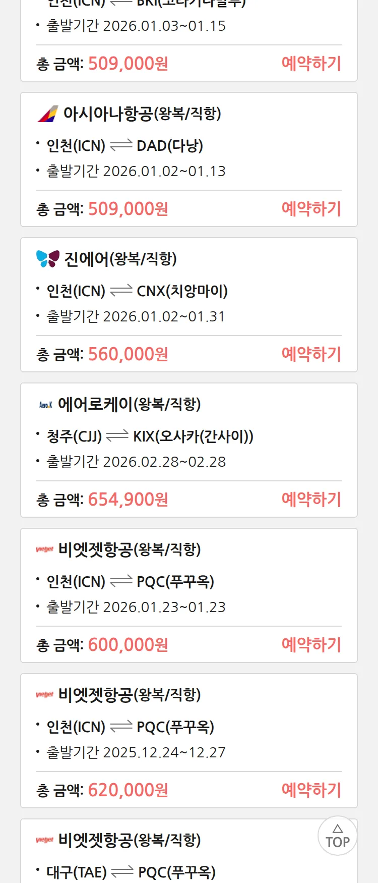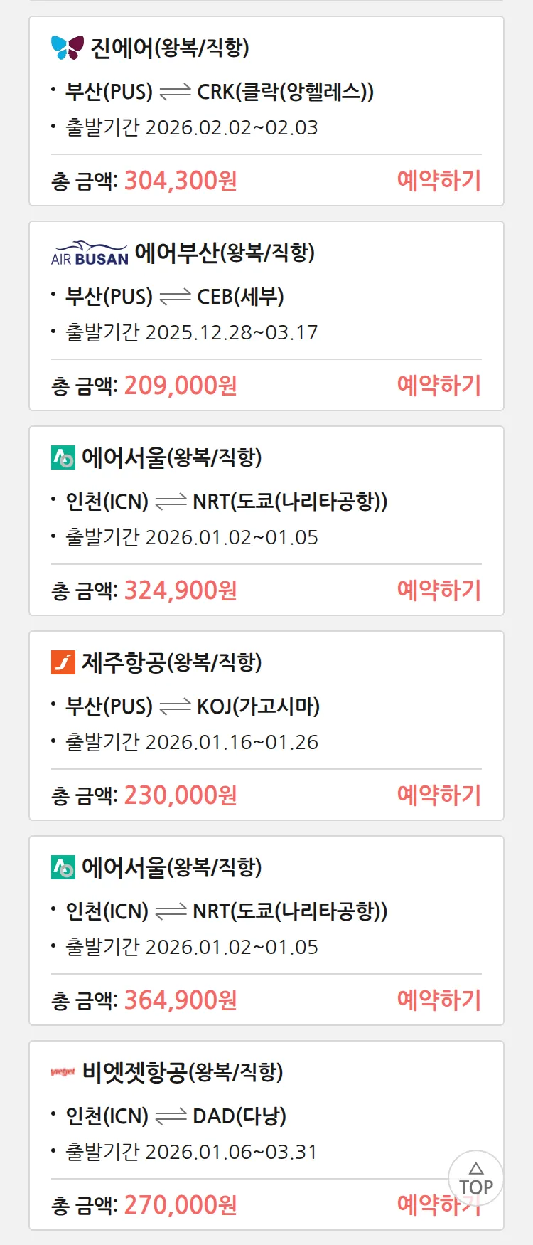 (12월 18일(목)) 땡처리 특가 항공권