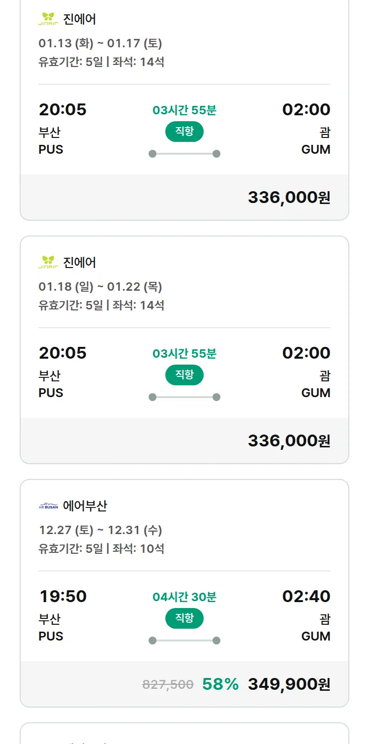 (12월 19일(금)) 모두투어 남태평양 특가 항공권