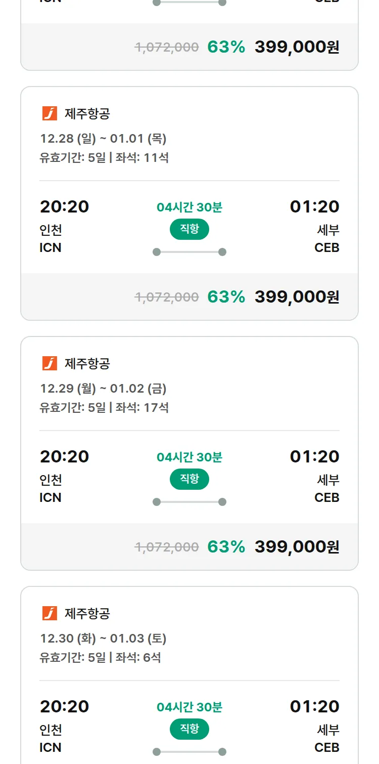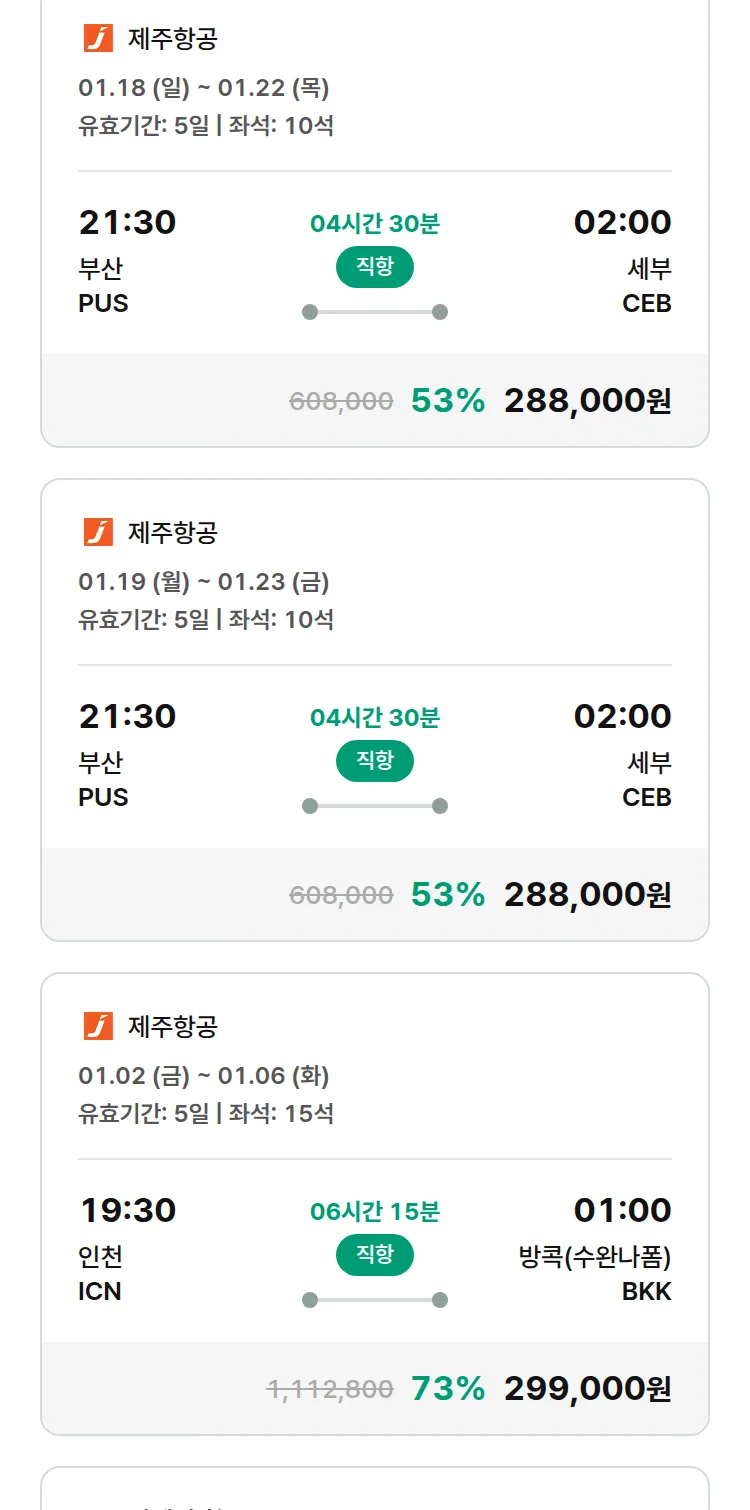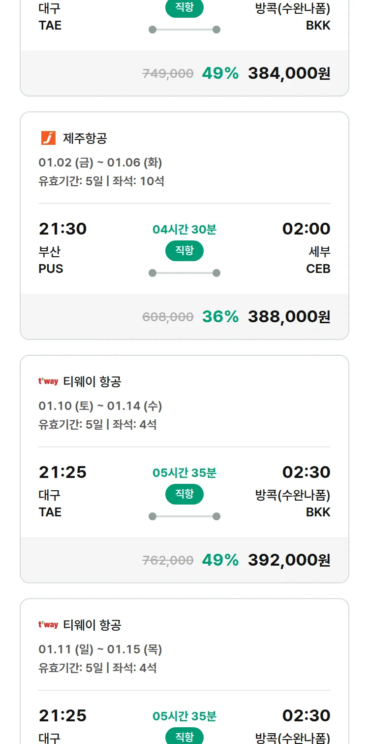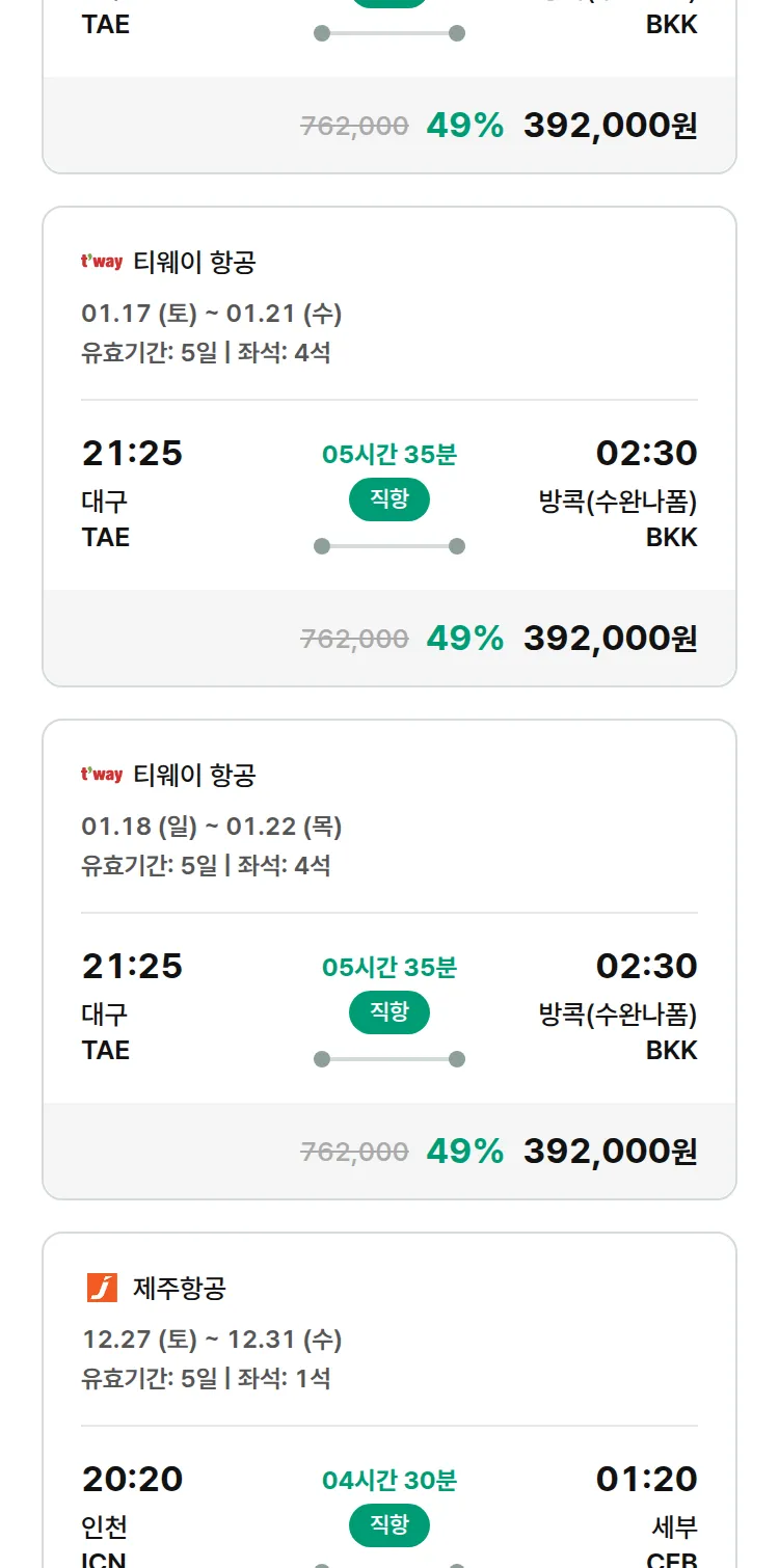 (12월 18일(목)) 땡처리 특가 항공권