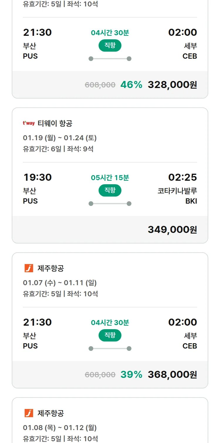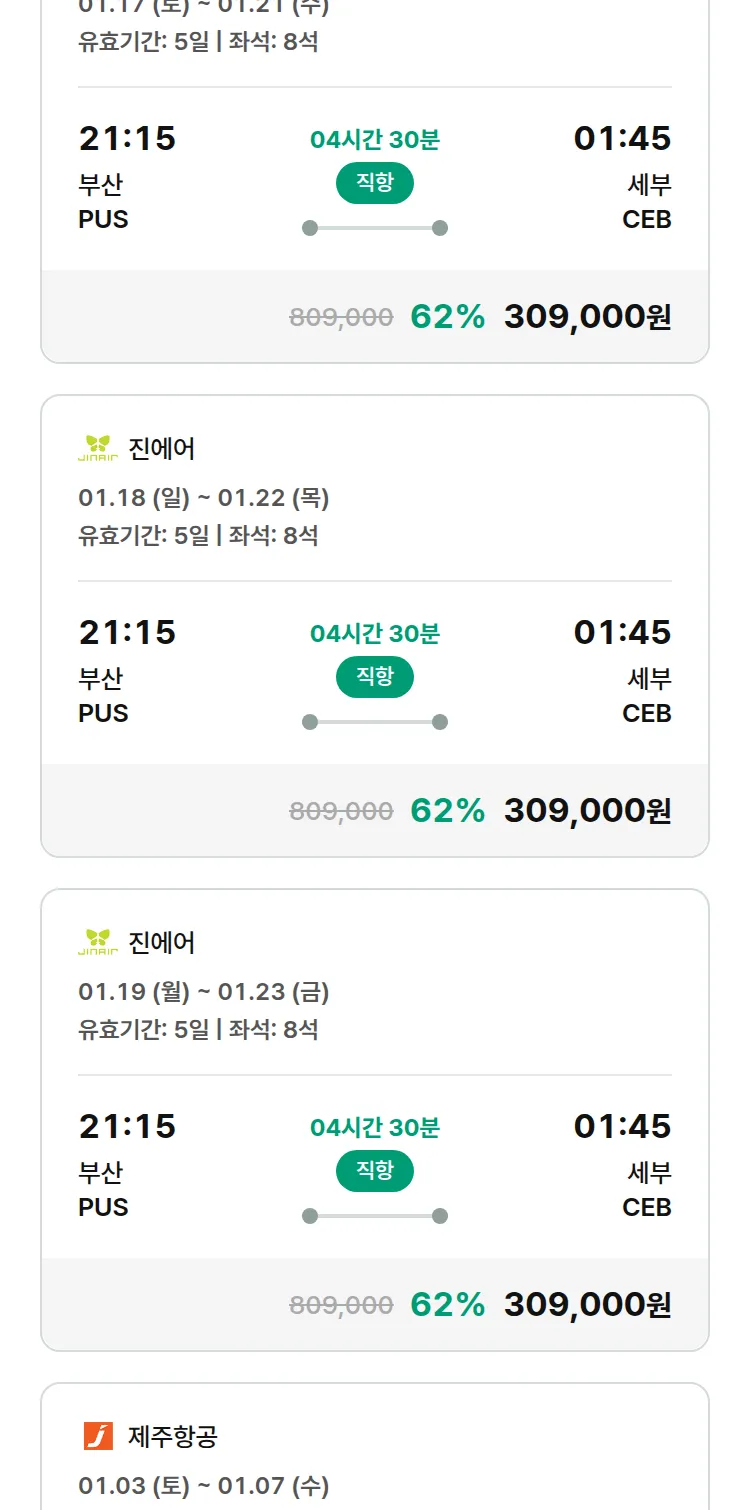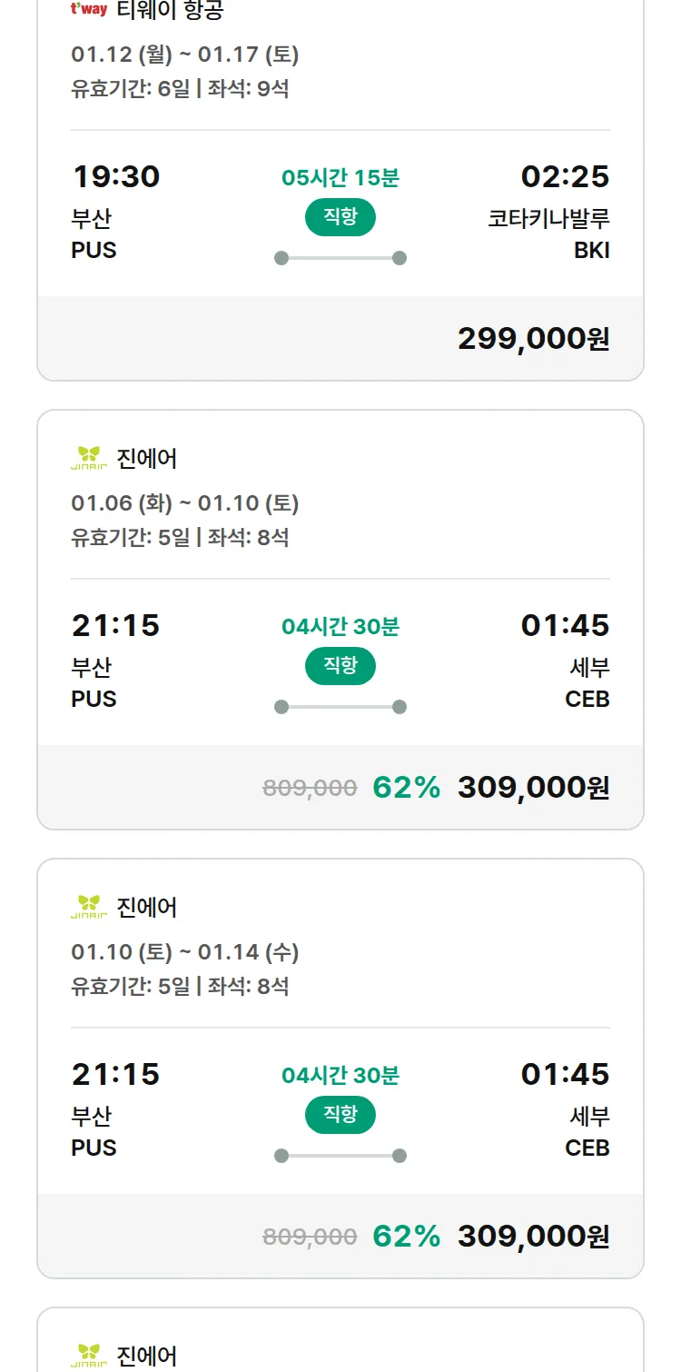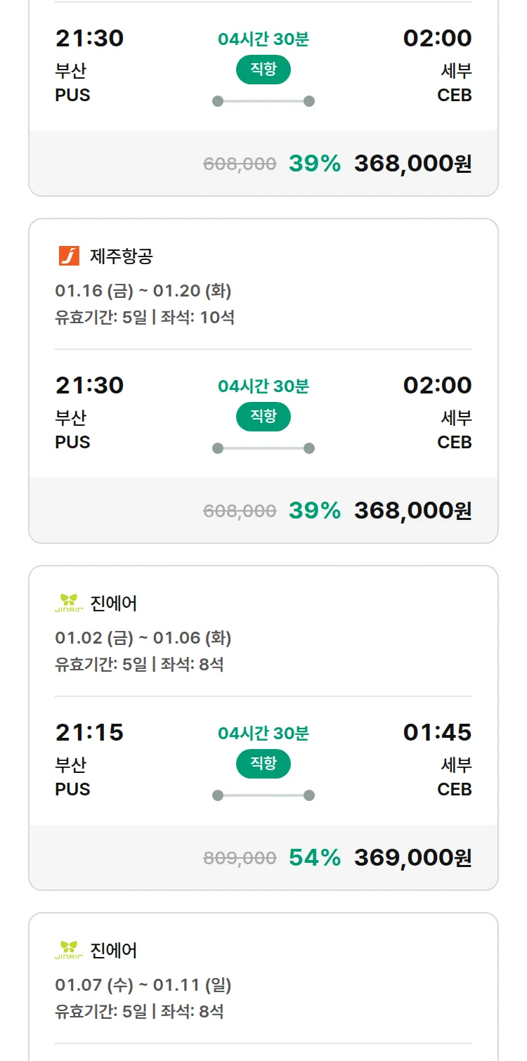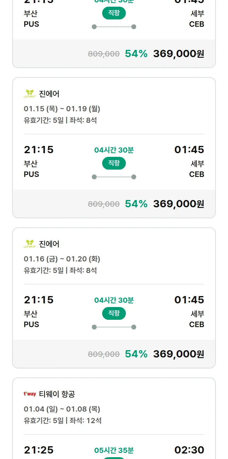 (12월 18일(목)) 땡처리 특가 항공권