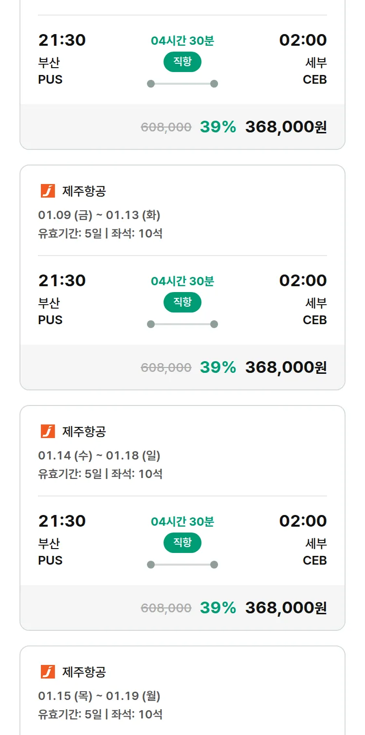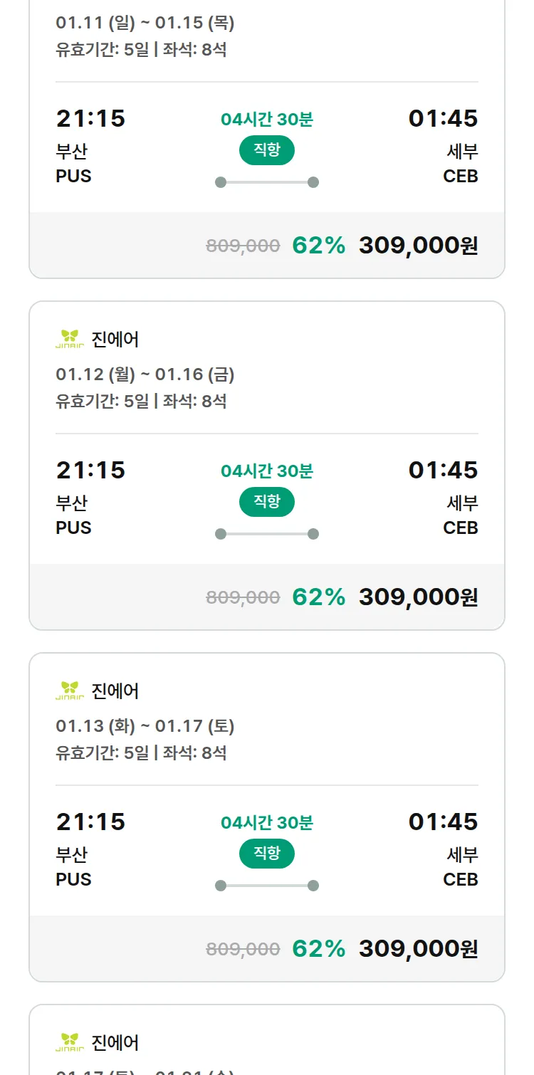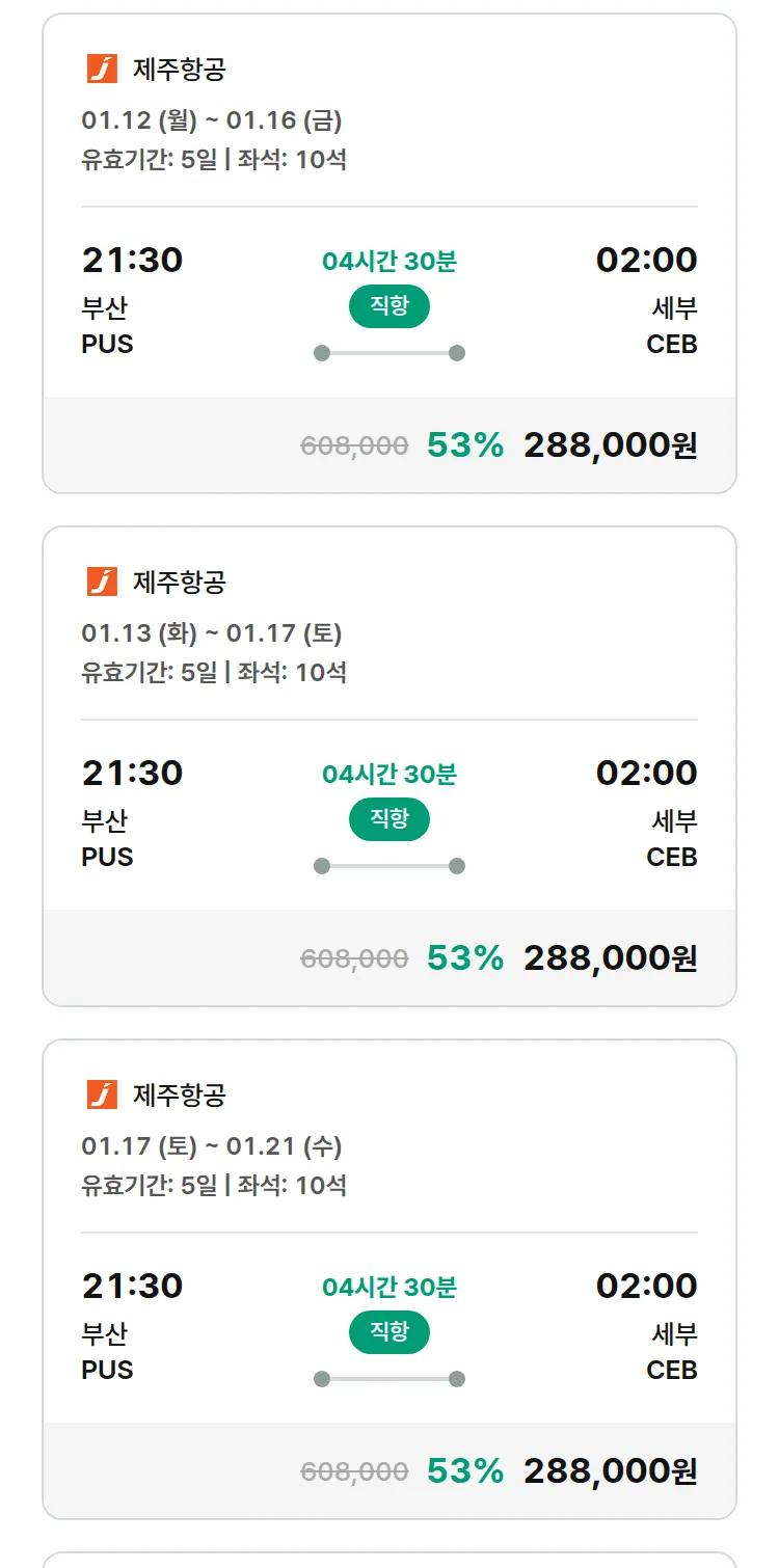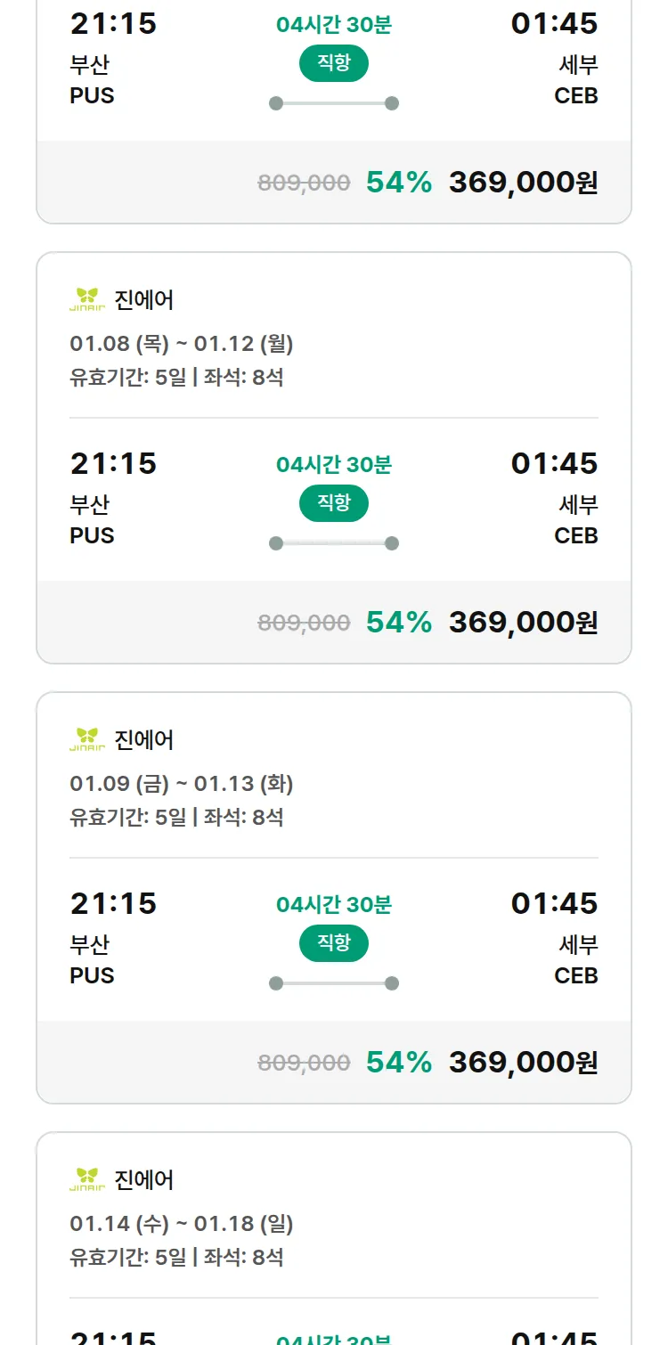 (12월 18일(목)) 땡처리 특가 항공권