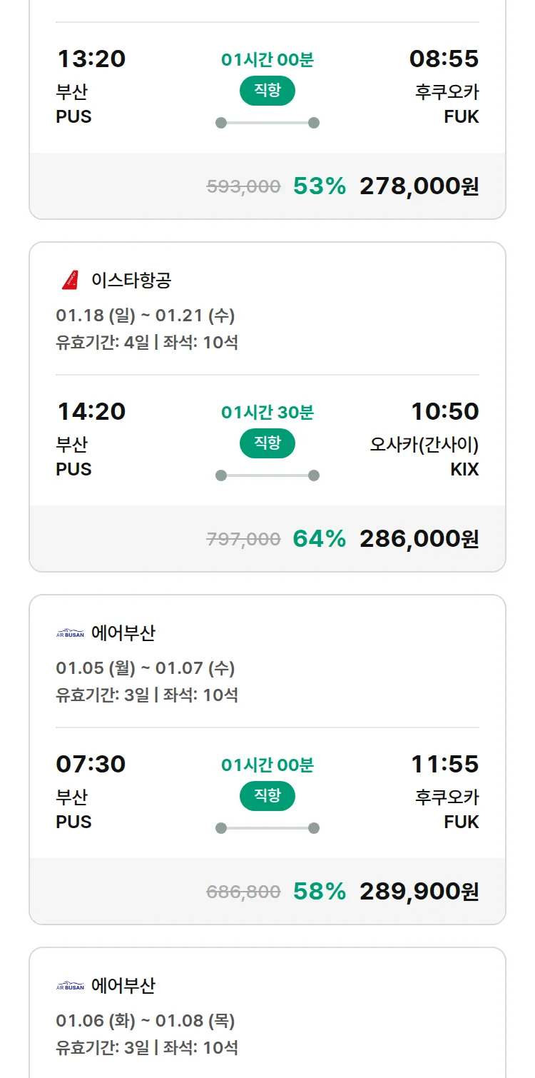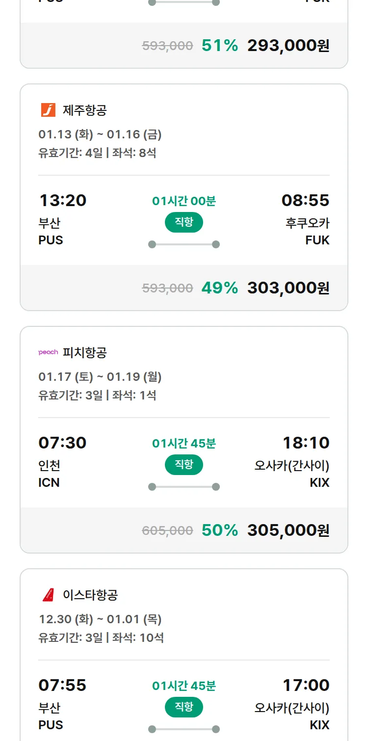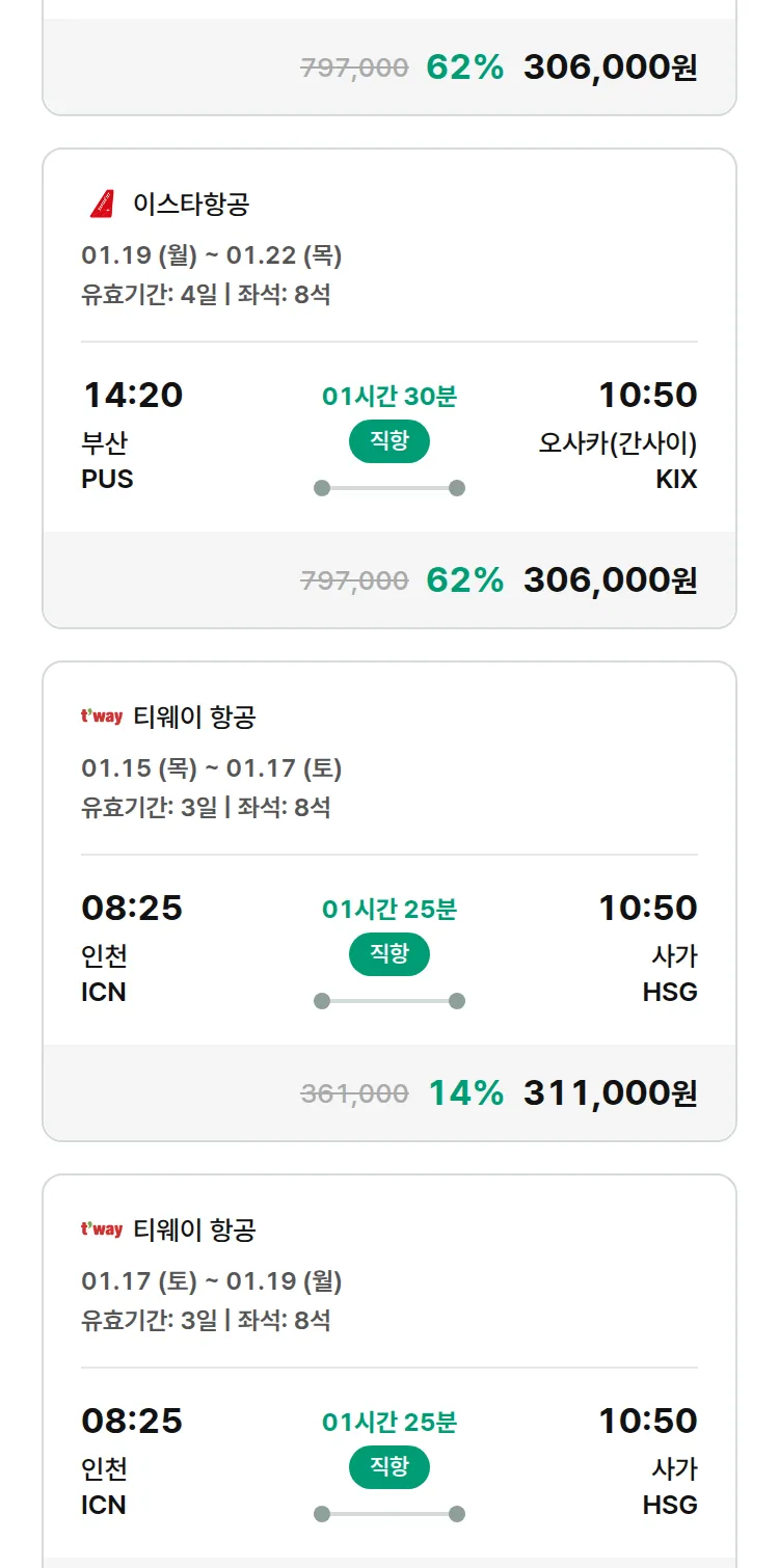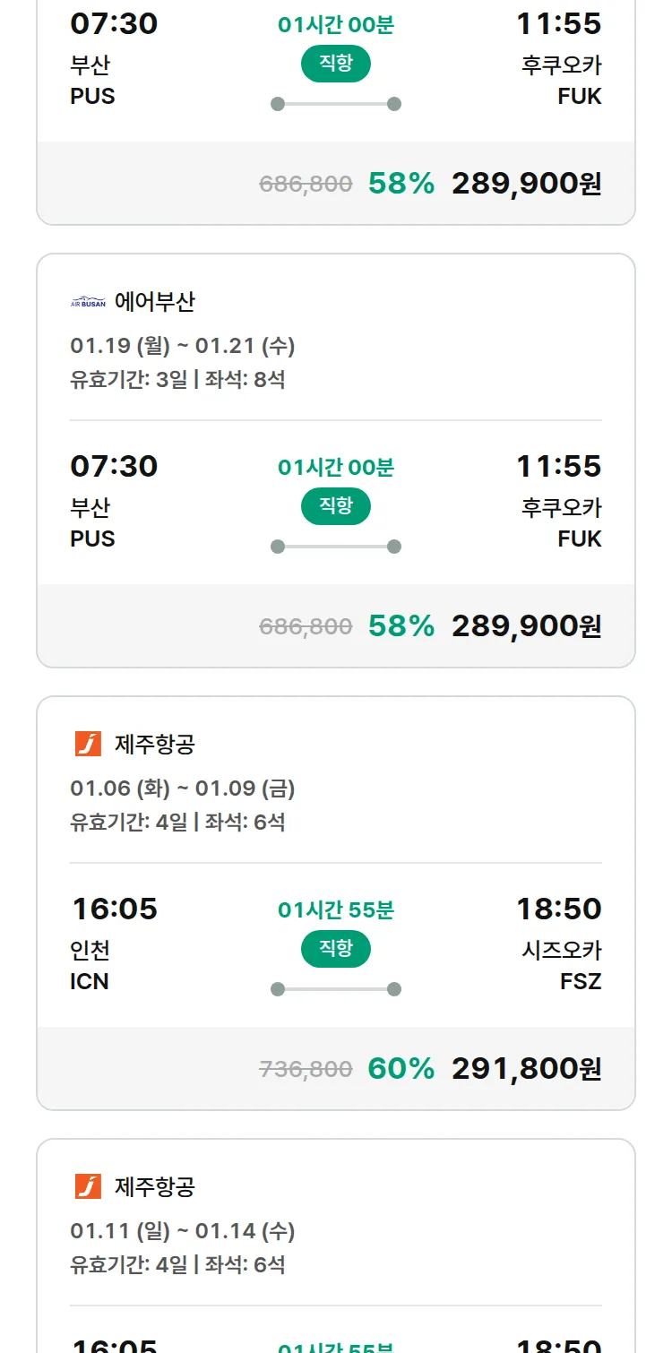 (12월 18일(목)) 모두투어 일본 특가 항공권