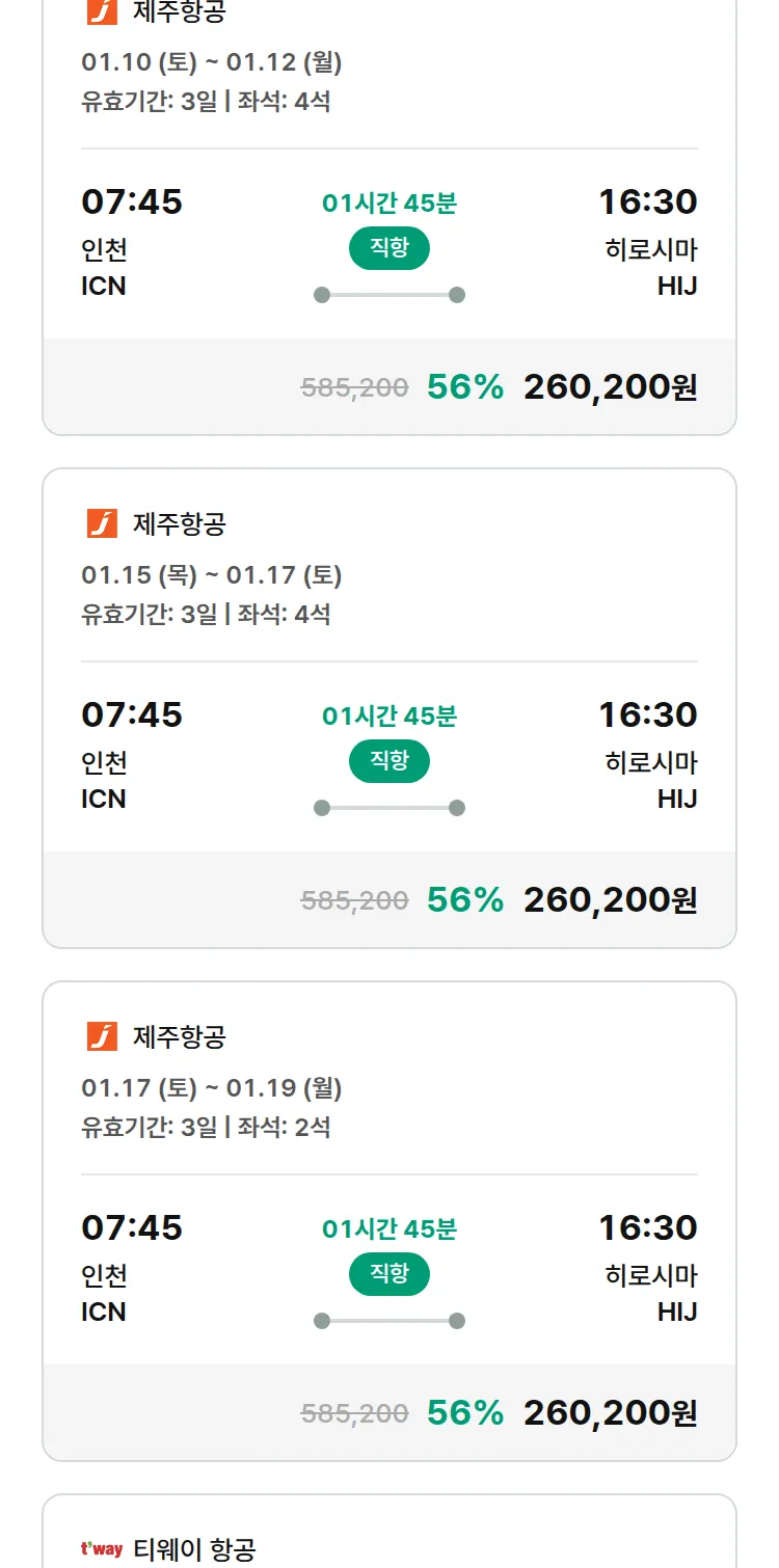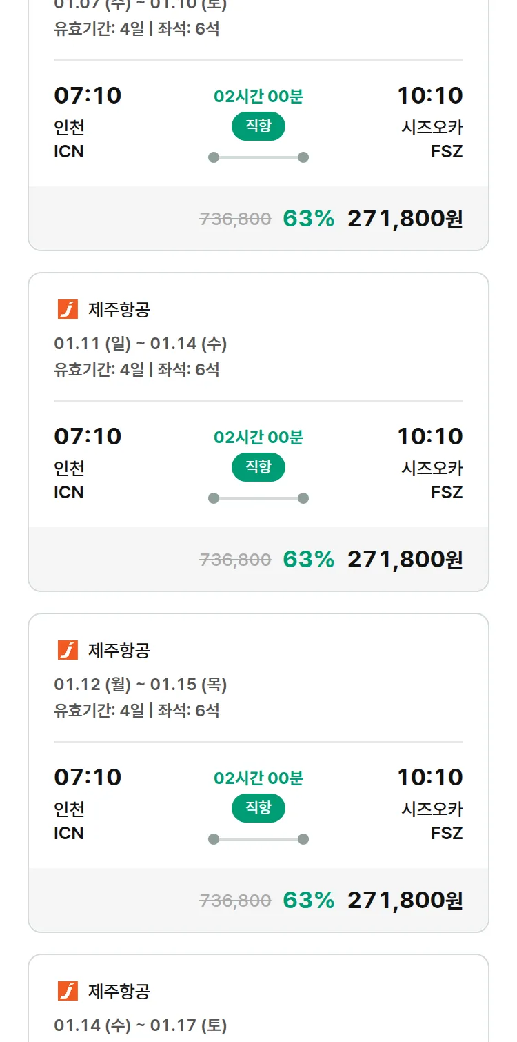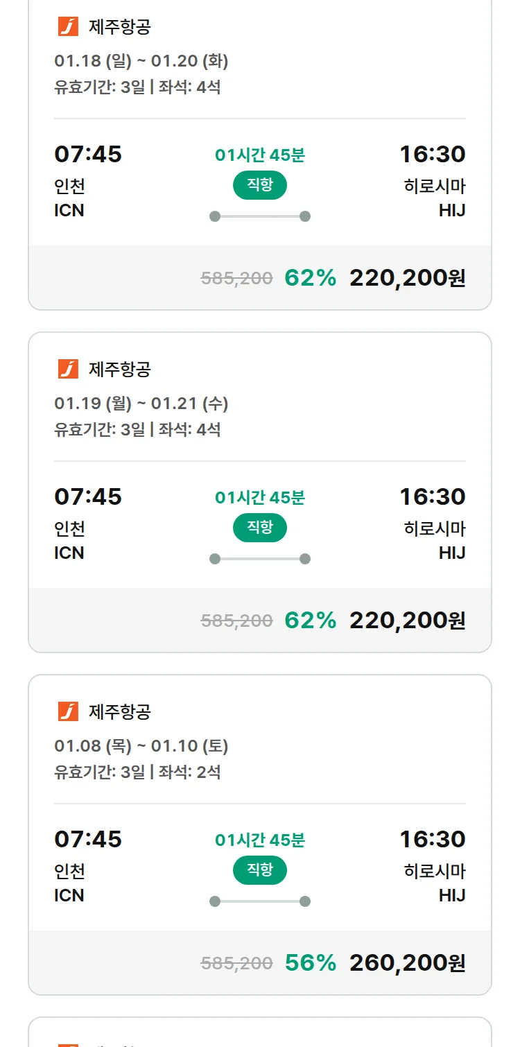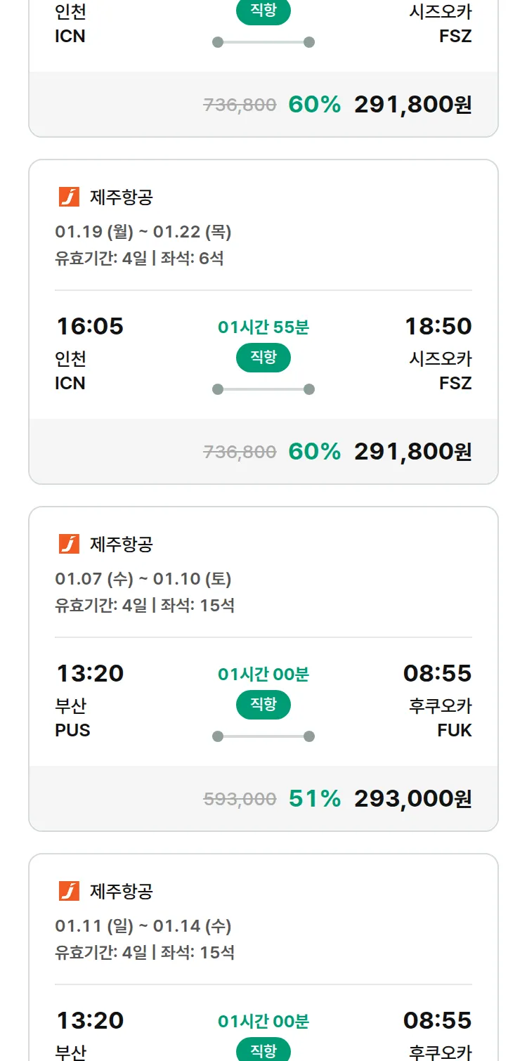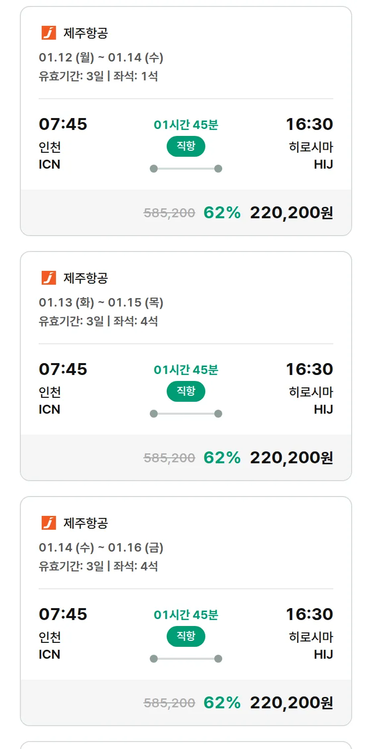 (12월 18일(목)) 모두투어 일본 특가 항공권
