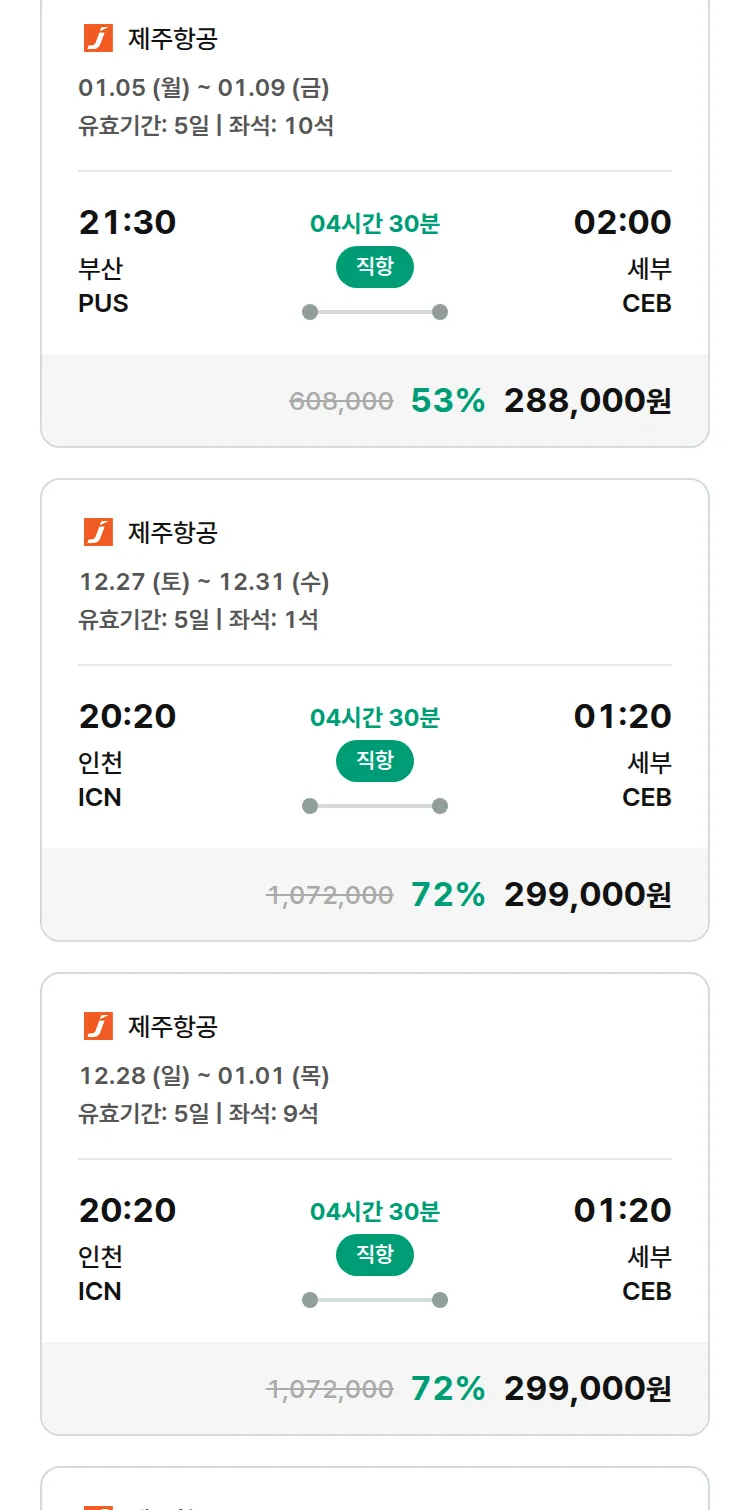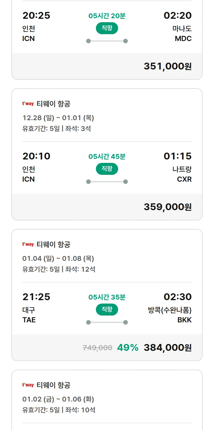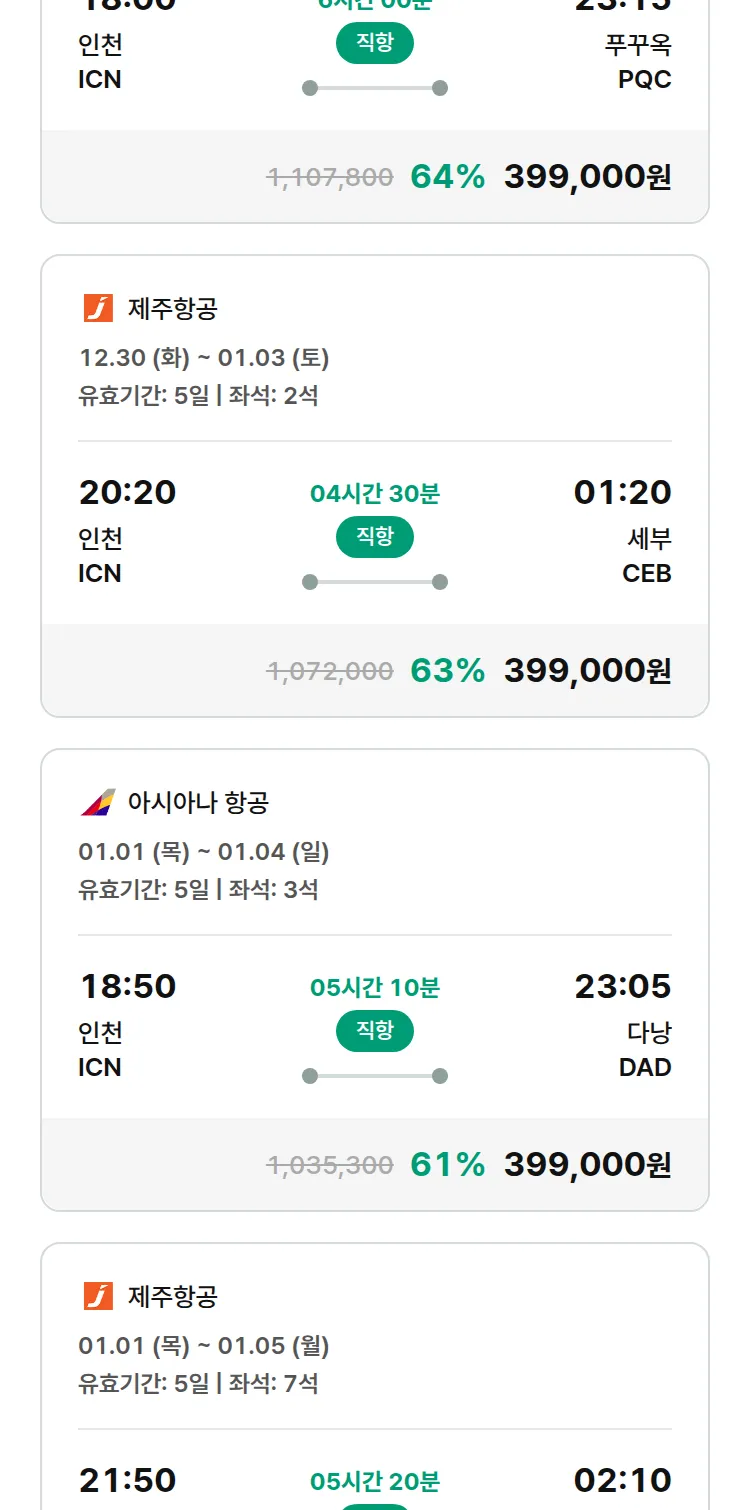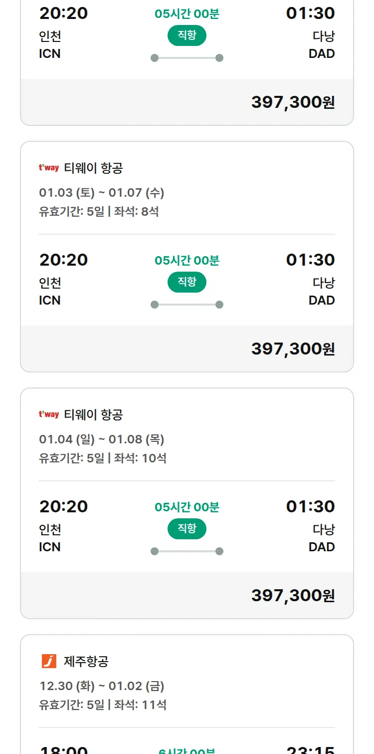 (12월 21일(일)) 땡처리 특가 항공권