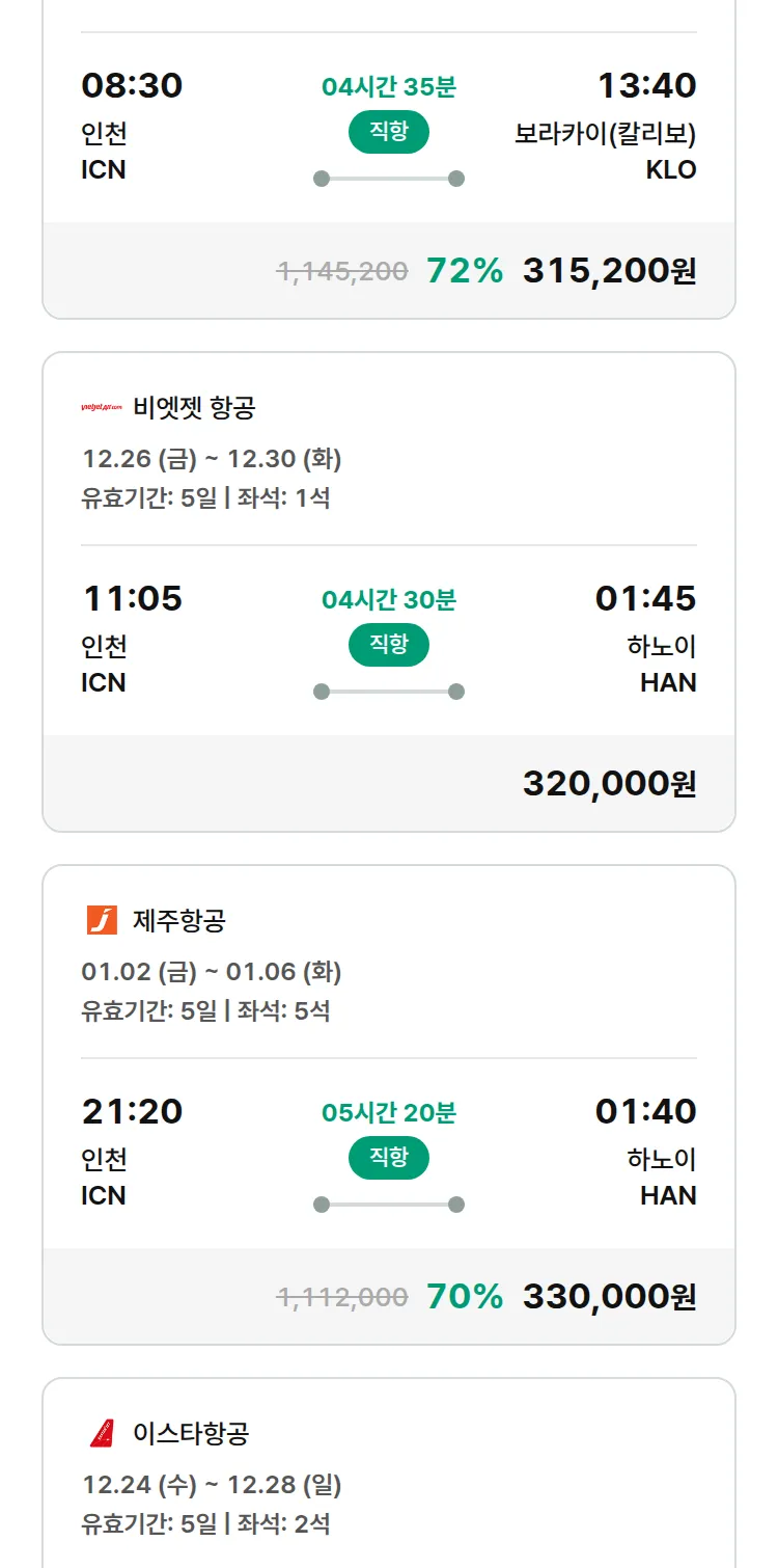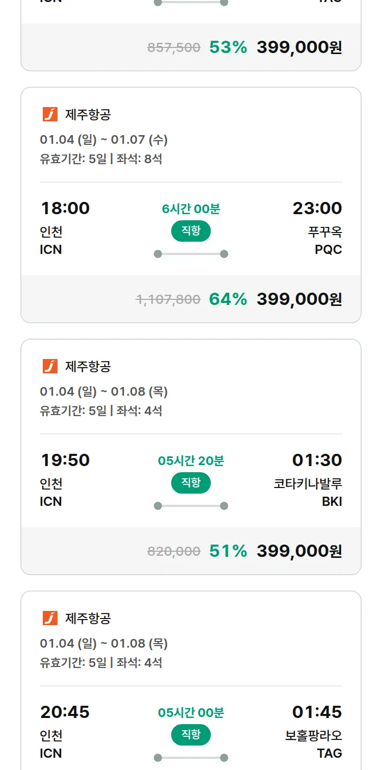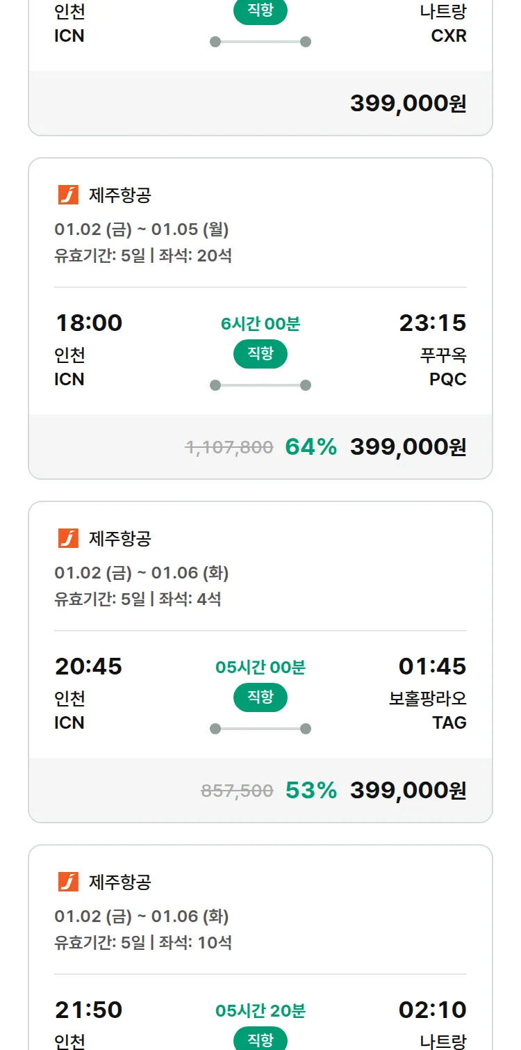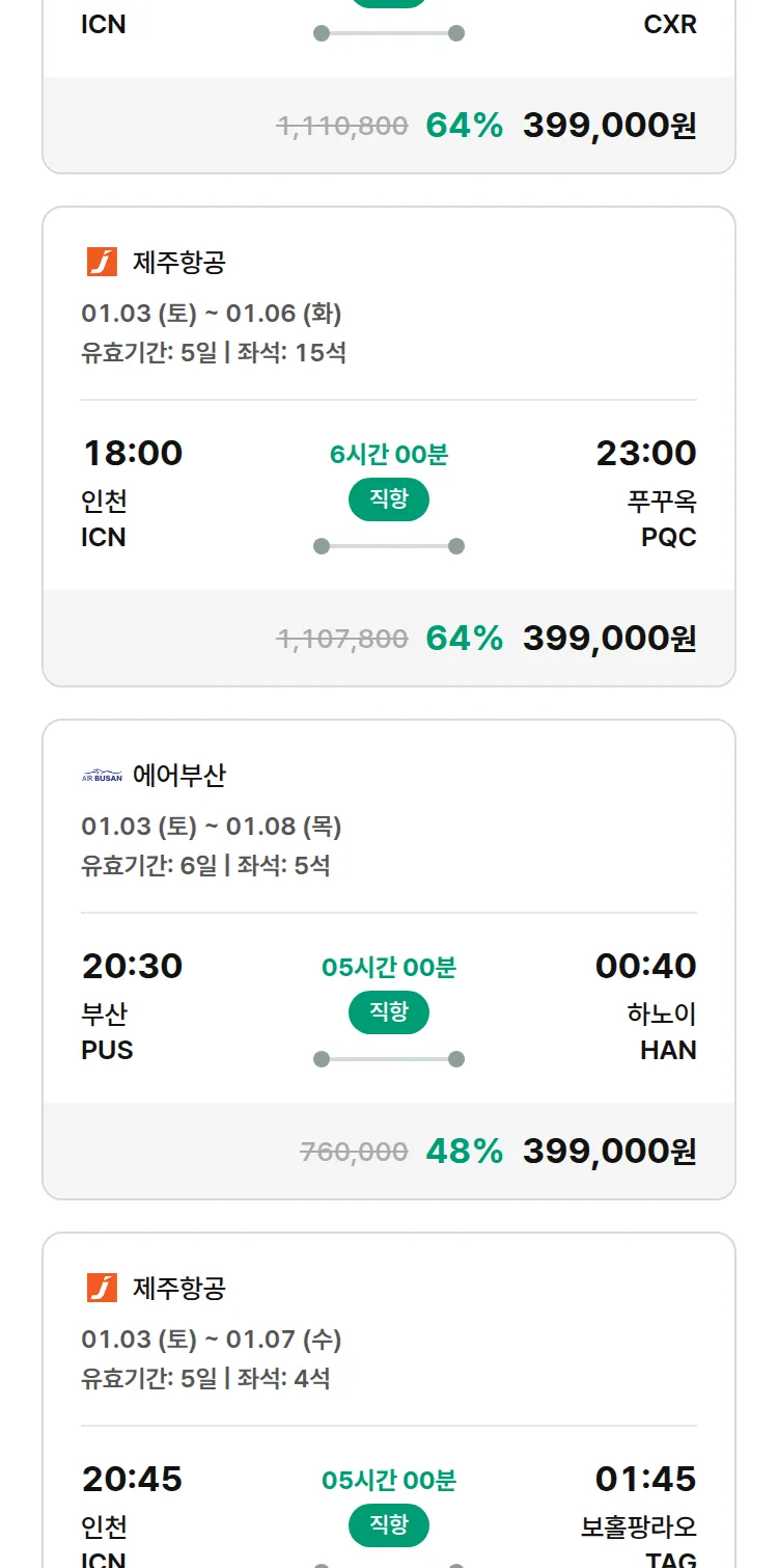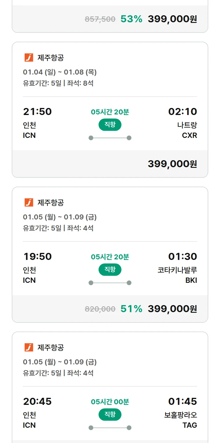 (12월 21일(일)) 땡처리 특가 항공권